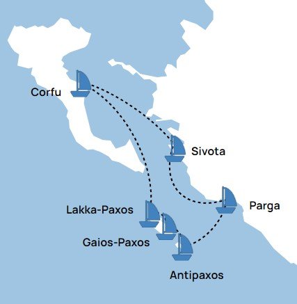 Nach dem Frühstück fahren entlang der Insel Paxos auf die Westseite, die reich an herrlichen Meereshöhlen ist. Vor den Blauen Grotten werden wir ankern. Ausreichend Zeit zum Schwimmen und zum Erkunden der Blauen Grotten mit dem bordeigenen Dingi. Gegen 17:30 Uhr erreichen wir das griechische Dörfchen Loggos - ein gemütliches, kleines Fischerdorf an der Ostseite von Paxos. Die bunt gestrichenen Häuser schmiegen sich um den Hafen, der mit kleinen Tavernen, Bars und Cafés aufwartet.