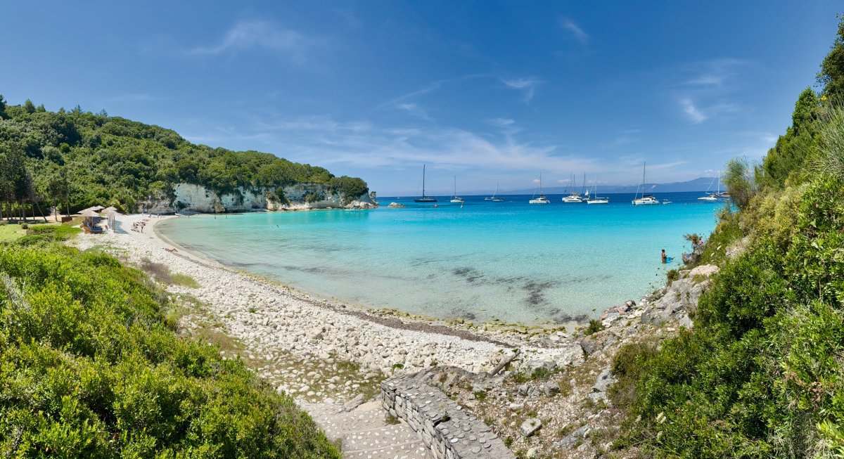 Heute setzen wir auf die kleinste ionische Insel über, nach Antipaxos. Hier ankern wir vor dem Voutoumi Beach – einem der zehn schönsten Strände Europas, in dessen Bucht sich zahlreiche Boote tummeln. Mit dem Dingi fahren wir ans Ufer und haben Zeit zum schwimmen und zur Einkehr in eine kleine Taverne. Weiter geht es am Nachmittag zur Insel Paxos, wo wir in Gaios, einem kleinen Städtchen mit engen Gassen, Geschäften und ausgezeichneten Tavernen, die fangfrischen Fisch servieren, festmachen.