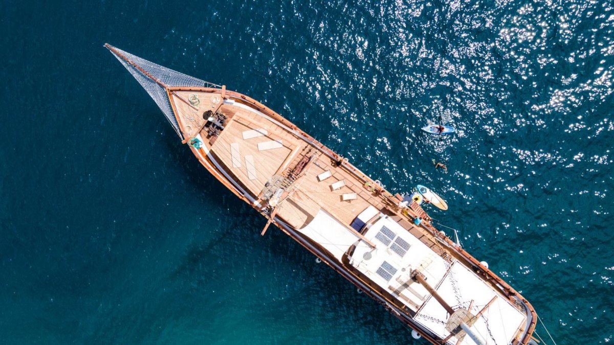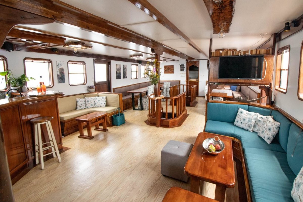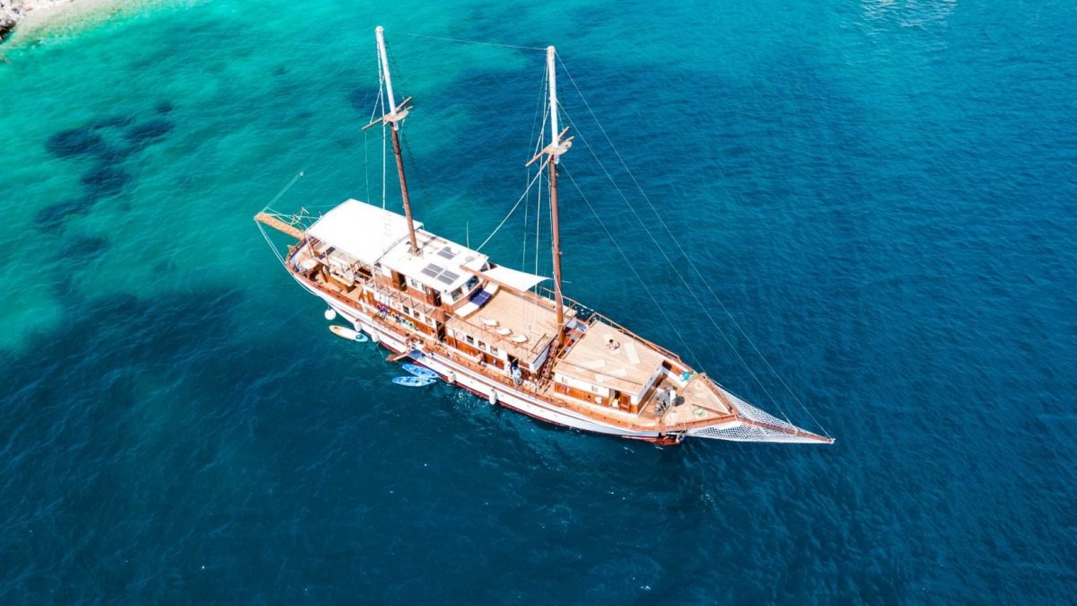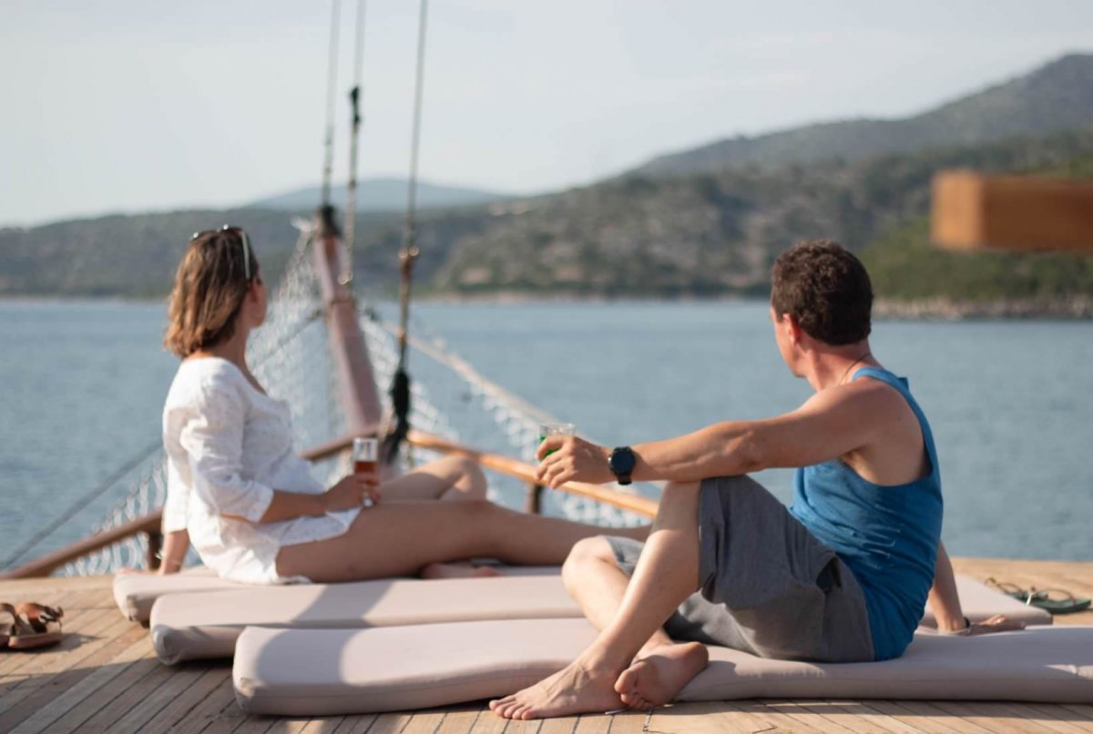 Die MS Aegeotissa II verfügt über eine Lounge im Innenbereich mit angrenzender Bar sowie über einen großzügigen Essbereich im Freien, in der Sie Ihre Mahlzeiten genießen oder sich einfach nur zurücklehnen und entspannen können! Auch das große Sonnendeck lädt mit einer gemütlichen Lounge und Liegekissen ein, es sich bequem zu machen, zu entspannen und zu genießen. Für Abwechslung auf dem Wasser sorgen ein Stand-up-Paddel und ein Kajak.