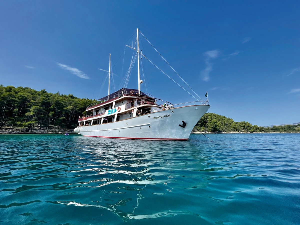 Herzlich Willkommen an Bord der MS Meridijan! Das Schiff der Premium-Kategorie wurde 2006 erbaut, ist 32,5 m lang und 7,5 m breit. Insgesamt finden auf dem Schiff 36 Gäste in 18 Kabinen auf drei Decks Platz für einen erlebnisreichen Urlaub.