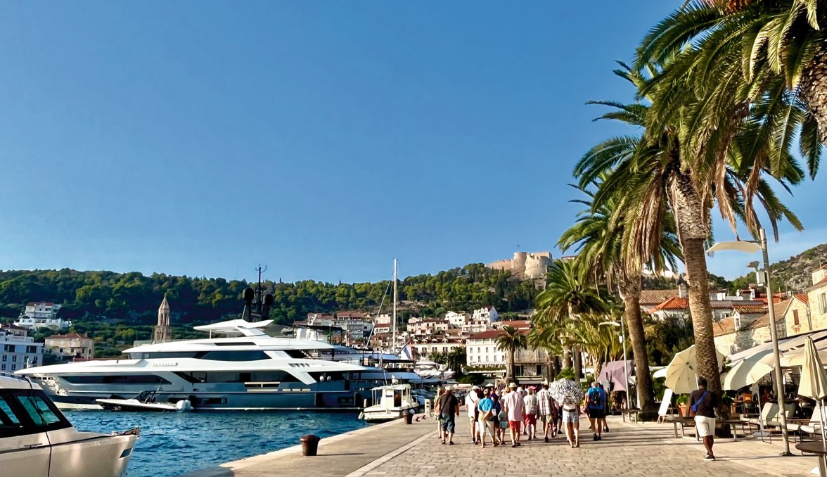 Wir passieren die Insel Korčula und nehmen Kurs auf die Insel Hvar. Hier befinden sich die Paklinski otoci – eine Inselgruppe bestehend aus 19 kleinen Inseln und Felsriffen, die wahrlich traumhafte Badebuchten zu bieten haben. Am Nachmittag erwarten uns eine palmengesäumte Uferpromenade, luxuriöse Motoryachten und internationale Prominenz in der pittoresken Altstadt von Hvar, die gern auch als St. Tropez von Kroatien bezeichnet wird. Natürlich streifen wir durch den schicksten Ort der dalmatischen Küste, zu Füßen der Festung Spanjol gelegen.