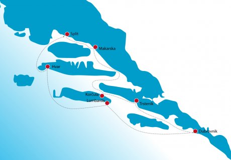 Anreise nach Split und ein herzliches Willkommen an Bord durch Kapitän Ante und seine Crew an Bord unserer schicken MS Amalia. Zum Mittagessen verlassen wir die Pier und steuern, entlang der Makarska Riviera, eine Bucht an, die zu einem ersten Sprung in die kristallklare Adria einlädt. Am späten Nachmittag erreichen wir Makarska, zu Füßen des Biokovo-Gebirges gelegen, das mit romantischen Gassen, prachtvollen Gebäuden, einer tolle Promenade, gespickt mit Geschäften, Restaurants und Cafés aufwartet. Vielleicht unternehmen Sie einen Spaziergang auf die Halbinsel Sveti Petar, die einen tollen Ausblick auf den Urlaubsort bietet.