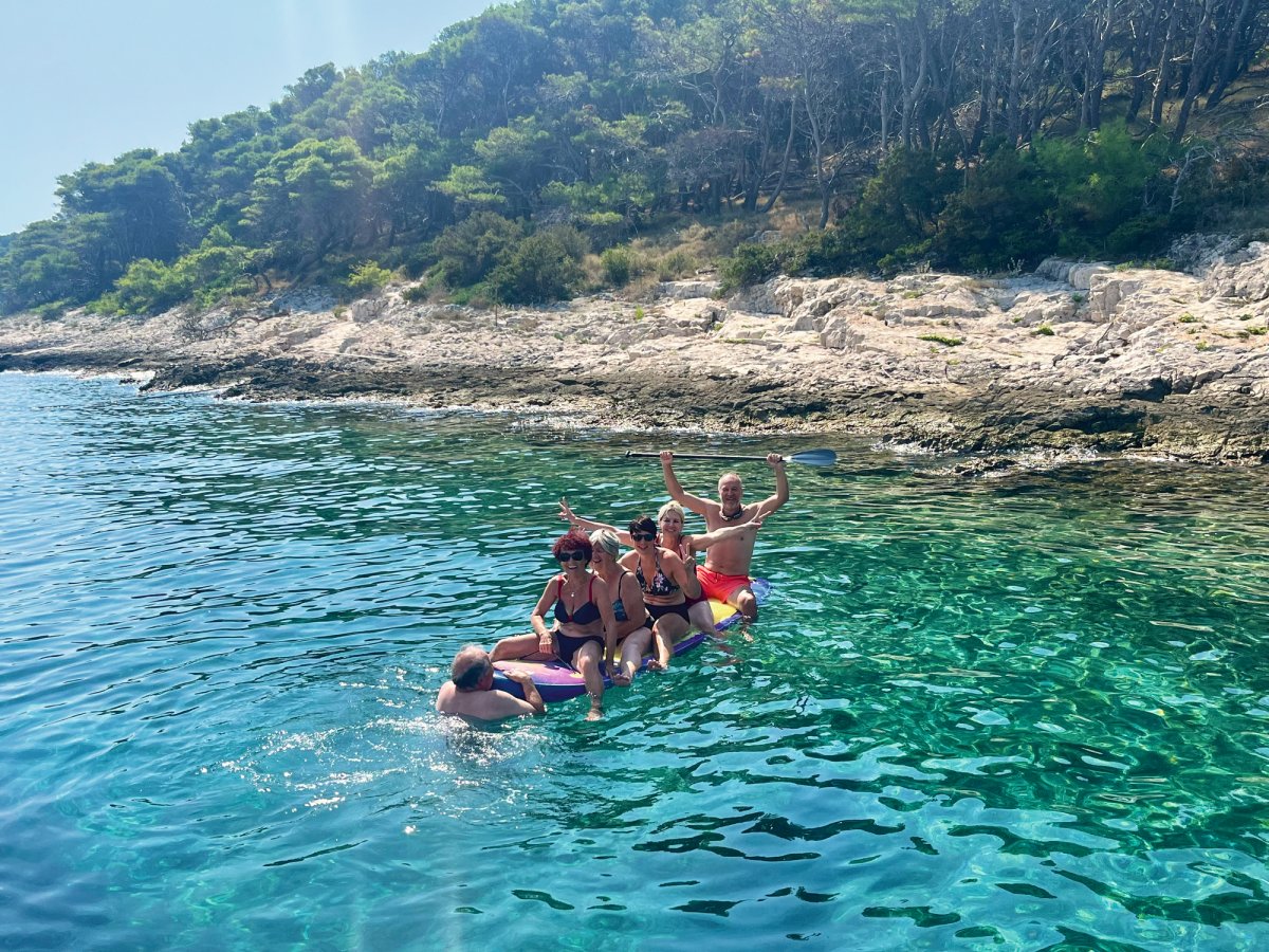 Wir verlassen die Halbinsel Istrien und nehmen Kurs auf die Insel Cres. Die Stadt Cres hat sich zu einer beliebten Urlaubsdestinationen in der Kvarner Bucht entwickelt. Die quirlige Altstadt besteht aus einem dichten Kern aus Häusern, aneinandergebaut und untereinander verbunden rund um das kleine Hafenbecken herum. Kleine Läden und Lokale laden zum Bummeln und Verweilen ein. Auch heute werden wir nochmals vorzüglich durch unser Comedy-Duo und die knuffigen Begleiter unterhalten.