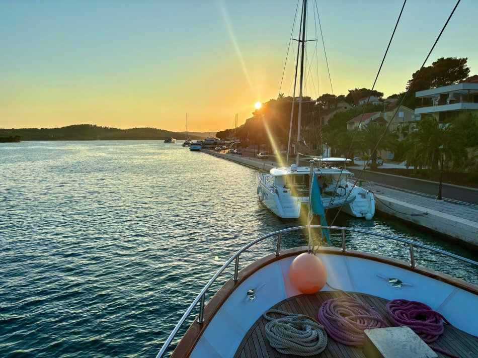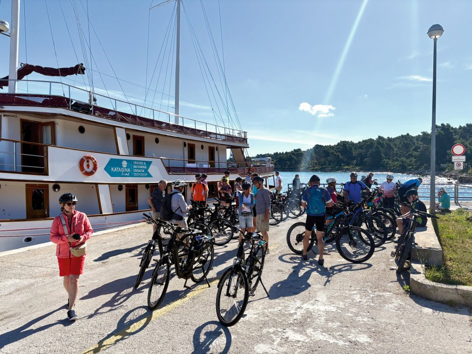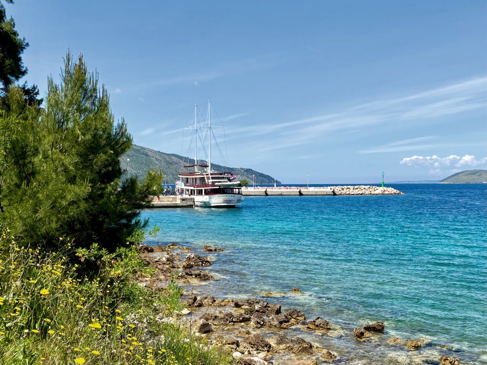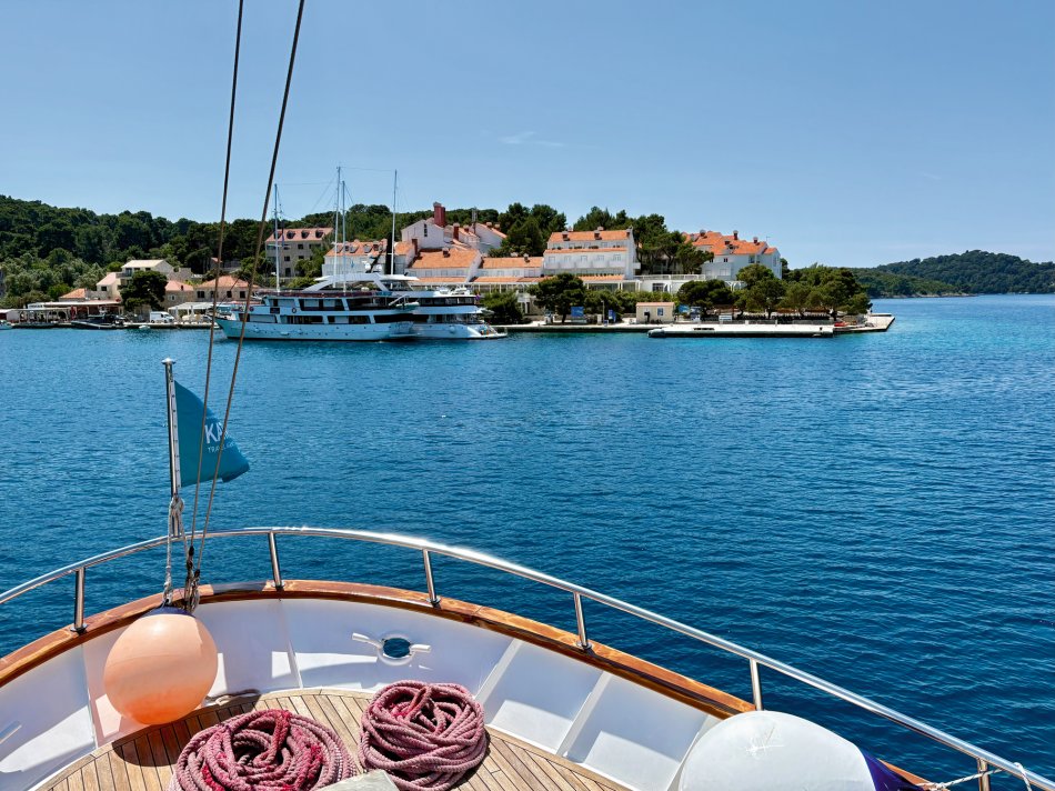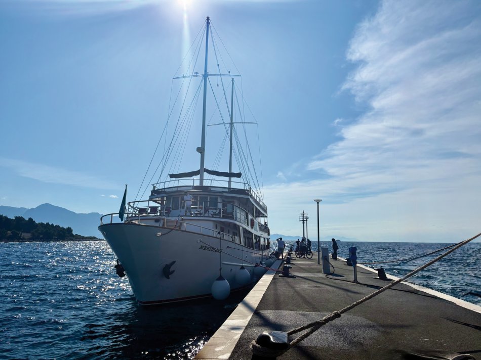 Gestern hatten wir einen total entspannten Vormittag. Wir haben die Insel Korcula um 07:00 Uhr verlassen und sind während des Frühstücks weiter gen Süden gefahren. Um 09:30 Uhr haben wir eine wirklich nette Bucht an der Insel Mljet erreicht. Der Anker wurde ausgelegt und es blieb Zeit bis zum Mittagessen, um in die türkisfarbene Adria einzutauchen, in der Sonne zu dösen oder ein gutes Buch zu lesen. Herrlich entspannt haben wir während des Mittagessens Kurs auf den kleinen Hafen Pomena genommen, wo unsere Fahrräder abgeladen wurden. Um 14:00 Uhr starteten wir unsere Radtour durch den Nationalpark. Auf schattigen Wegen fuhren wir durch Steineichenwälder, einmal rund um den Großen Salzsee. Tolle Ausblicke auf das türkisfarben glitzernde Wasser waren immer gegeben. Wir führen bis zum Ende der Insel und anschließend hatten wir Freizeit für eigene Erkundungen. Einige Gäste fuhren zur Großen Brücke, andere ließen sich vom Fährmann abholen und auf die kleine Klosterinsel bringen, wo man in der Sonne einen Kaffee oder ein Erfrischungsgetränk zu sich nehmen konnte. Um 16:40 haben wir uns an der Mali most, der kleinen steinernen Brücke alle wieder versammelt, um gemeinsam zurück zum Schiff nach Pomena zu fahren. Die Räder wurden aufgeladen und wir nahmen Kurs auf die Halbinsel Peljesac. Das kleine aber charmante Örtchen Trstenik haben wir gegen 18:30 Uhr erreicht. So blieb noch eine Stunde für einen kleinen Spaziergang, bevor Kapitän Luka zum Captain´s Dinner einlud. Ein toller Tag klang bei einem hervorragenden 4-Gang-Menü und super Stimmung wunderbar aus.