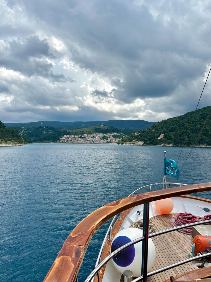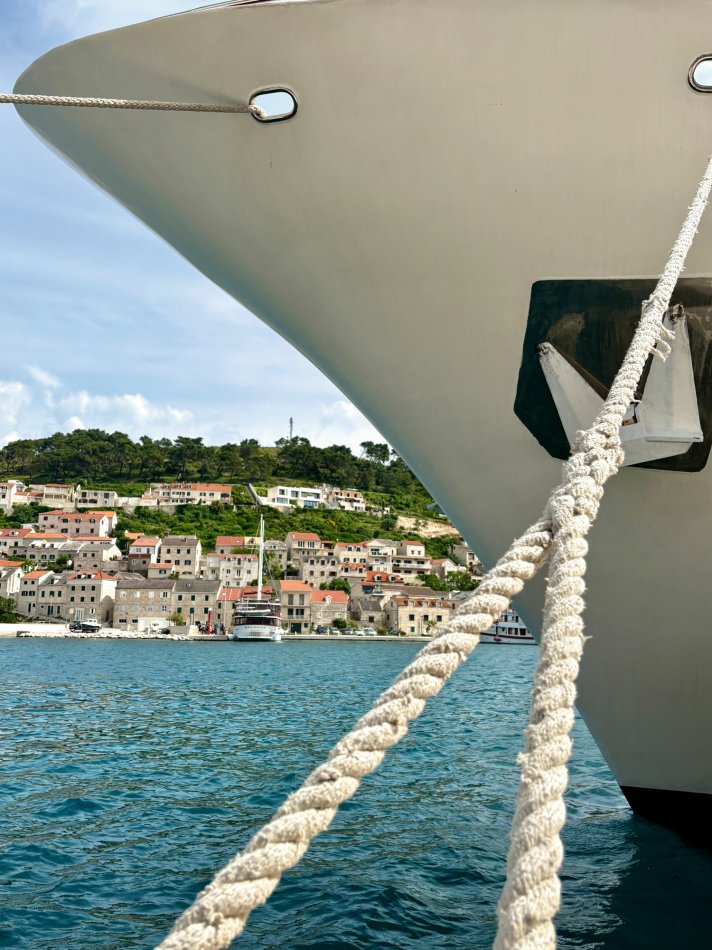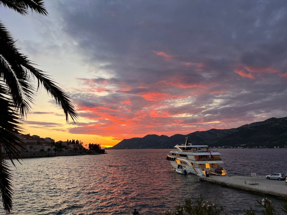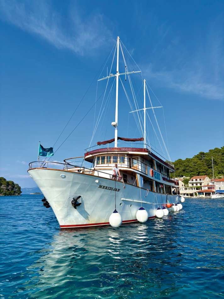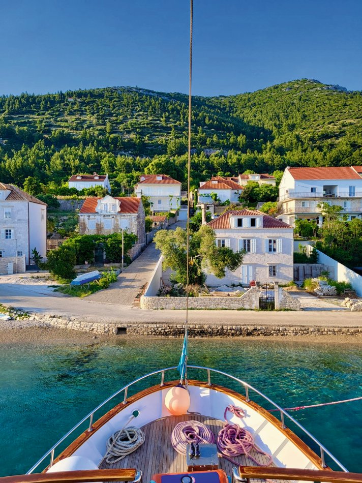Gestern hatten wir einen total entspannten Vormittag. Wir haben die Insel Korcula um 07:00 Uhr verlassen und sind während des Frühstücks weiter gen Süden gefahren. Um 09:30 Uhr haben wir eine wirklich nette Bucht an der Insel Mljet erreicht. Der Anker wurde ausgelegt und es blieb Zeit bis zum Mittagessen, um in die türkisfarbene Adria einzutauchen, in der Sonne zu dösen oder ein gutes Buch zu lesen. Herrlich entspannt haben wir während des Mittagessens Kurs auf den kleinen Hafen Pomena genommen, wo unsere Fahrräder abgeladen wurden. Um 14:00 Uhr starteten wir unsere Radtour durch den Nationalpark. Auf schattigen Wegen fuhren wir durch Steineichenwälder, einmal rund um den Großen Salzsee. Tolle Ausblicke auf das türkisfarben glitzernde Wasser waren immer gegeben. Wir führen bis zum Ende der Insel und anschließend hatten wir Freizeit für eigene Erkundungen. Einige Gäste fuhren zur Großen Brücke, andere ließen sich vom Fährmann abholen und auf die kleine Klosterinsel bringen, wo man in der Sonne einen Kaffee oder ein Erfrischungsgetränk zu sich nehmen konnte. Um 16:40 haben wir uns an der Mali most, der kleinen steinernen Brücke alle wieder versammelt, um gemeinsam zurück zum Schiff nach Pomena zu fahren. Die Räder wurden aufgeladen und wir nahmen Kurs auf die Halbinsel Peljesac. Das kleine aber charmante Örtchen Trstenik haben wir gegen 18:30 Uhr erreicht. So blieb noch eine Stunde für einen kleinen Spaziergang, bevor Kapitän Luka zum Captain´s Dinner einlud. Ein toller Tag klang bei einem hervorragenden 4-Gang-Menü und super Stimmung wunderbar aus.