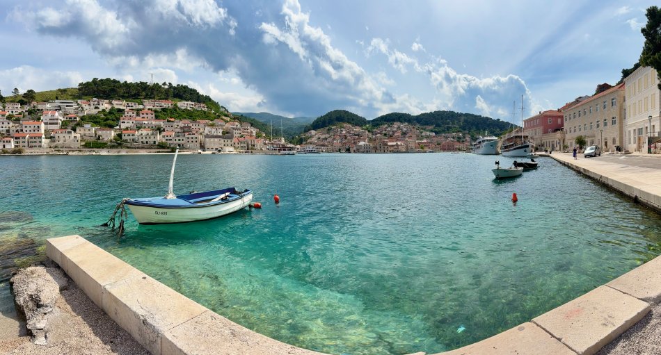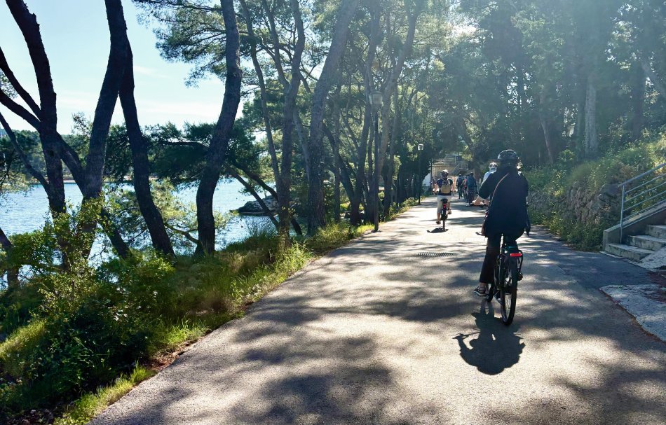 Tag 2 unserer Bike & Cruise Tour war fantastisch! Wir haben Milna bereits um 06:15 Uhr verlassen und Kurs auf die Insel Hvar genommen. Während des Frühstücks genossen wir Passage bei Sonnenschein und spiegelglatter See. Den Fährhafen von Stari Grad haben wir gegen 08:30 Uhr erreicht. Die Fahrräder wurden abgeladen und um 09:00 Uhr versammelten wir uns alle vor dem Schiff und starteten unsere erste Radtour, die uns am Wasser entlang nach Stari Grad führte. Die älteste Stadt von Hvar haben wir bei einem kleinen Spaziergang erkundet, bevor wir auf einem herrlichen Weg durch das große Feld von Hvar – das Starigradsko polje – fuhren. Sedit der Antike sind die Weinberge und Olivenhaine dort praktisch unverändert und stehen unter dem Schutz der UNESCO. Weiter ging es entlang der Küstenpromenade durch das Örtchen Vrboska nach Jelsa, wo wir eine Stunde Pause einlegten. Einige Gäste spazierten durch das hübsche Städtchen, genossen ein Erfrischungsgetränk in der Sonne, andere sind sogar baden gegangen. Anschließend erfolgte die Rückfahrt zum Schiff, wo wir bereits zum Mittagessen erwartet wurden. Nach einer kleinen Verdauungspause starteten wir um 14:30 Uhr zu unserer zweiten Tour. Direkt vom Schiff aus haben wir gemächlich einen Anstieg von 400 Höhenmetern überwunden und dabei kleine Dörfchen passiert und die üpprig grüne Natur bestaunt, traumhafte Aussichten auf die Bucht von Stari Grad gab es natürlich auch. Wir passierten das Ethnodorf Velo Grablje und erreichten des Aussichtspunkt Vidikovac Sveti Rok, wo wir eine Pause einlegten und die fantatische Aussicht genossen. Anschließend ging es bergab in die Stadt Hvar. Die Räder wurden aufgeladen und wir hatten den Rest des Tages Zeit um das „St. Tropez Kroatiens“ zu erkunden. Spaziergang hinauf zur Festung Spanjola, von der man einen atemberaubenden Ausblick auf die Stadt und die vorgelagerten Paklinski otoci hatte. Anschließend ein hervorragendes Abendessen, abseits des Getummel, bevor man sich ins Nachtleben von Hvar stürzen konnte.