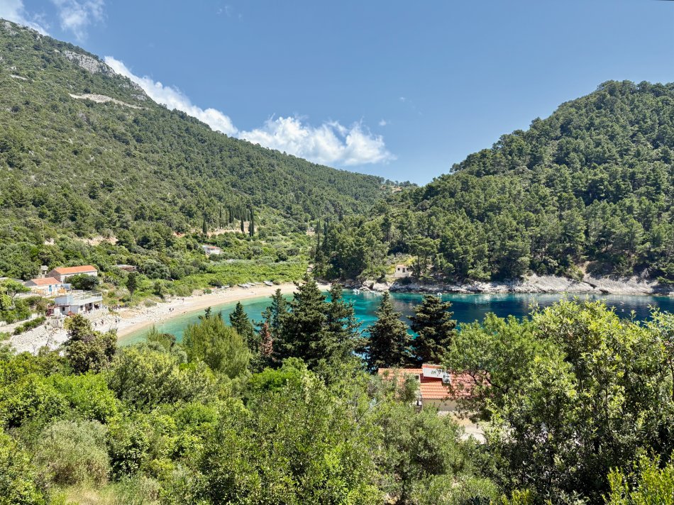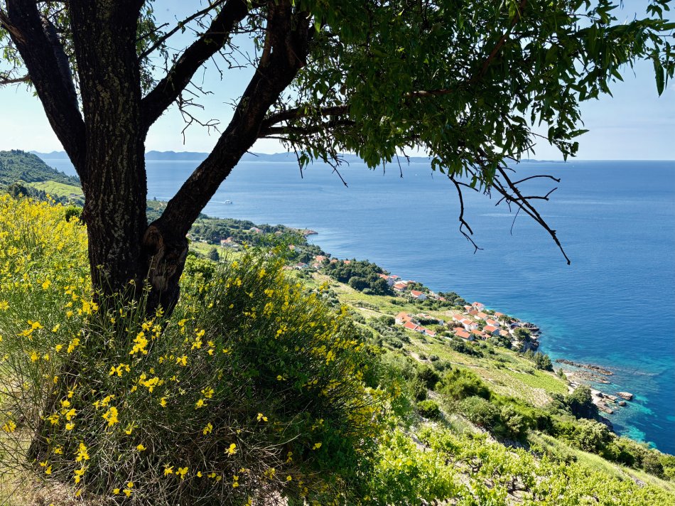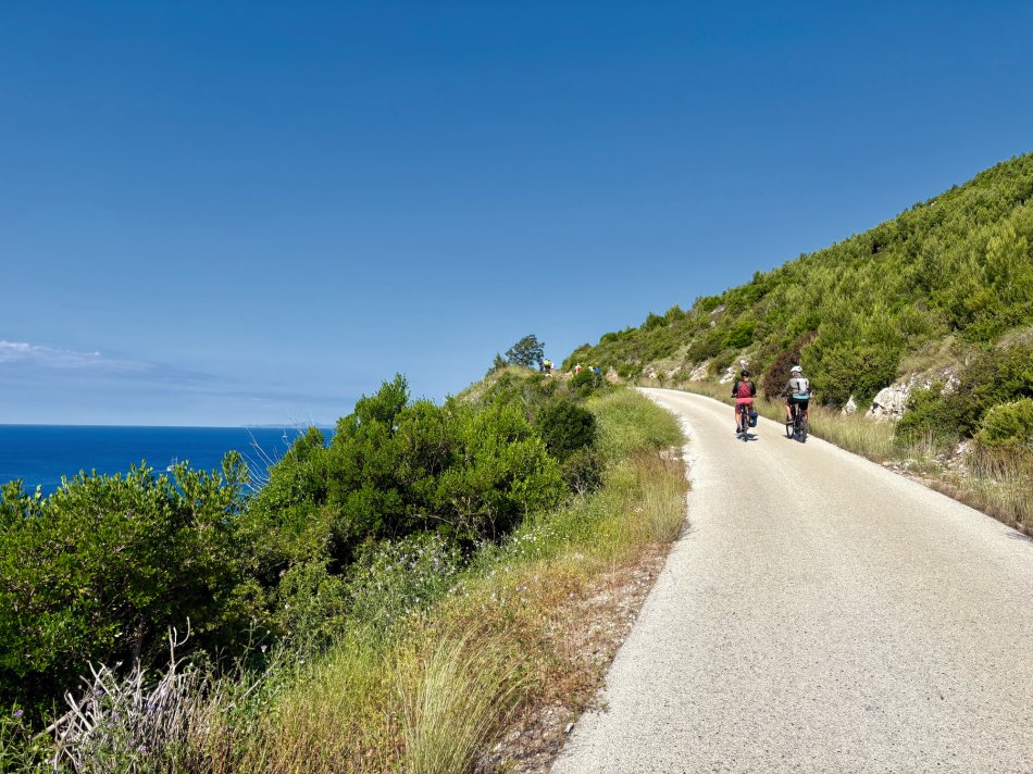 Bereits um 06:15 Uhr haben wir gestern die Stadt Hvar verlassen und uns auf den Weg zur Insel Korčula begeben. Während des Frühstücks kam der Fährhafen von Vela Luka in Sicht, wo unsere Fahrräder abgeladen wurden und wir zu unserer „Königsetappe“ über die komplette Insel starteten – 55 km und ein Höhenunterschied von 850 m galt es zu überwinden. Gemächlich passierten wir den Hafen und hatten bald schon einen ersten tollen Ausblick auf die Stadt Blato, die zu unseren Füßen lag. Weiter ging es entlang der Küste, vorbei an Brna bis zum Weinanbaugebiet von Korčula. Wir radelten entspannt durch die Heimat des Pošip, auf herrlichen Wegen, umgeben von zahlreichen Weinreben, bis ins kleine Dörfchen Čara, wo wir eine Pause bei kühlen Getränken einlegten. Einem kleinen Stück Straße folgte dann ein unbefestigter Weg hinab zu einer traumhaften Badebucht, die uns mit feinem Kieselstrand und türkisfarbenem Wasser erwartetet. Zeit für eine kleine Abkühlung in der 20 Grad warmen Adria, bevor wir unsere Tour fortsetzten. Nach einem steilen Anstieg wurden wir mit atemberaubenden Aussichten auf die Nachbarinseln Vis und Lastovo belohnt, bevor es bergab ging Richtung Korčula-Stadt. Kurzer Stopp an einem Aussichtspunkt, von dem wir einen tollen Blick auf die Altstadt genießen konnten, bevor wir die letzten 2 km hinter in den Hafen radelten, wo unsere MS Meridijan uns bereits zu einem späten Mittagessen erwartete. Der Rest des Tages stand zur Erkundung von „Klein Dubrovnik“, wie Korčula gern genannt wird, zur freien Verfügung. Herrliche kleine Gässchen, gespickt mit Läden und kleinen Restaurants luden zum Bummeln und Verweilen ein.