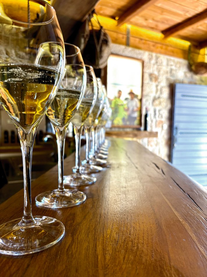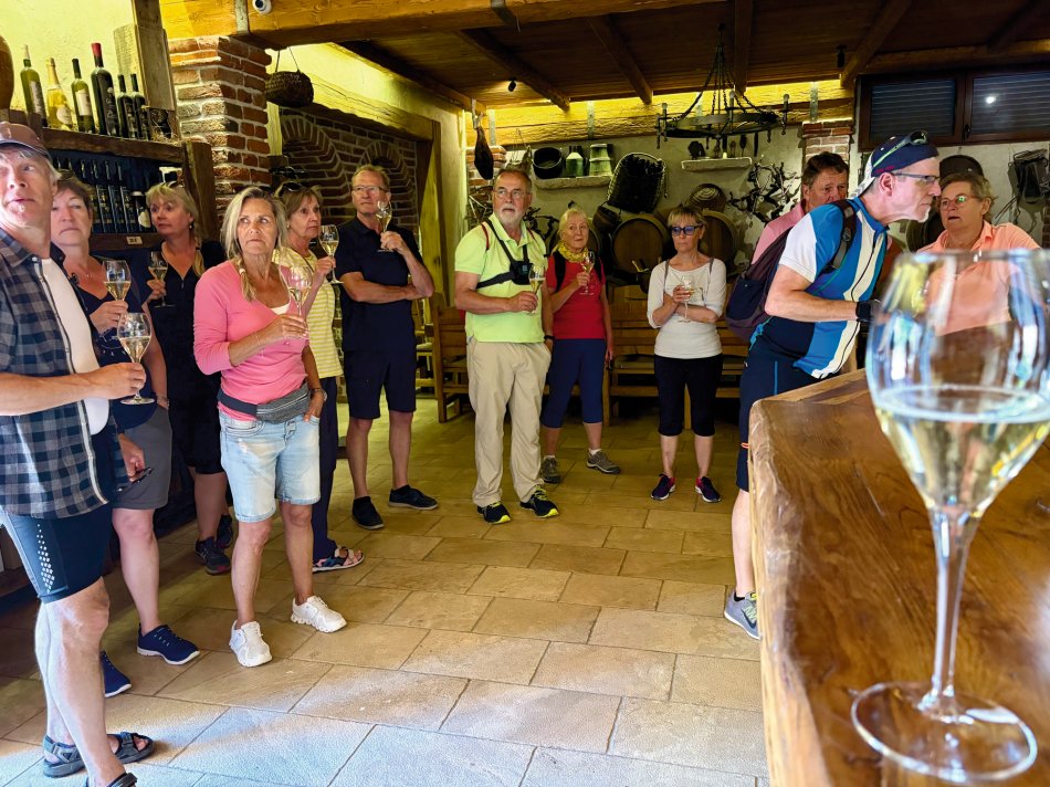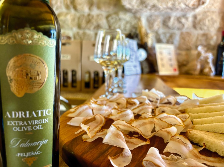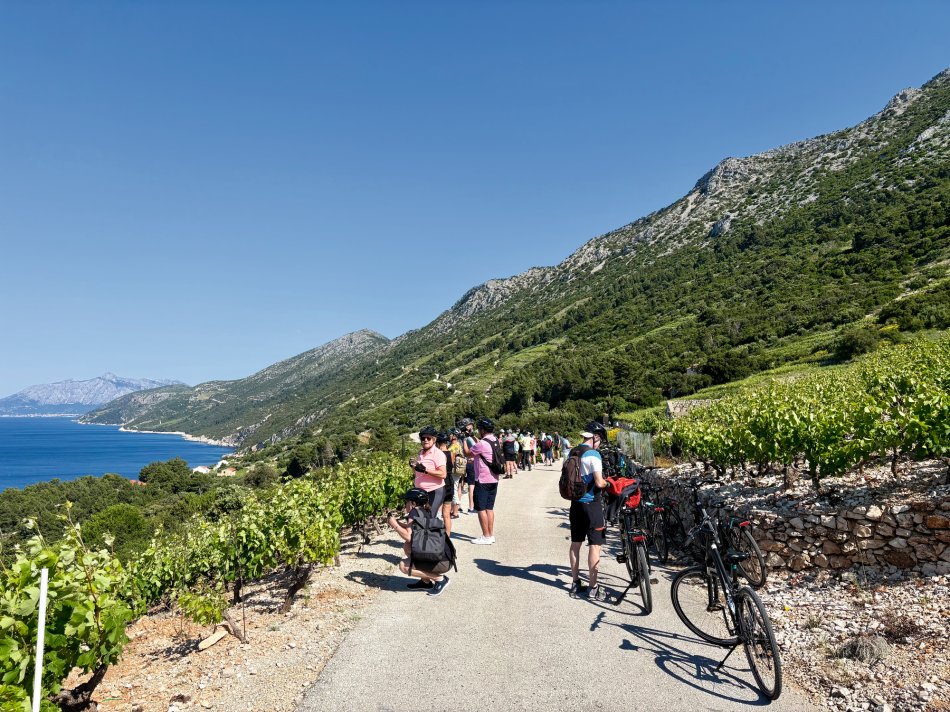 Nach einem unterhaltsamen Abend zum Captain´s Dinner und einem ausgiebigen Frühstück in der idyllischen Bucht von Trstenik startete um 09:00 Uhr unsere Radtour über die Halbinsel Pelješac. Direkt hinter unserem Schiff ragten schon die steilen Hänge empor, an denen die berühmte Weinsorte Palvac mali in der Sonne herenreift. Mit unseren Rädern ging es direkt hinein in das tolle Weinanbaugebiet und direkt hinauf auf eine Höhe von 450 m. Traumhaft war die Tour, immer oberhalb des Meeres entlang, mit herrlichen Ausblicken auf unser Schiff, welches uns folgte und kleine Dörfchen, die am Ufer nestelten. Wir durchfuhren den 450 m langen Tunnel Dingac, der einmal quer durch den Berg führt und in den 70er Jahren von Hand gebaut wurde. Auf dem Weg nach Orebic hielten wir zunächst an einem herrlichen Aussichtpunkt an, um den Blick auf die Stadt der Kapitäne, auf das gegenüberliegende Korčula und die zahlreichen kleinen Inselchen zu genießen, bevor wir dem Weingut- und museum Mikulic einen Besuch abstatteten. Nach einer interessanten Führung durch das liebevoll gestaltete Museum verkosteten wir die exzellenten Pelješac-Weine. Es wurde viel gelacht und das ein oder andere Mitbringsel für zu Hause ergattert. Weiter ging es nach Orebić – im 19. Jahrhundert Heimat vieler Segelschiffe zum Warentransport. Heute zeugen die traumhaften Herrenhäuser noch vom Glanz der vergangenen Zeit. Eine kleine Pause wurde eingelegt, bevor wir die letzten Kilometer nach Kućište zurück legten, wo unser Schiff bereits mit einem späten Mittagessen auf uns wartete. Der Rest des Tages stand zur freien Verfügung. Zeit für einen ausgiebigen Spaziergang, oder ein Sonnenbad am Strand. Der Abend klang in einer kleinen Beachbar unweit des Schiffes gemütlich aus.