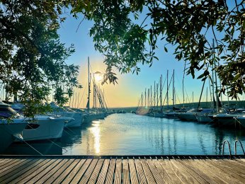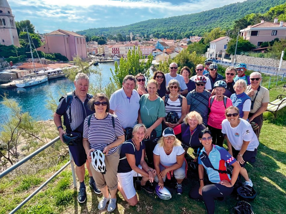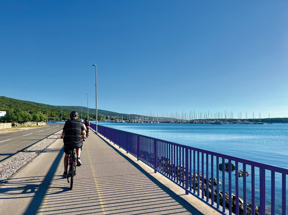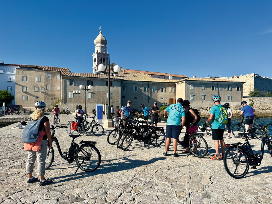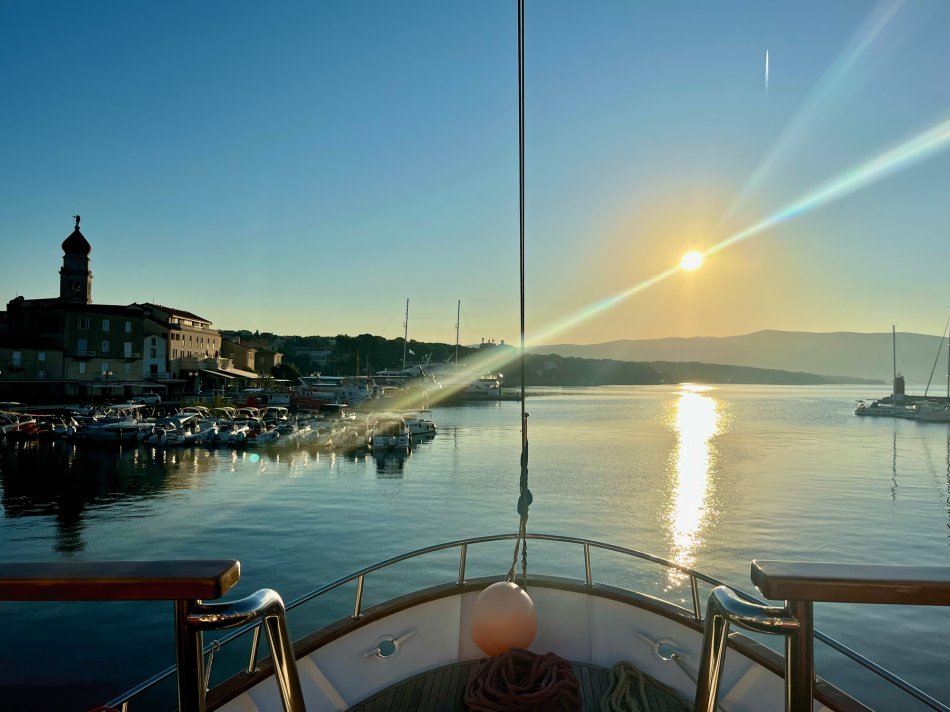 Nach einer erholsamen Nacht im Hotel Azul und einem guten Frühstück ging es um 09:00 Uhr weiter mit dem Bus nach Kroatien. Um 11:00 Uhr haben wir die kroatische Grenze passiert und 20 Minuten später hat uns die glitzernde Adria am Busbahnhof in Opatija empfangen. Kurzer Spaziergang entlang des Lungomare und durch den herrlich angelegten Stadtpark bis zum Hafen, wo wir herzlich an Bord von der Crew um Kapitän Luka auf MS Meridijan empfangen wurden. Außerdem trafen wir hier auch auf den Rest der Gruppe, die mit dem Flugzeug angereist waren. Kurze Sicherheitseinweisung und dann ging es auch direkt los. Bei strahlendem Sonnenschein nahmen wir, während des ersten gemeinsamen Mittagessen, Kurs auf die Insel Krk. Um 15:30 Uhr haben wir in Krk-Stadt festgemacht und schnell wurden alle Fahrräder abgeladen. Nachdem jeder sein Rad für die nächsten Tage erhalten hat haben wir direkt eine erste kleine Tour zur Einstimmung unternommen. Ziel war die Marina von Punat in 10 km Entfernung. Dort angekommen hatten wir Zeit für einen kleinen Spaziergang und für ein Erfrischungsgetränk, bevor wir uns langsam auf den Rückweg nach Krk-Stadt gemacht haben. Hier klang der Abend in einer der zahlreichen Restaurants gemütlich aus.