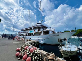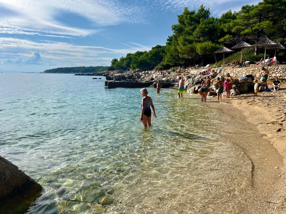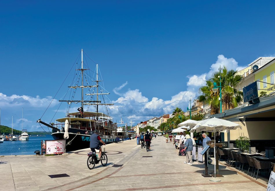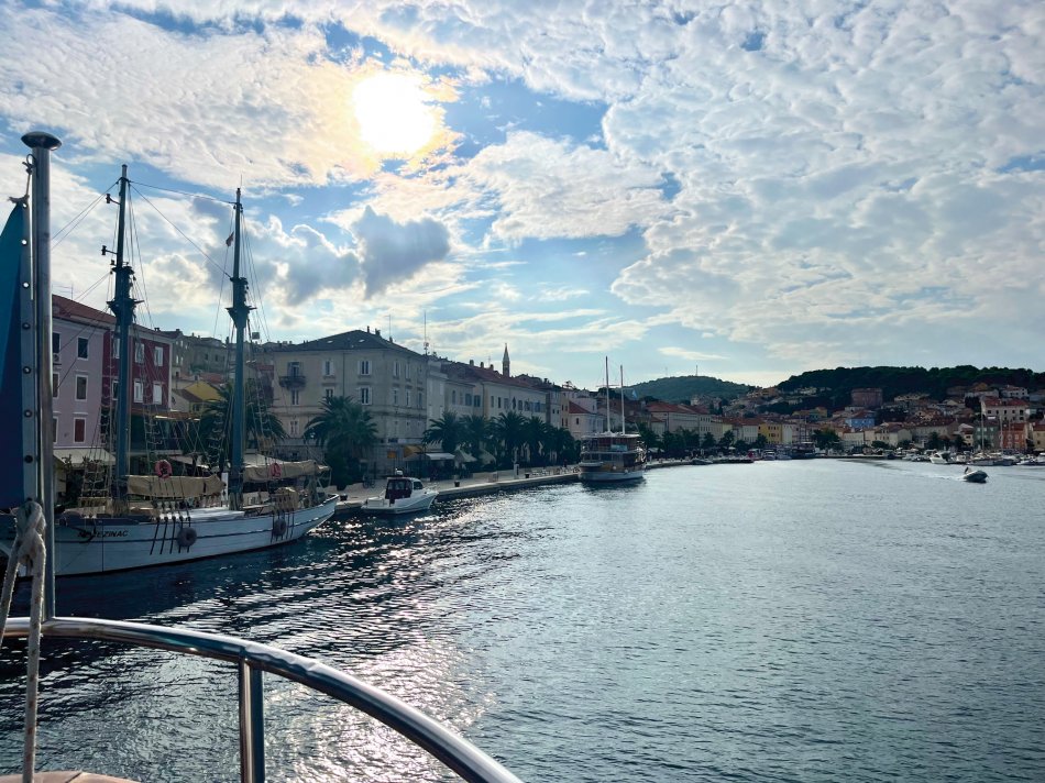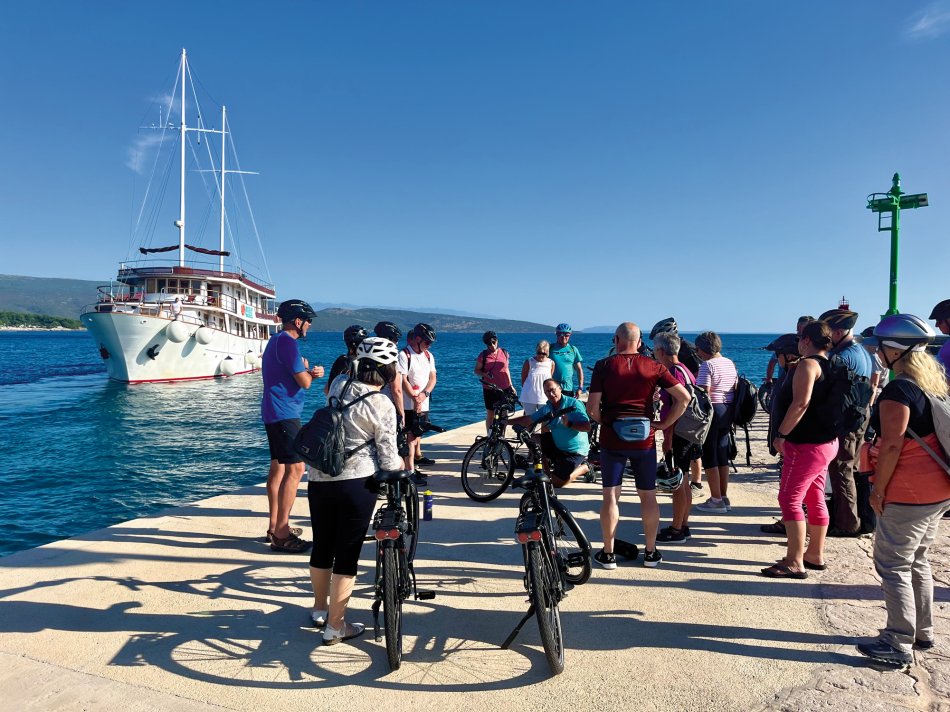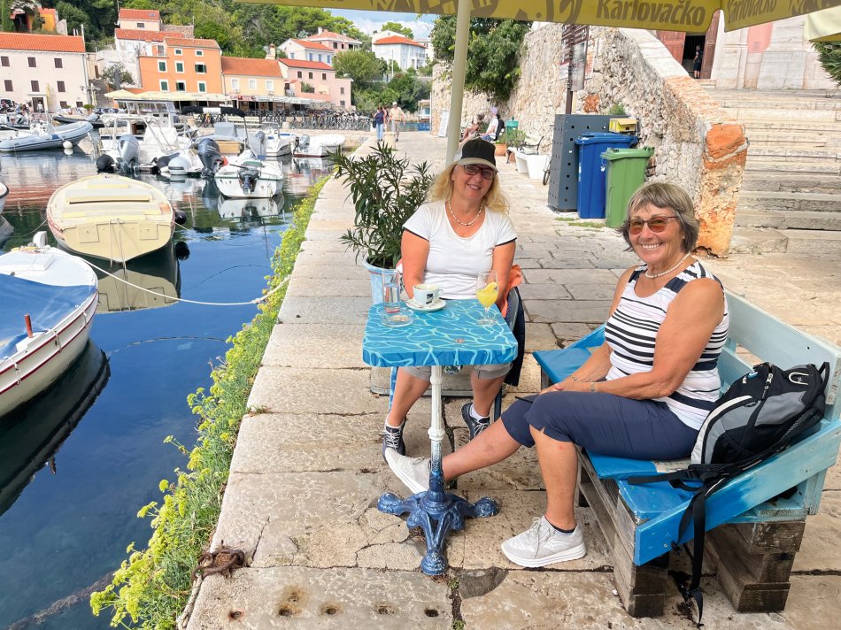 Bei leichter Bewölkung aber angenehmen Temperaturen sind wir gestern früh mit MS Meridijan in Ilovik gestartet und haben Kurs auf die Insel Losinj genommen. Nach dem Frühstück haben wir in der schönen Augustusbucht in Mali Losinj festgemacht und die Räder wurden abgeladen. Ja... und dann ging es auch schon los - für Reiseleitung Nicole stand die schönste Tour der ganzen Woche bevor. Es ging gemütlich durch die 3 Buchten von Cikat. So ein schöner Weg immer am Meer entlang! Nach ein paar Fotostopps haben wir die Promenade verlassen und sind entlang der Straße bis nach Veli Losinj gefahren. Auch dieses kleine Örtchen ist ganz zauberhaft mit einem ganz kleinen Hafenbecken, um das sich kleine Restaurants und Geschäfte reihen. Zeit für ein Getränk und einen Spaziergang bis zur Kirche und dem kleinenAussichtsturm, bevor wir zurück nach Mali Losinj radelten. Schnell wurden die Räder wieder aufgeladen und während des Mittagessens an Bord nahmen wir Kurs auf die Insel Cres. Es war ausgiebig Zeit, um in der Sonne zu dösen oder sich mit einem Buch zurück zu ziehen. Um 14:15 Uhr ankerten wir in einer Badebucht und alle, die wollten, sind vom Schiff aus direkt in die glasklare Adria eingetaucht. Das Meer hat noch immer angenehme Temperaturen. Anschließend setzten wir unsere Fahrt fort und erreichten gegen 17:30 Uhr die beschauliche Altstadt von Cres. Kleine Geschäfte und gute Restaurants schmiegen sich hier rings um das verschlungene Hafenbecken. In der besten Weinbar des Städtchens - im Miramar - klang der Abend sehr gesellig aus.