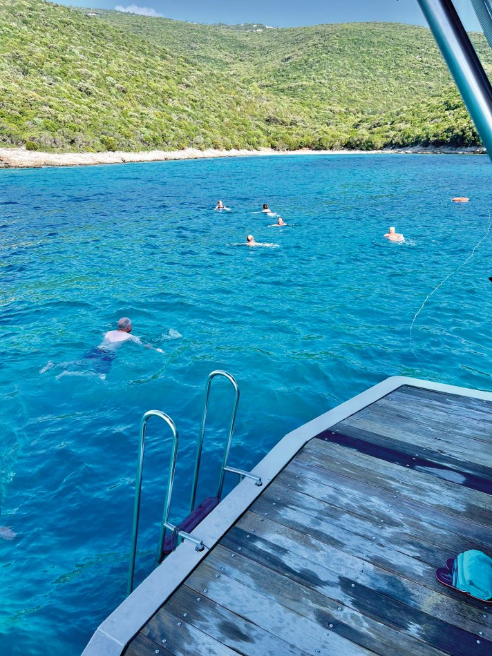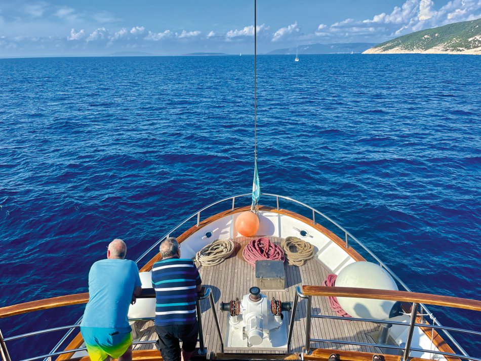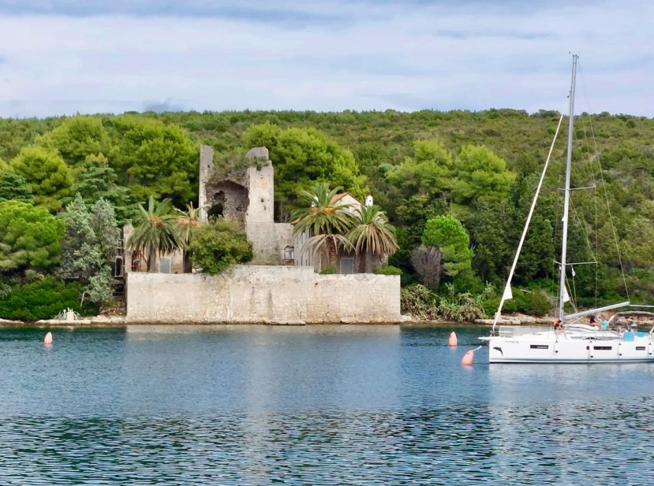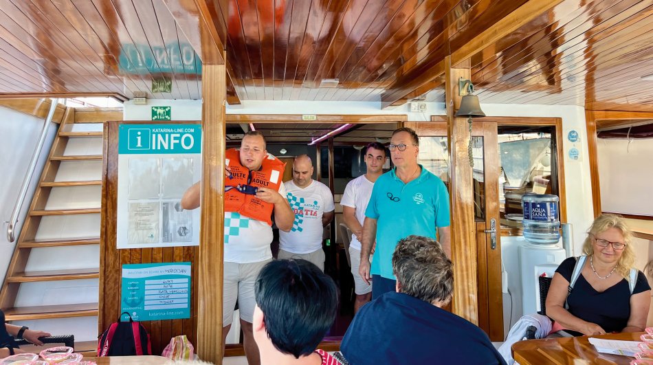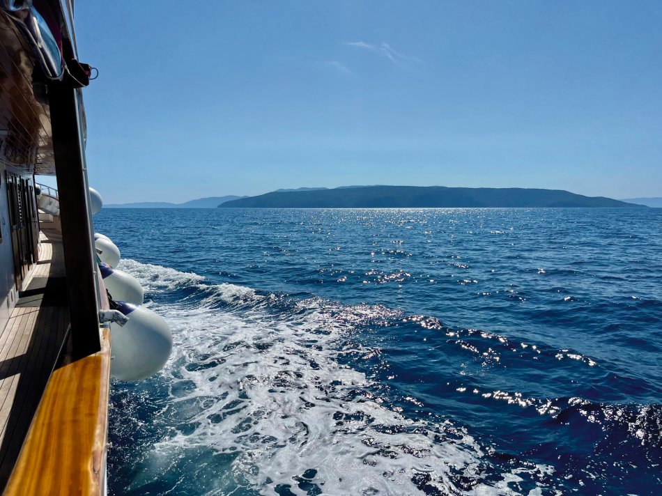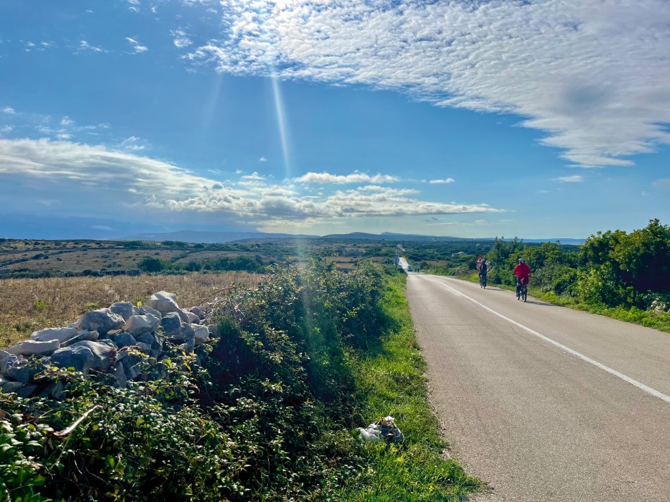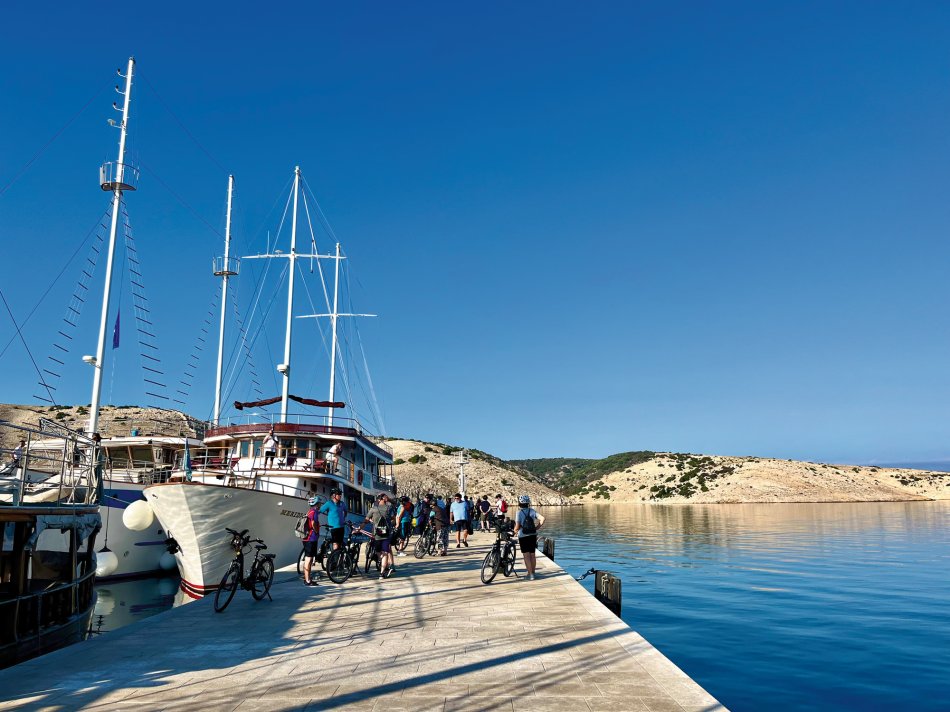 Um 07:30 Uhr wurden gestern die Motoren gestartet und unsere Meridijan brachte uns entspannt während des Frühstücks von der Insel Rab zur Insel Pag. Nach Ankunft im verschlafenen Örtchen Torvanele starteten wir zu unserer Radtour über die Insel Pag. Herrlich entspannt war die Tour... es waren kaum Autos unterwegs und jeder konnte nach seinem eigenen Tempo radeln. Unzählige Trockenmauern, zahlreiche Olivenplantagen und Schafe und der Blick auf die Adria, wo uns die Meridjan folgte war immer gegeben. Erstes Ziel war die (im Sommer) Touristenhochburg Novalija. Aber auch hier neigt sich die Saison langsam dem Ende entgegen. Einkehr zu einemerfrischenden Bierchen und kurze Verschnaufpause, bevor es weiter ging nach Mandre. Hier erwartete uns die Meridjan zum Mittagessen. Die Fahrräder wurden aufgeladen und wir machten uns auf den Weg zur Insel Ilovik. Genügend Zeit zum Ausruhen und Landschaft genießen, bis wir an der Blumeninsel festmachten. Wer mochte, konnte an einem kleinen geführten Spaziergang teilnehmen. Alle anderen Gäste kehrten zu Eis und Kaffee ein oder zogen sich mit einem Buch auf´s Sonnendeck zurück. Um 19:30 Uhr erwartete uns Kapitän Luka zum Captain´s Dinner. Köchen Zlata ist wirklich ein Genie in der kleinen Küche und zauberte ein hervorragendes 4-Gang-Menü. Anschließend sorgte Radguide Fredi für eine Überraschung... Mit seinem Akkordeon spielte er stimmungsvolle Musik zum Mitsingen, Schunkeln und Tanzen. Bis spät in die Nacht erklangen die Gläser!