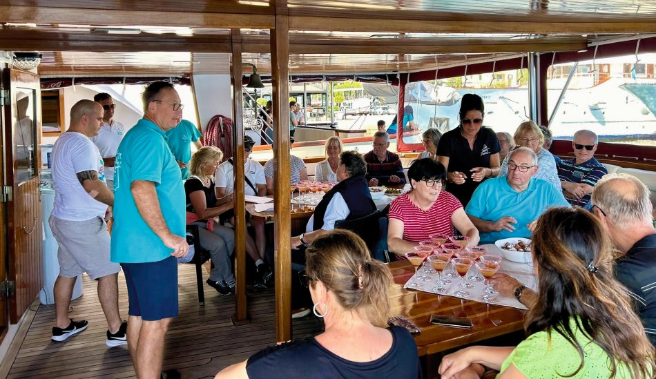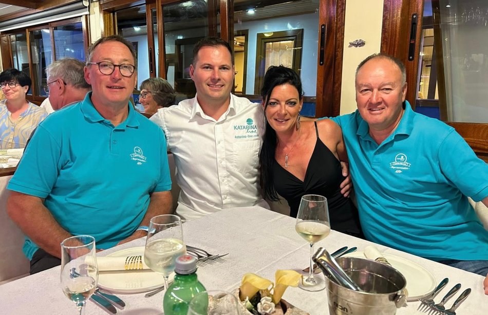 Früh am Morgen war Reiseleiterin Nicole gestern schon auf den Beinen, da 3 unserer Gäste bereits um 06:00 Uhr im Hafen von Rijeka abgeholt und zum Flughafen Rijeka transferiert wurden. Um 06:10 Uhr sind wir dann mit unserer Meridijan nach Opatija gestartet. Einen schnellen Kaffee und dann Koffer packen, bevor wir um 07:00 Uhr - pünktlich zum Frühstück - im Hafen festgemacht haben. Bis 8 Uhr standen alle Koffer von den Kabinen. Alles wurde fix von der Crew ab- und umgeladen und alle haben sich von unserer lieben Crew verabschiedet. Während das Gepäck mit einem Auto zum Busbahnhof transferiert wurde, sind wir noch ein letztes Mal gemütlich am Lungomare entlangspaziert und haben die letzten Blick auf die Adria genossen. Pünktlich um 09:00 Uhr ging es dann mit dem Bus weiter in Richtung Österreich. Beim Überqueren der österreichischen Grenze fing es leider an zu Regnen. Auch während unserer Mittagspause am Wörthersee hörte es leider nicht auf. Kein Problem - die Würstchen wurden im Bus ausgeteilt und anschließend sind trotzdem alle noch mal zu den zwei Kirchen von Maria Wörth spaziert. Nach 150 km haben wir dann auch unser Stammhotel in Altenmarkt erreicht. Herzlich wurden wir von Hotelier Franz im Markterwirt begrüßt und um 18:30 Uhr zum Abendessen erwartet. Es war hervorragend und natürlich - wie kann es anders sein - saßen wir auch im Anschluss noch bei Stiegl Bier, Wein und Obstler beisammen.