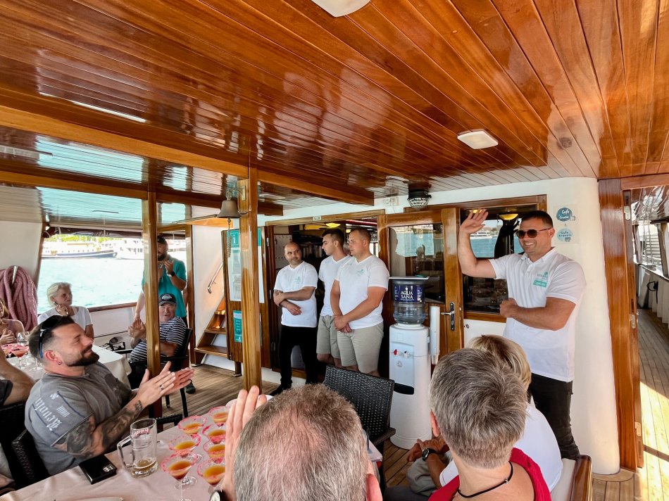 Zeitiges Aufstehen war angesagt, zumindst für Time to Travel, denn die ersten 6 Gäste haben wir schon um 5 Uhr herzlich verabschiedet. Für alle anderen gab es von 7:30-08:30 Uhr ein letztes leckeres Frühstück an Bord. Die Crew musste wieder schwer arbeiten und beförderte unser Gepäck auf dem Wasserweg zur Pier. Pünktlich um 10:15 Uhr stand unser Transferbus zum Flughafen bereit. Nach Ankunft am Airport stand unsere Maschine schon mit knapp 2 Stunden Verspätung am Plan. Das war nicht schlimm, hatten wir doch alle miteinander so viele schöne Momente, die wir haben Revue passieren lassen. Leider wurde der Abflug immer weiter nach hinten verschoben auf Grund eines technischen Deffekts am Flugzeug. Um 17:45 Uhr wurde der Flug schließlich gecancelt. Croatia Airlines hat uns dann ins Hotel Medena in Trogig gebucht, wo auch direkt ein Abendessen auf uns wartete. Wir haben uns unsere gute Laune nicht nehmen lassen, uns kann schließlich nichts erschüttern. So hatten wir eben noch einen zusätzlichen, wenn auch unfreiwilligen, Abend im bezaubernden Kroatien, den wir gebührend haben ausklingen lassen. Am Sonntag ging es dann für alle nach Hause. Man kann eine Reise noch so gut planen, es gibt eben einfach Dinge, auf die haben selbst wir absolut keinen Einfluss.