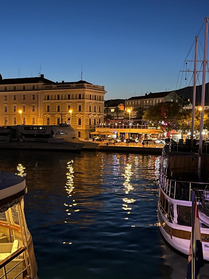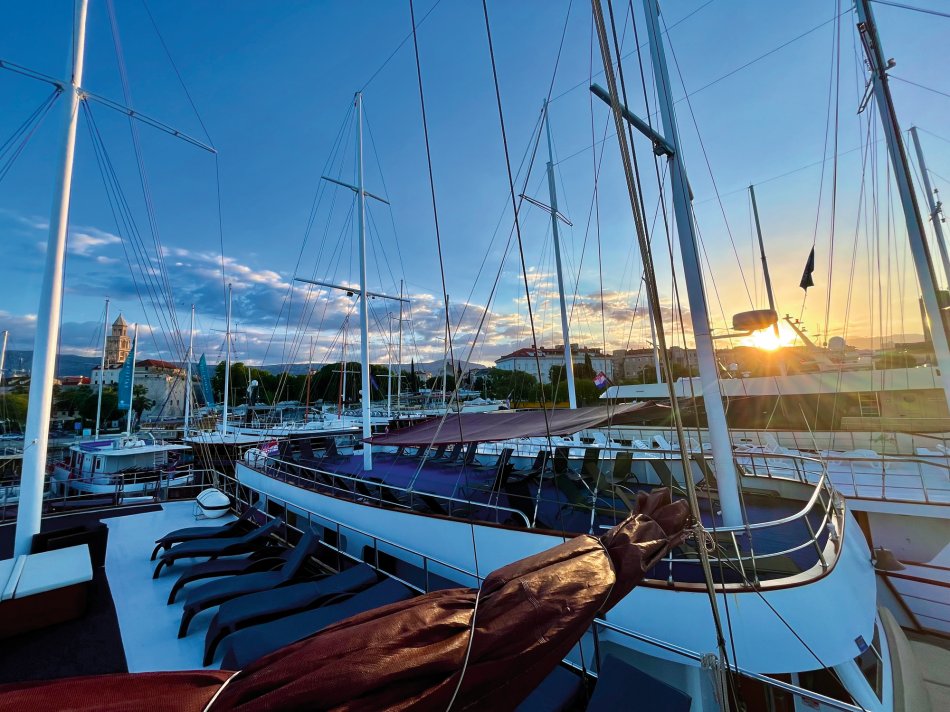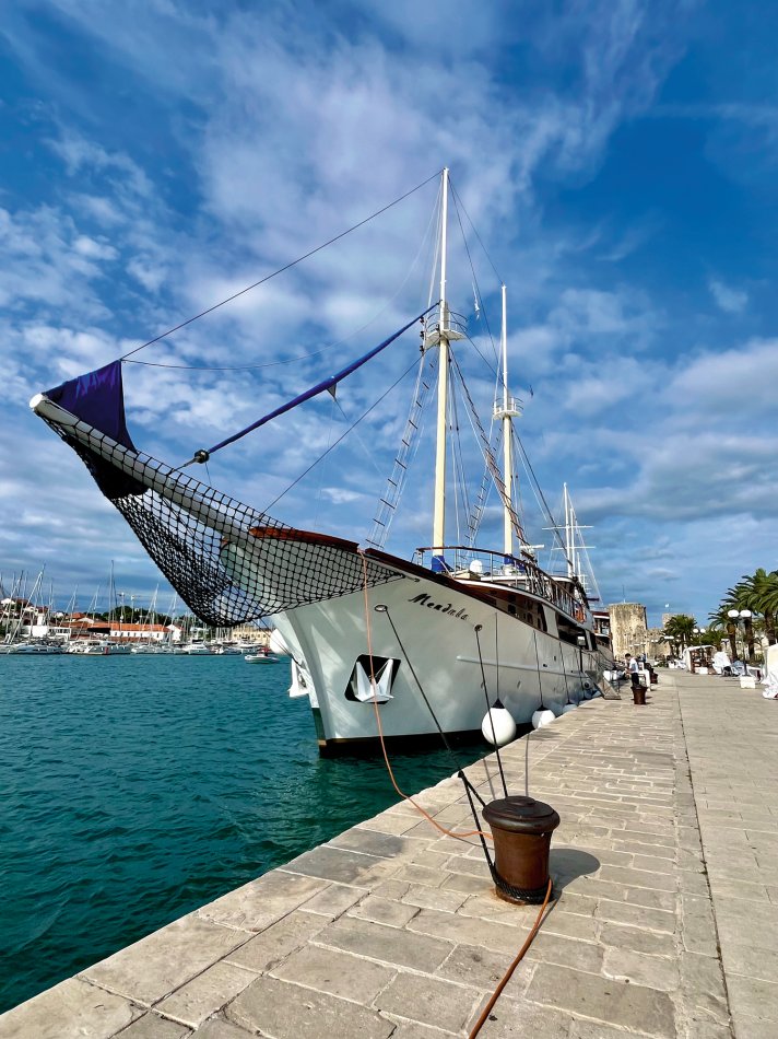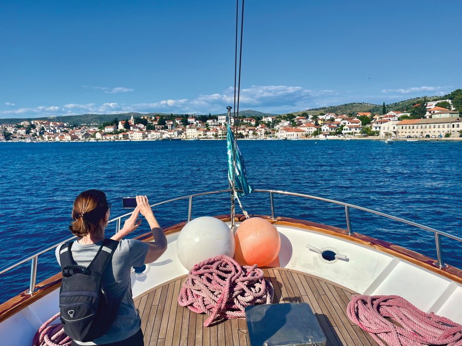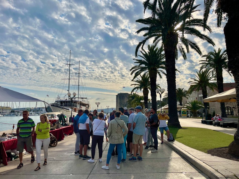 Da wir die Route auf Grund des Windes ein bisschen geändert hatten, waren wir nun in der Lage, unseren Gästen sogar noch eine zusätzliche Radtour zu bieten, was für große Begeisterung sorgte. So fuhren wir gestern bei strahlendem Sonnenschein und spiegelglatter See mit unserer Meridijan zur Insel Solta, wo wir das kleine Örtchen Rogac um 9:00 Uhr erreichten. Frisch gestärkt vom Frühstücksbuffet radelten wir hier einmal über das grüne und hügelige Inselchen bis nach Maslinica, wo zahlreiche Bötchen im kleinen Hafenbecken nestelten und tolle Stände mit glasklarem Wasser auf uns warteten. Wir hatten ausgiebig Zeit für ein Getränk, eine Abkühlung im Wasser und zum Sonnenbaden, bevor wir gegen Mittag zurück nach Rogac radelten. Hier startete die letzte Etappe unserer Kreuzfahrt. Relaxen auf dem Sonnendeck oder im Loungebereich an Bord, während und Kapitän Luka zurück nach Split bracht. Da wir schon um 14:00 Uhr ankamen, hatten alle Gäste ausreichend Zeit, um die wundervolle Stadt zu erkunden. Einige spazierten durch den Park Marjan - die grüne Lunge von Split mit herrlichen Aussichtspunkten - Einige erkundeten den Diokletianpalast. Zahlreiche Lokale lockten mit kulinarischen Köstlichkeiten und entlang der Riva, mit Blick auf den geschäftigen Hafen, wurde die Reise gebührend gefeiert. Bis in die späten Abendstunden saßen auf dem Sonnendeck und in der Lounge die Gäste zusammen und ließen eine traumhafte Woche Revue passieren. Nun sitzen wir auf gepackten Koffern. Ein letztes vorzügliches Frühstück an Bord, bevor unser Transfer zum Flughafen auf uns wartet....