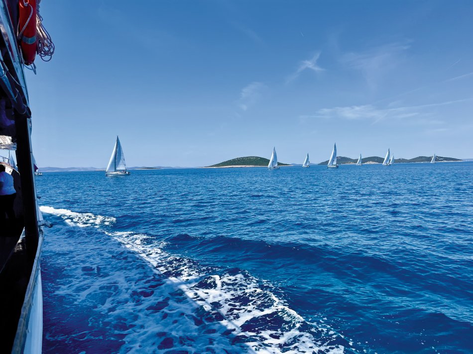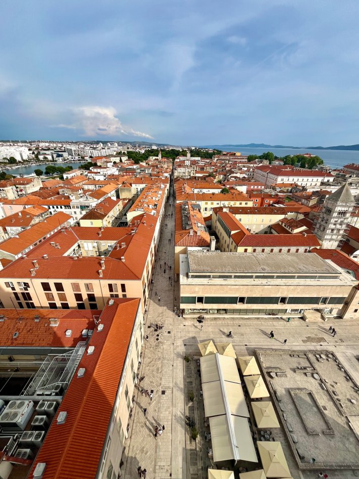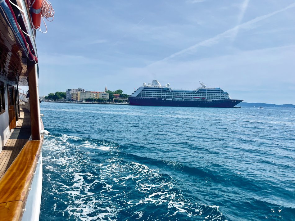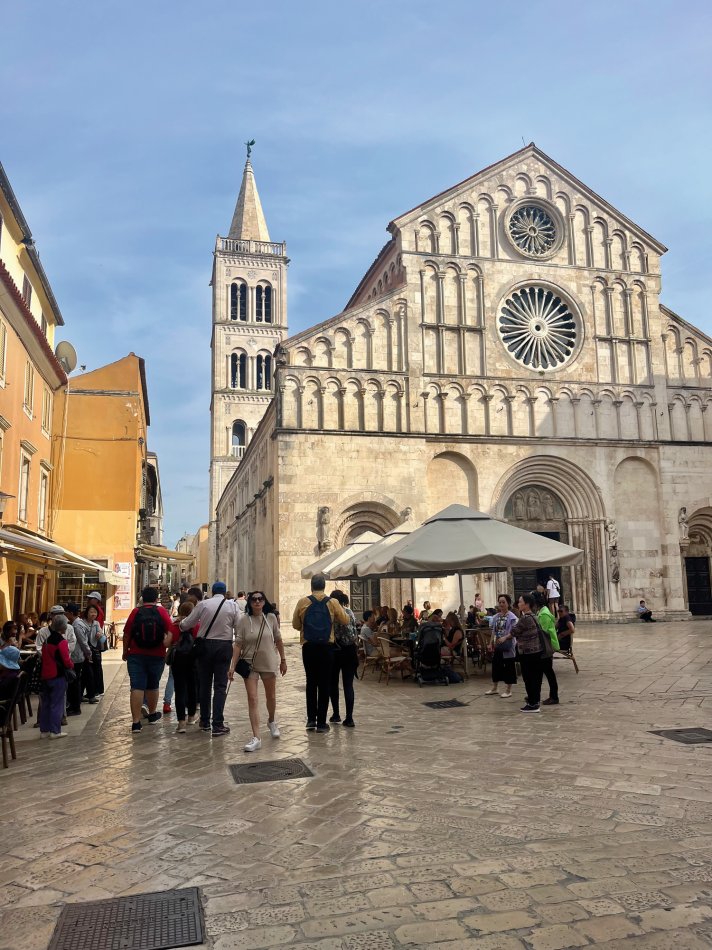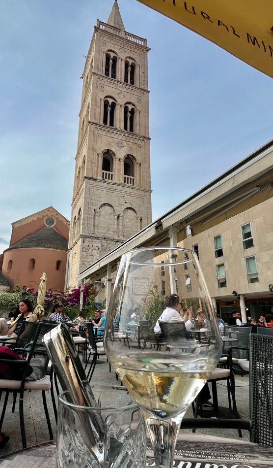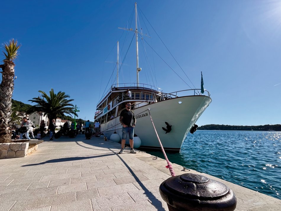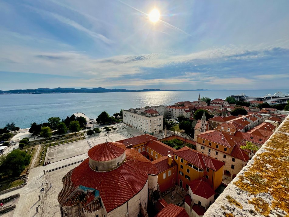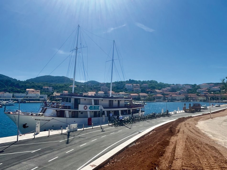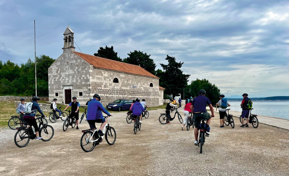 Nach einer durchtanzten und lustigen Nacht und einem erneut umfangreichen Frühstück an Bord, starteten wir gestern direkt nach der morgendlichen Stärkung zu unserer Radtour über die Insel Dugi Otok. Es ging abermals vorbei am Eingang zum Naturpark Telascica, bevor wir das Inselinnere durchquerten. Auf Dugi Otok gibt es nur wenige Autos, so sind wir bei unserer Fahrt auf der Straße nur ganz wenigen Fahrzeugen begegnet und konnten tolle Aussichten genießen. Prächtig blühende Oleandersträucher, Olivenbäume und Wildblumen begleiteten uns am Wegesrand. Gemächlich ging es Bergauf und Bergab, bei insgesamt 250 Höhenmetern, die wir zu überwinden hatten. So konnten wir immer wieder tolle Aussichten auf die Inselchen der Adria genießen, auf kleine verschlafene Dörfer und auf Fischaufzuchtstationen. In Savar, einem ganz kleinen Dörfchen am Meer haben wir am späten Vormittag einen Stopp eingelegt. Auf einer kleinen Halbinsel befindet sich das Kirchlein Sveti Pelegrin, wahnsinnig idyllisch und romantisch. Das kleine Halbinselchen lud zu einem Spaziergang ein. Einige der Gäste nutzten die Zeit für eine Abkühlung in der Adria, andere für ein Sonnenbad. Weiter ging´s ins nur 3 km entfernte Birbinj, wo uns die Meridijan bereits zum Mittagessen erwartete. Währenddessen passierten wir die die Mondlandschaft der Kornaten auf unserem Weg nach Zadar. Um 16:00 Uhr starteten wir zu einem kleinen Rundgang durch die hübsche und vielseitige Stadt. Vom Platz "Gruß an die Sonne" mit der Meeresorgel ging es entlang der Promenade, vorbei am Forum durch die Geschäftsstraße bis zur besten Eisdiele der Stadt. Lecker war´s! Anschließend konnte jeder tun und lassen, worauf er Lust hatte. Time to Travel hat natürlich wieder die zahlreichen Stufen der Glockenturms erklommen um einen Blick aus der Vogelperspektive zu haben. Anschließend eine Erfrischung am Fuße des Turms, begleitet von Live-Musik, bevor wir ein bisschen durch die Geschäfte gebummelt sind. Zum Abendessen gabs Miesmuscheln in einer urigen kleinen Konoba.