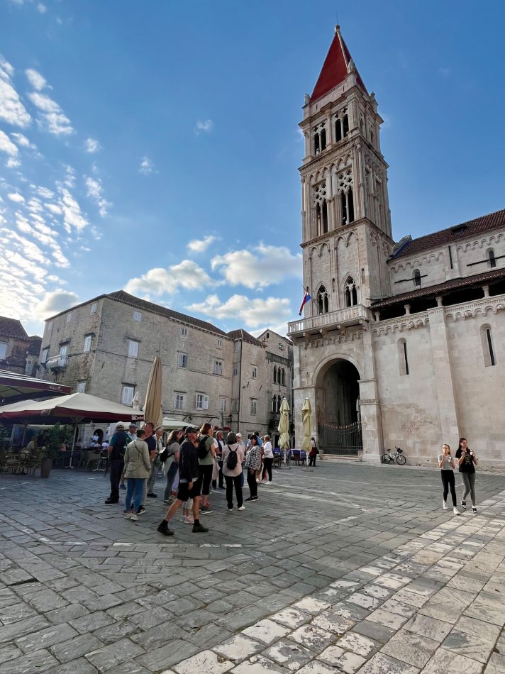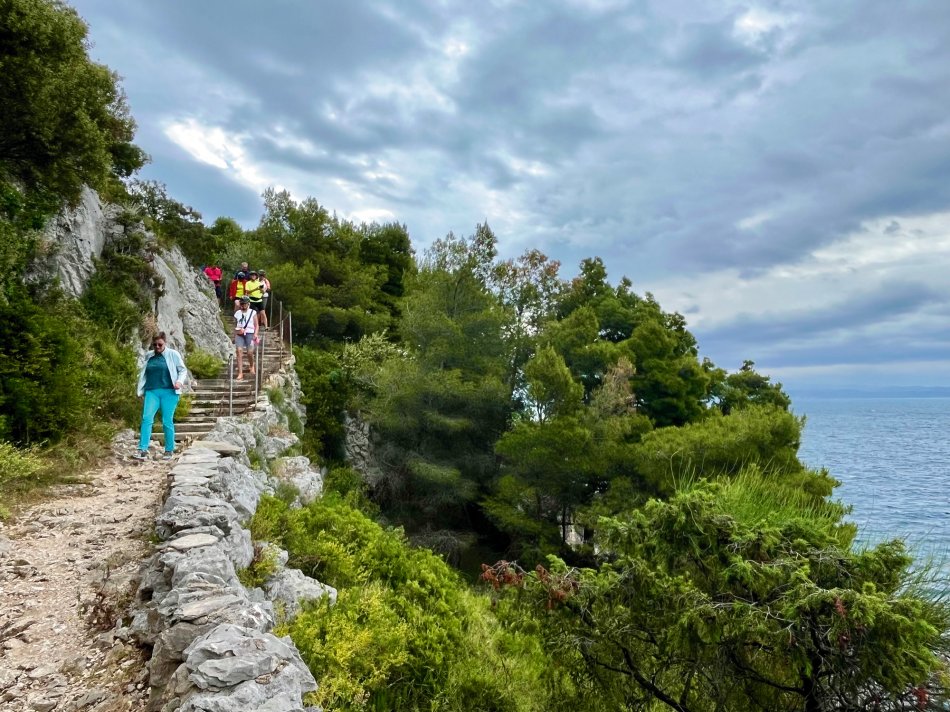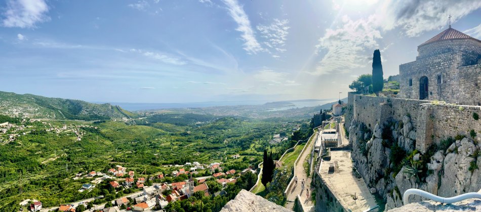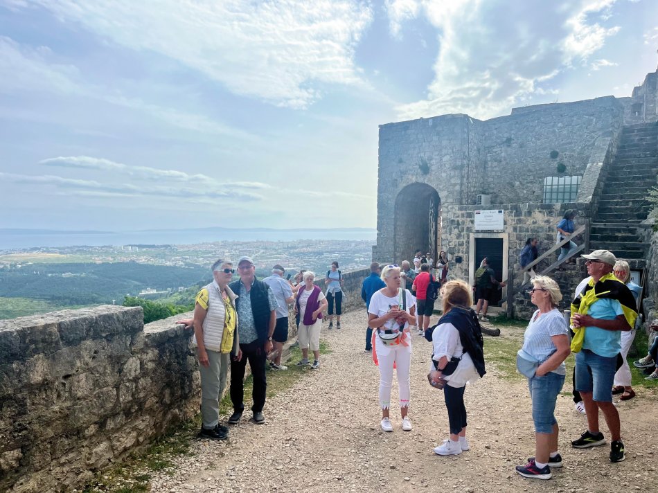 Der Wind blies ganz schön, als wir gestern um 9:00 Uhr zu unserer Radtour ab Trogir starteten. Über die Brücke, die die Altstadt von Trogir mit der Insel Ciovo verbindet, radelten wir zunächst am Wasser entlang und später auf gewundenen Pfaden durch das Inselinnere, bis zur Kirche Gospe od Prizidince, einer kleinen Wallfahrtskirche, die sich in atemberaubender Lage an die steilen Klippen hoch über dem Meer schmiegt. Weiter ging es mit einem tollen Ausblick auf Split bis nach Mastrinka. Hier gibt es herrlich lange und flache Sandstrände und verschiedene Beachbars. In einer von ihnen legten wir eine Erfrischungspause ein, bevor wir zurück nach Trogir radelten, wo uns die Meridijan um 13 Uhr zum Mittagessen erwartete. Es blieb noch eine halbe Stunde Zeit, um der Festung Kamerlengo einen Besuch abzustatten, die direkt an der Promenade von Trogir liegt. Von hier hat meinen einen wunderbaren Blick auf ganz Trogir, den Hafen und die Insel Ciovo. Da auch für den Nachmittag viel Wind angesagt war, haben wir kurzerhand einen Ausflug organisiert. Mit einem örtlichen Reisebus sind wir nach Klis gefahren, ein kleines Örtchen vor den Toren von Split, welches jedoch über eine fantastische Sehenswürdigkeit verfügt - die Festung Klis. Die riesige Anlage besteht schon seit dem 5. Jahrhundert und thront auf einem Hügel über der Ortschaft. Wehrtürme, Waffenkammern, mächtige Mauern und wahnsinnig schöne Aussichtspunkt auf Split und das gesamte Umland gab es zu entdecken. Auch Fans der Serie Games of Thrones kamen hier auf ihre Kosten, denn die Festung war mehrfach Drehort, wovon noch einige Requisiten zeugen. Wir beendeten unseren Ausflug mit einem kühlen Bier in Klis, bevor wir zurück nach Trogir fuhren. Wir sagen ja immer: bei Time to Travel ist einfach Mee(h)r für die Gäste dabei! Das haben wir heute wieder unter Beweis gestellt und für glückliche Gäste gesorgt!