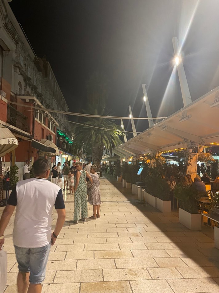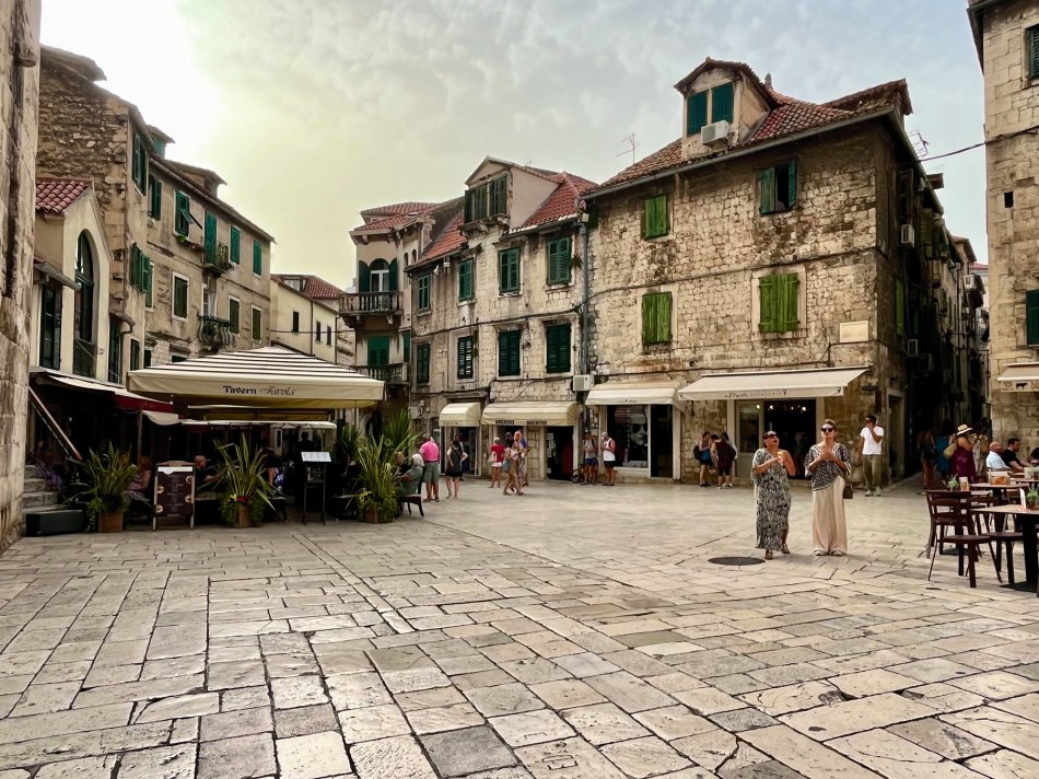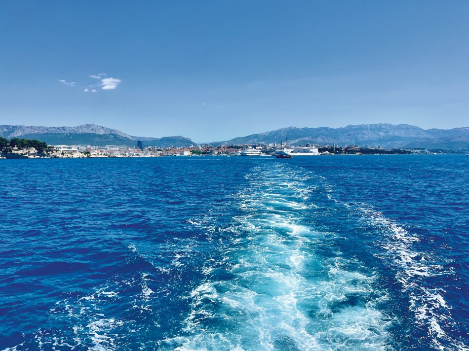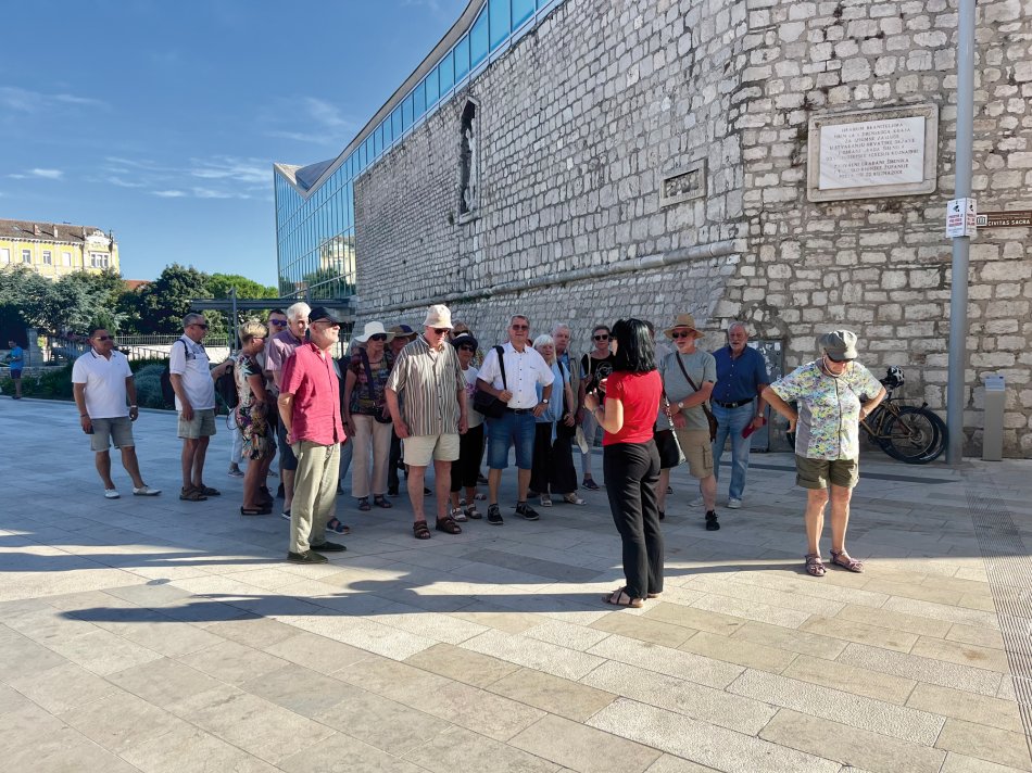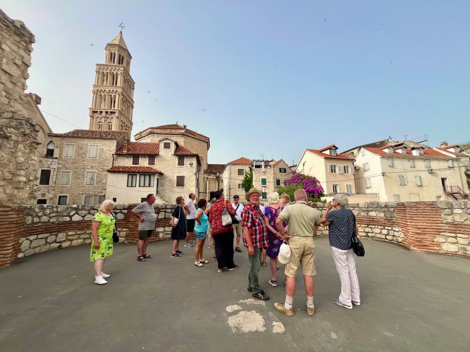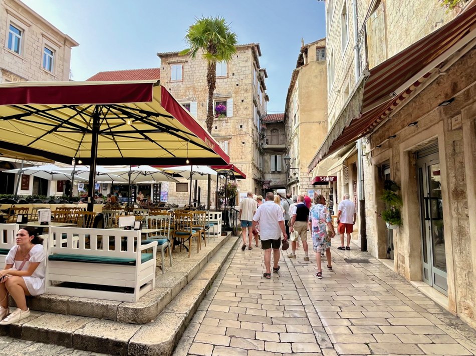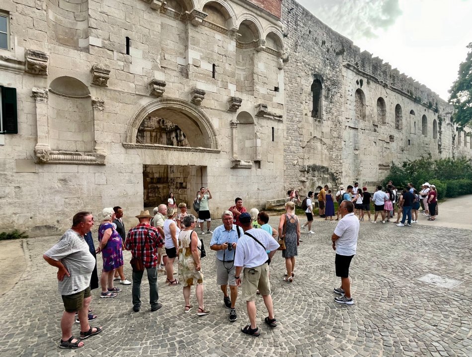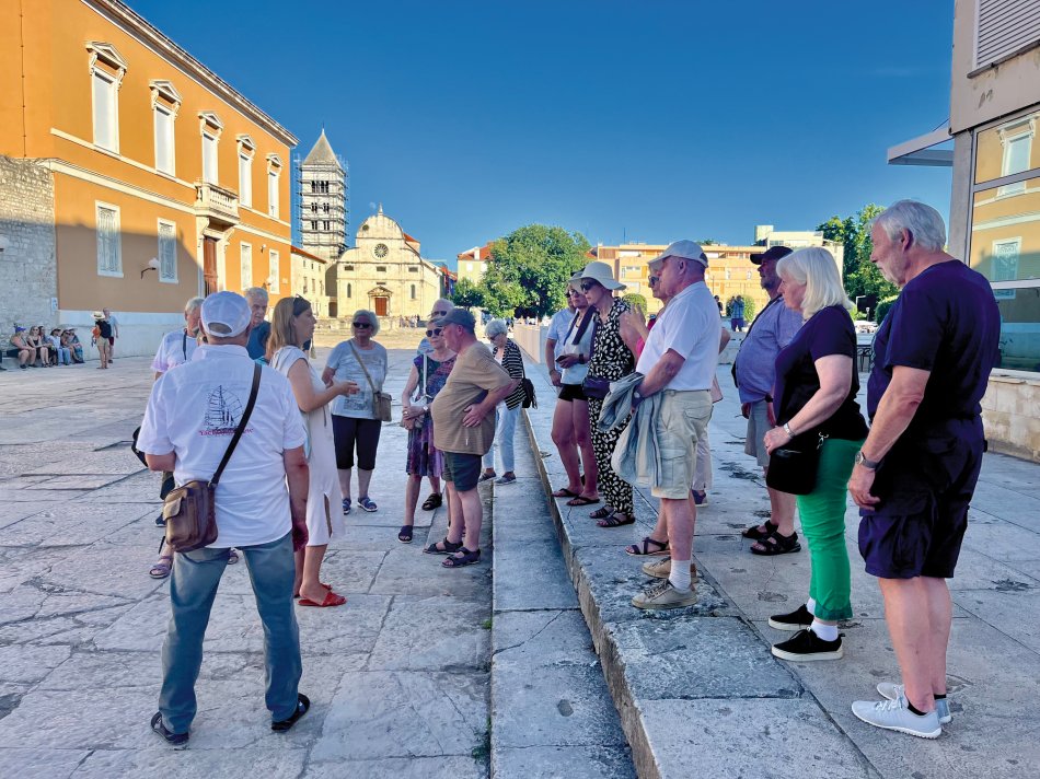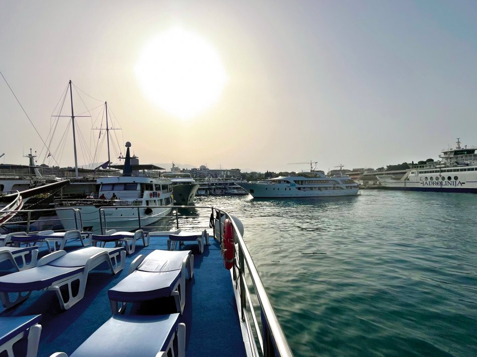 an Bord, bevor uns unser Kapitän - zur großen Freude unserer Gäste - mit einer letzten Badepause überraschte. Dann kam langsam auch schon wieder Split, der Startpunkt unserer Reise, in Sicht. Reiseleiterin Suzi - ein wahres kroatisches Urgestein - hat uns um 17 Uhr zum Stadtspaziergang erwartet. Mit viel Humor und Witz hat sie uns durch die mächtigen Mauern des Diokletianpalastes geführt. Split - eine traumhafte Stadt, in der es wahnsinnig viel zu sehen und zu erleben gibt! Nach dem Rundgang genossen es unsere Gäste, durch die urigen Gassen zu streifen, dem ein oder anderen Geschäft einen Besuch abzustatten und lecker zum Abendessen einzukehren. Die Riva lockte zu einem Absacker in der Stadt und auch an Bord erklangen nochmals die Gläser auf eine sehr schöne und erlebnisreiche Reise!
