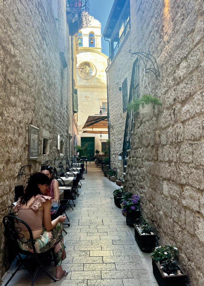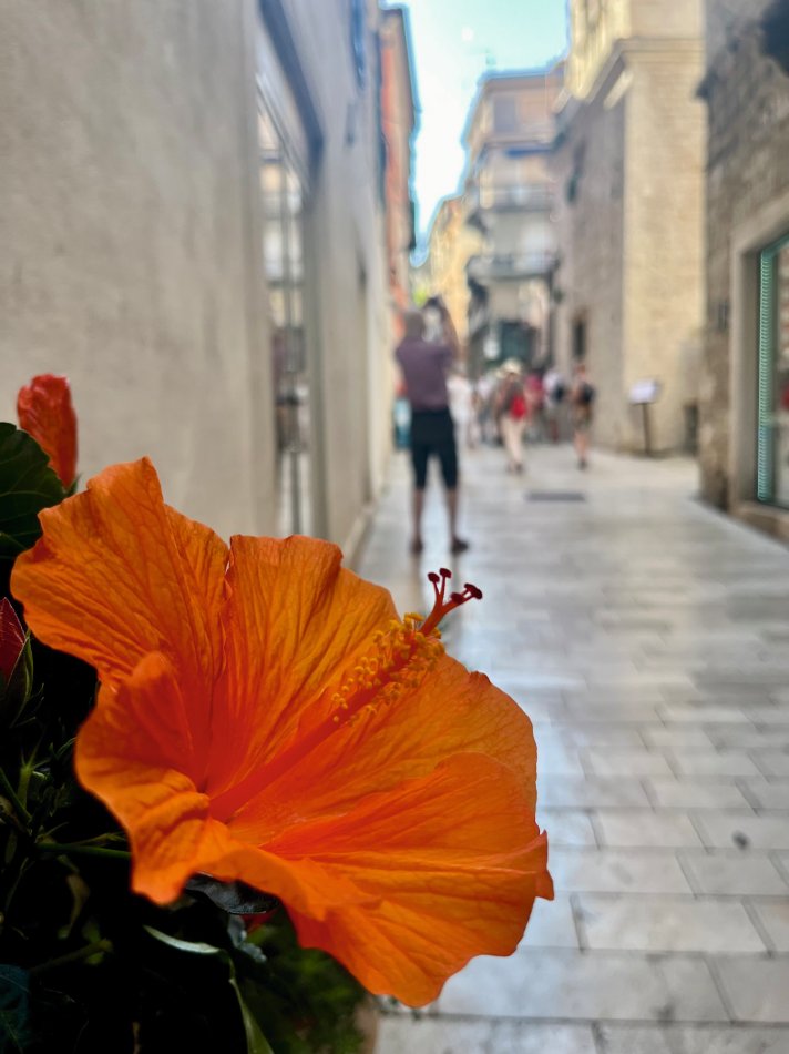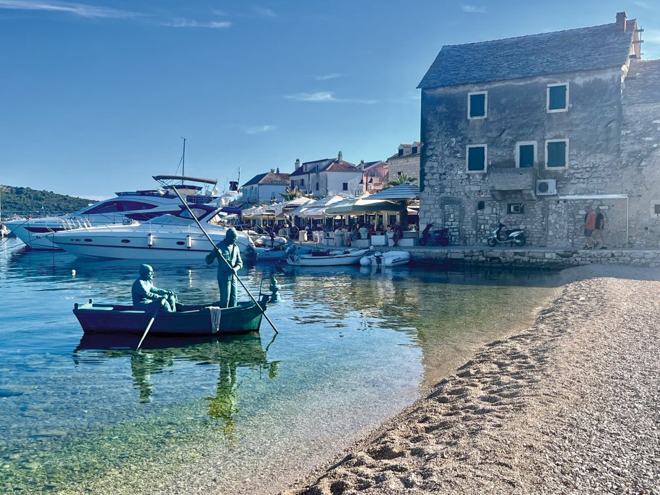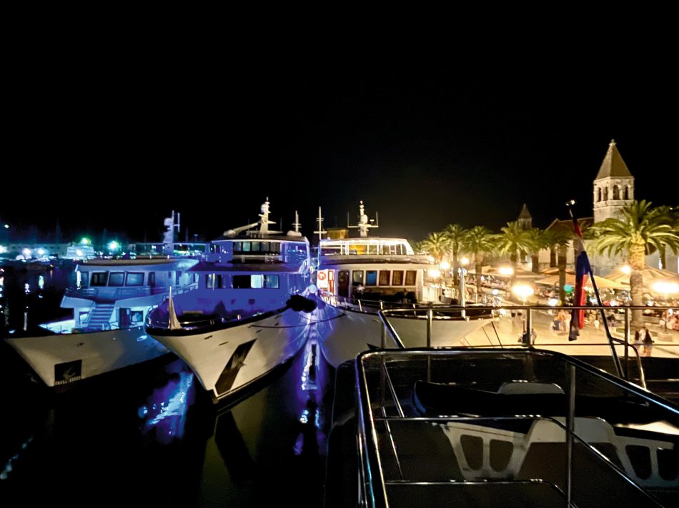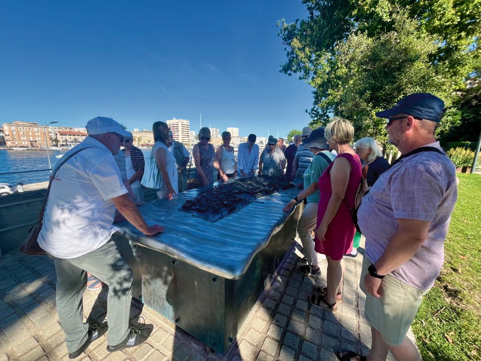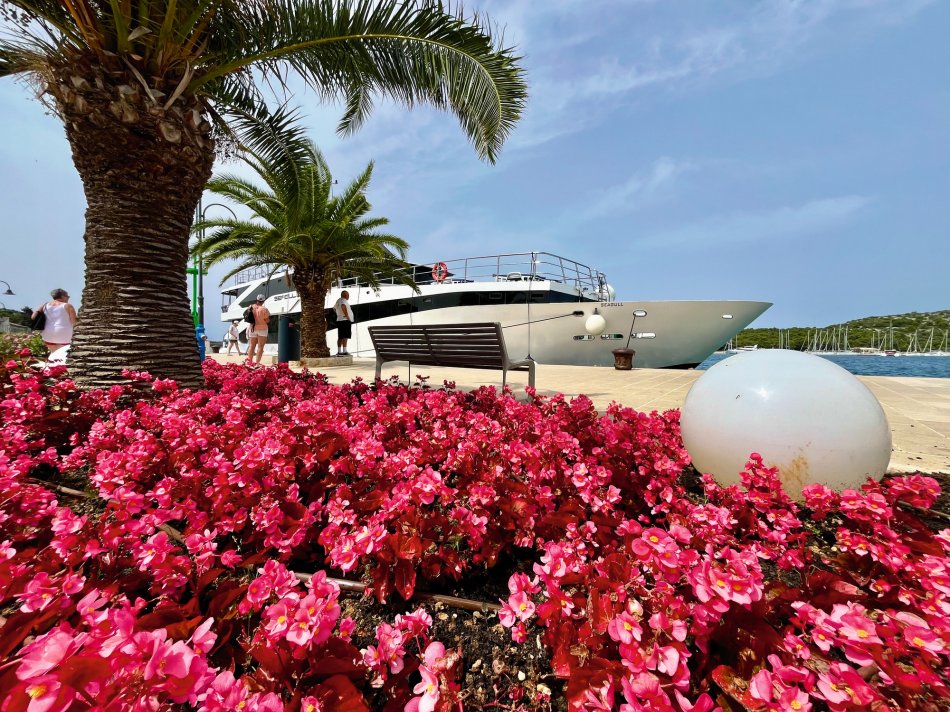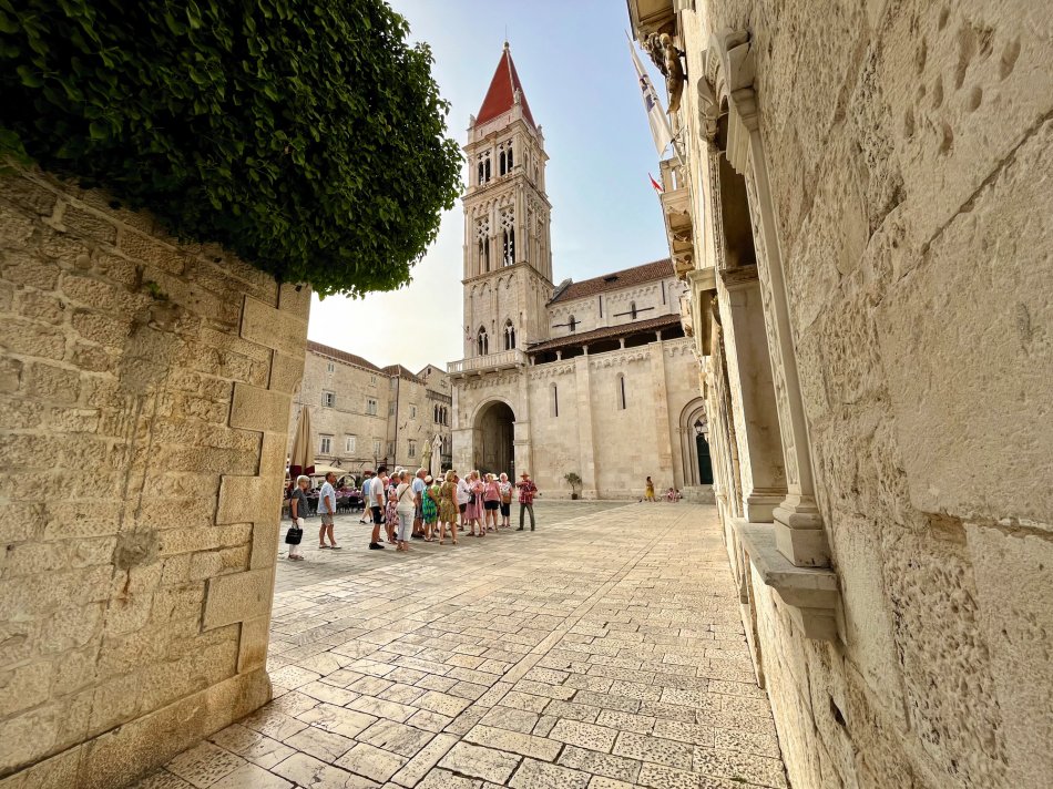 Um 07:30 Uhr haben wir gestern das Korallenstädtchen Zlarin verlassen und haben Kurs entlang der Küste in Richtung Trogir genommen. Unterwegs haben wir in Rogoznica einen Besucherstopp eingelegt und an der Altstadtinsel Kopara festgemacht. Mit tollem Blick auf die große und moderne Marina Frapa hatten wir ein Stündchen Zeit für einen Spaziergang entlang der von Palen gesäumten Uferpromenade. Urige Steinhäuser, kleine Geschäfte und eine Vielzahl an kleinen Cafés luden zu einem Bummel und zur Einkehr ein. Von der Marienkapelle aus hat man einen schönen Blick auf Rogoznica. Vor Trogir legten wir eine ausgiebige Badepause ein. Die Temperaturen gestern waren ungewöhnlich heiß für diese Jahreszeit und so stürzten wir uns alle ins kühle Nass und genossen die Abkühlung. Zum Mittagessen erwartete uns heute ein hervorragendes BBQ mit frischen Salaten und Grillspezialitäten, bei dem Cevapcici natürlich nicht fehlen durfte. Gegen 17:00 Uhr erreichten wir Trogir und wurden von Reiseleiterin Zeljka zu einem kleinen Spaziergang durch die Dalmatinische Perle erwartet. Durch das Stadttor gelangten wir in das Gewirr aus kleinen, engen Gässchen, die trotz der Wärme angenehm kühl waren. Vorbei am Hauptplatz und der Kathedrale spazierten wir dann gemütlich bis zum Stadttor auf der anderen Seite, welches Alt- und Neustadt voneinander trennt. Anschließend erst mal eine Erfrischungspause, bevor sich alle auf einen individuellen Streifzug durch das Gassengewirr machten. Urig und gemütlich, anders kann man Trogir nicht beschreiben. Nach jeder Kehre erscheinen neue kleine Gassen, die alle mit verschiedenen kleinen Restaurants und tollen Terrassen aufwarten. Alle waren ganz begeistert von Trogir und genossen den Abend in vollen Zügen.