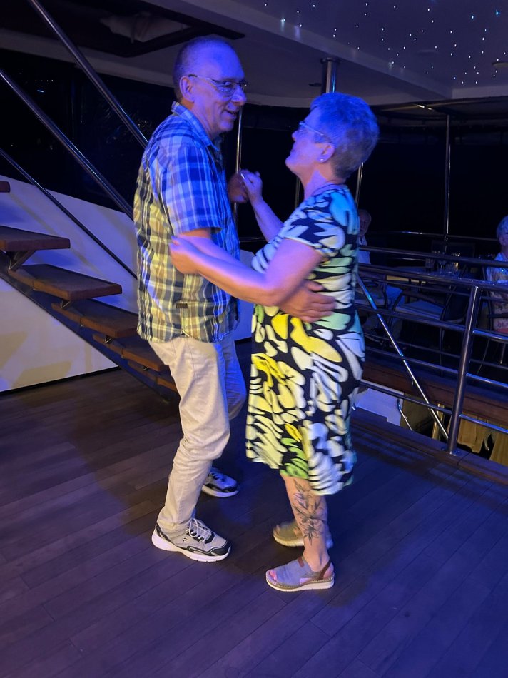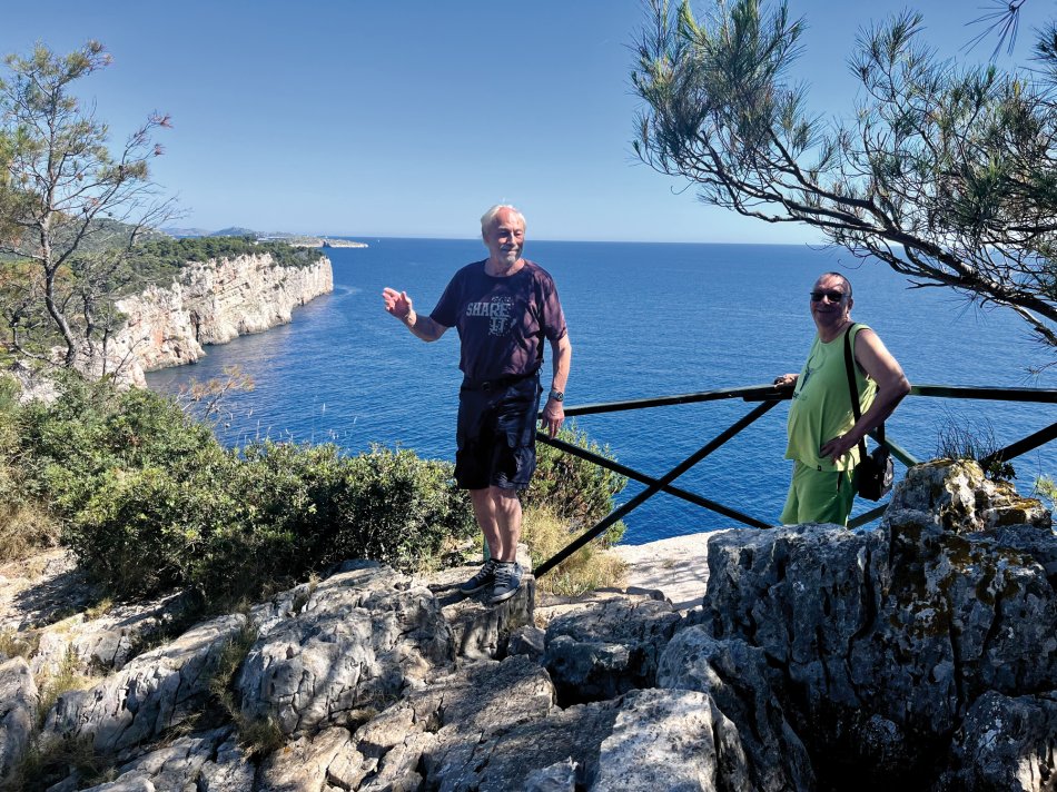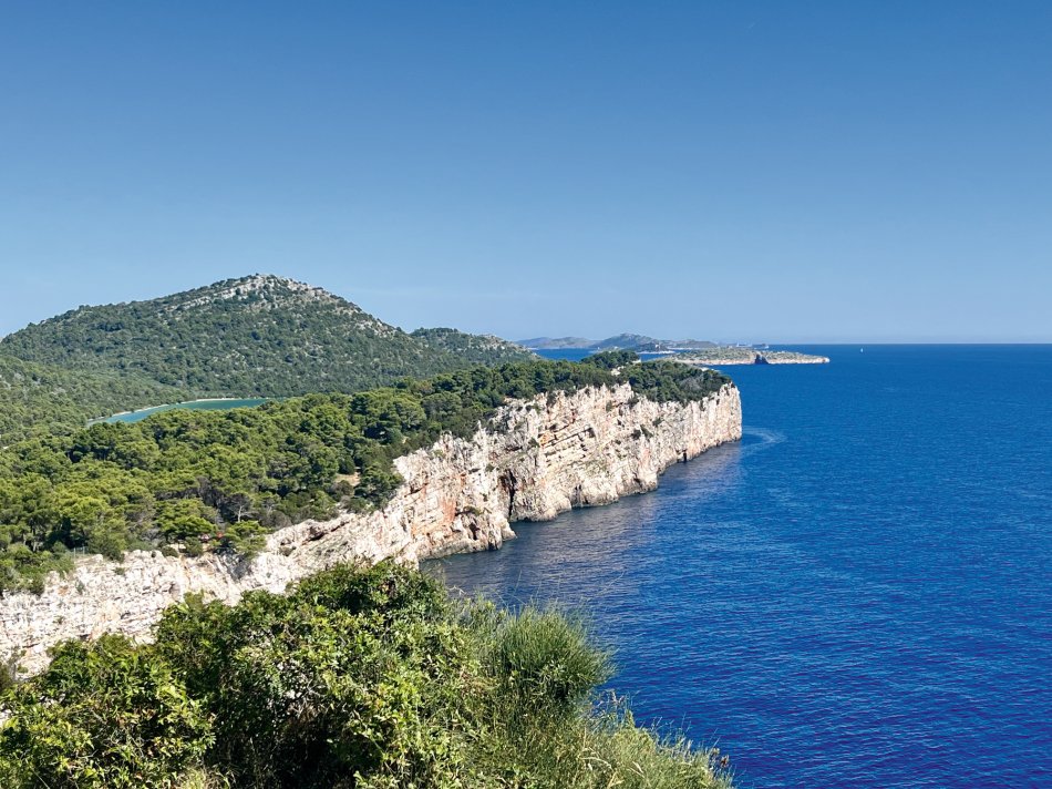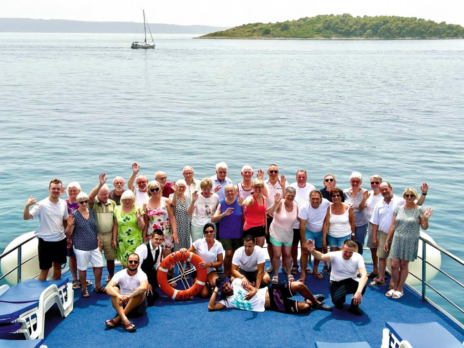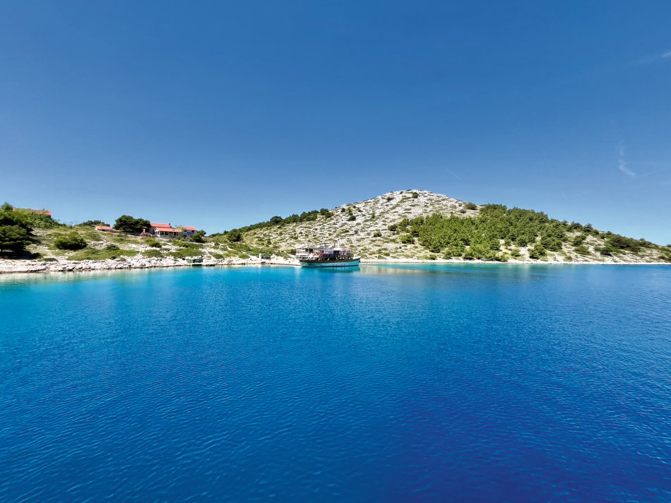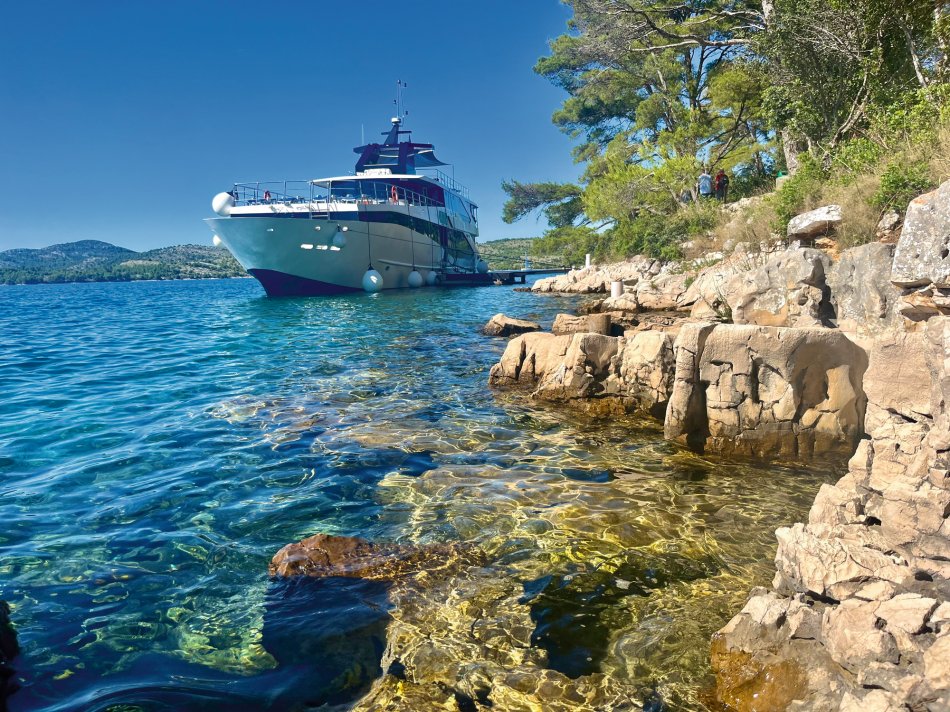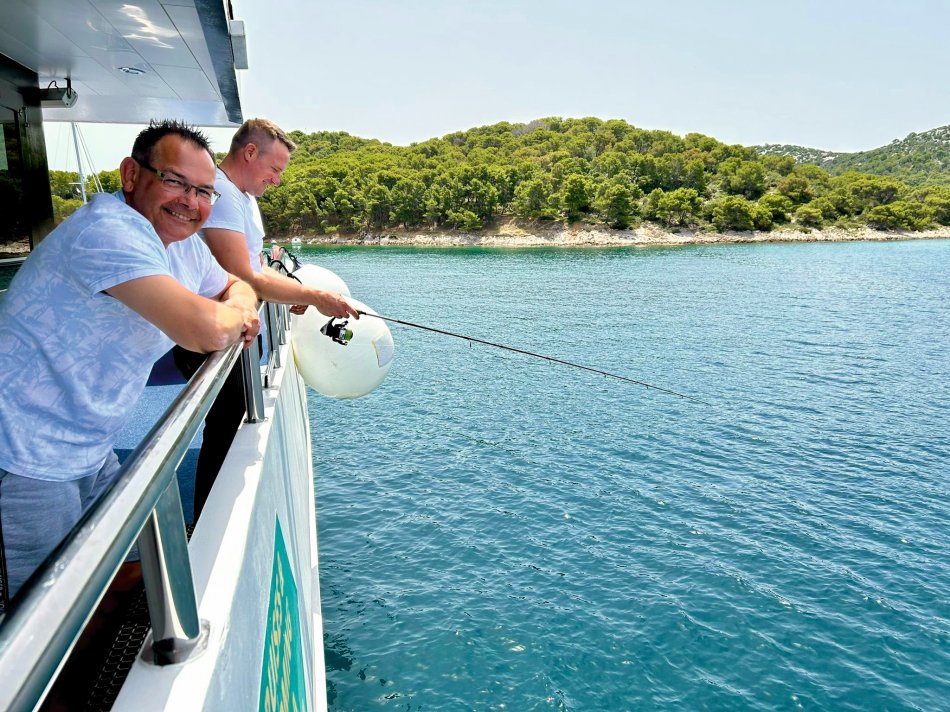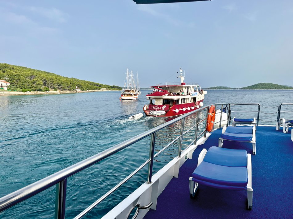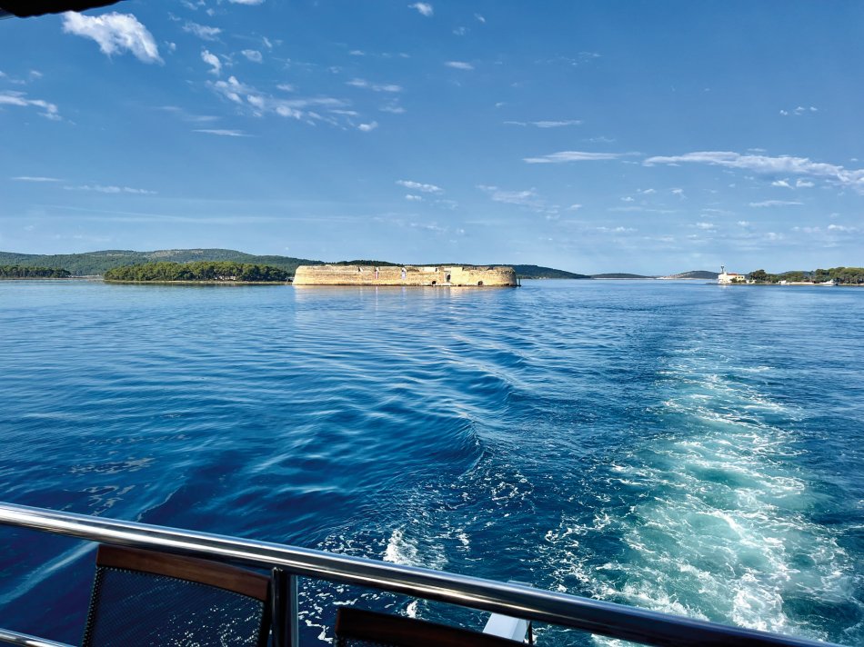 Gestern hatten wir wieder einen tollen und erlebnisreichen Tag! Bereits um 7:00 Uhr haben wir Sibenik verlassen und sind zurück durch den Kanal Sveti Ante und vorbei an der Seefestung Sveti Nikola in Richtung Nationalpark Kornati gefahren. Bei spiegelglatter See haben alle die Panoramafahrt durch die unzähligen Inseln und Riffe genossen. Kapitän Tomo hat ein traumhaftes Plätzchen für eine ausgiebige Badepause inmitten der Kornaten für uns gefunden. Glasklares Wasser, ohne Strömung lockten fast alle unsere Gäste hinein ins erfrischende Nass und der Getränkeservice tat sein Übriges. Zum Mittagessen ging es weiter in die Telascica Bucht, wo wir den gleichnamigen Naturpark besuchten. Wir spazierten hinauf auf die Steilklippen, die ein traumhaftes Panorama auf die bis zu 160 m hohen Felswände boten. Einige Gäste spazierten anschließend noch zum Salzsee Mir, der auf Grund seiner geringen Tiefe (6m) mit sehr warmem Wasser zu einen Bad einlud. Bei einem erfrischenden Radler genossen wir den Blick auf die schöne Telascica Bucht, bevor es um 16:45 Uhr weiter ging Richtung Sali. Wir passierten Proversa Mala - eine künstlich angelegte Fahrrinne, die lediglich 25 m breit und 4 m tief ist. Mit nur einem Meter Wasser unter dem Kiel hat uns Tomo sicher hindurch gefahren. In Sali angekommen, nutzen unsere Gäste noch die Möglichkeit, um durch das kleine Fischerörtchen zu spazieren, bevor wir zum Captain´s Dinner eingeladen waren. Nach einem sehr guten 4-Gang-Menü wurde das Tanzbein geschwungen. Sogar die Crew hat sich unserer Polonaise über das Schiff angeschlossen. Ein sehr lustiger und gelungener Abend, der erst weit nach Mitternacht endete.