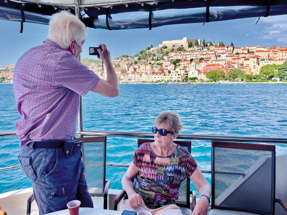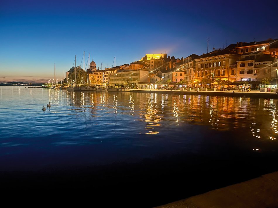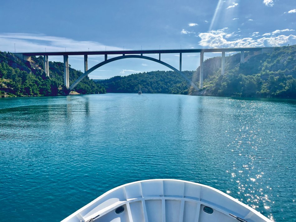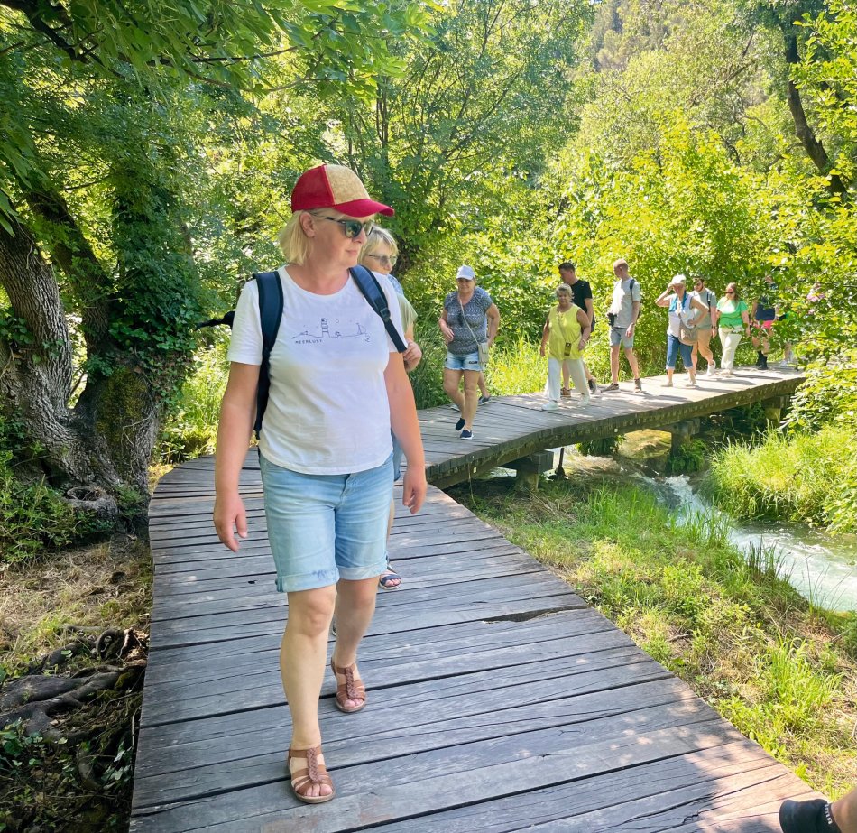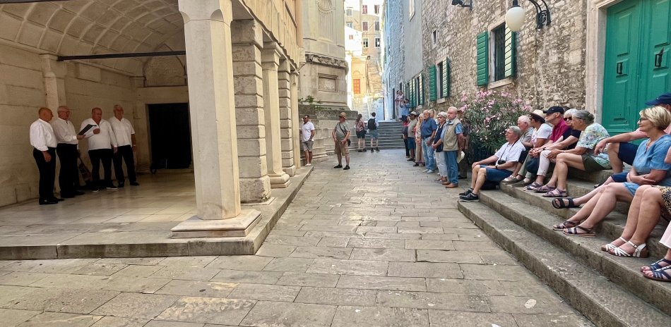 Bereits um 06:00 Uhr haben wir gestern früh Primosten verlassen und Kurs auf Skradin genommen. Pünktlich zum Frühstück passierten wir die imposante Seefestung Sveti Nikola, den Kanal von Sibenik mit der gleichnamigen Stadt und machten um 09:30 Uhr in Skradin fest. Hier wechselten wir von unserer Seagull auf ein Ausflugsboot, dass uns hinein in den Nationalpark Krka brachte. Es ist immer wieder ein Erlebnis, wenn man plötzlich vor dem mächtigen Skradinski Buk steht und zusieht, wie das Wasser über die Fallstufen hinabstürzt! Nach einem Gruppenfoto (gar nicht so leicht, bei den Besucherströmen) spazierten wir auf dem ca. 2 km langen Rundwanderweg über Holzstege, durch üppig grüne Natur, vorbei an kleinen Seen, in denen sich Fische, Frösche und Enten tummelten - immer begleitet von kleinen Wasserfällen und Bächlein - TRAUMHAFT! Um 13:30 Uhr waren wir zurück an Bord. Mittagessen und Kurs auf eine schöne Bucht für einen Badestopp. Weiter ging es in die Festungsstadt Sibenik, die wir um 17:15 erreichten. Hier erwartete uns Reiseleiterin Marica zu einem kurzweiligen Rundgang, durch idyllische Gässchen, vorbei an kleinen Kirchen, alles überwacht von mächtigen Festungsanlagen. Und da Time to Travel immer darauf bedacht ist, seinen Gästen etwas Mee(h)r zu bieten, haben wir unsere lieben Gäste mit einer Klapa überrascht. Marin und seien 3 Freunde sangen für unsere Gäste in toller Atmosphäre vier traditionelle kroatische Volksliedern, a cappella natürlich! Die Überraschung ist definitiv gelungen, alle waren begeistert von dem vierstimmigen Männerchor! Der Rast des Tages stand zur freien Verfügung. Einige Gäste besuchten die Festung über der Stadt, andere spazierten durch das Gewirr an Gassen, gespickt mit kleinen, idyllischen Konobas und Restaurants. An Bord erklangen zu später Stunde noch die Gläser auf einen erlebnisreichen Tag, der hinter uns lag.