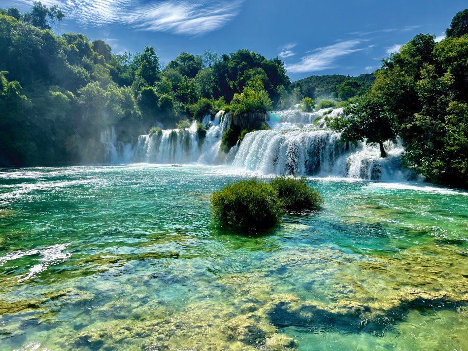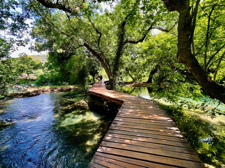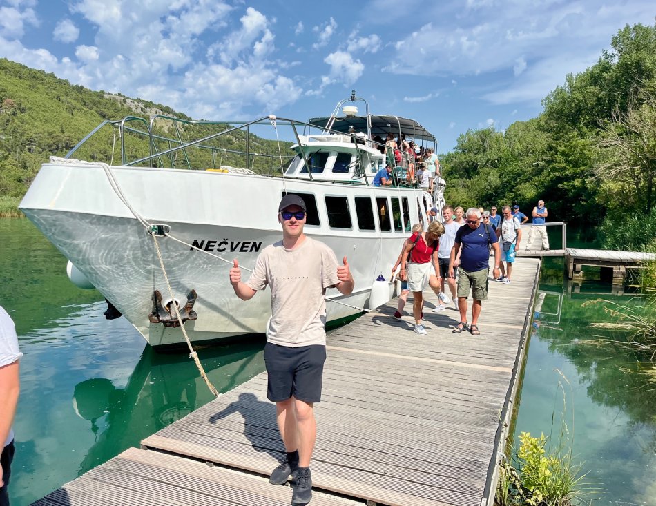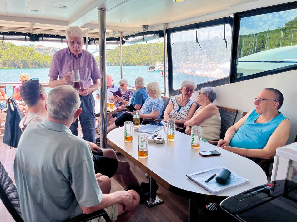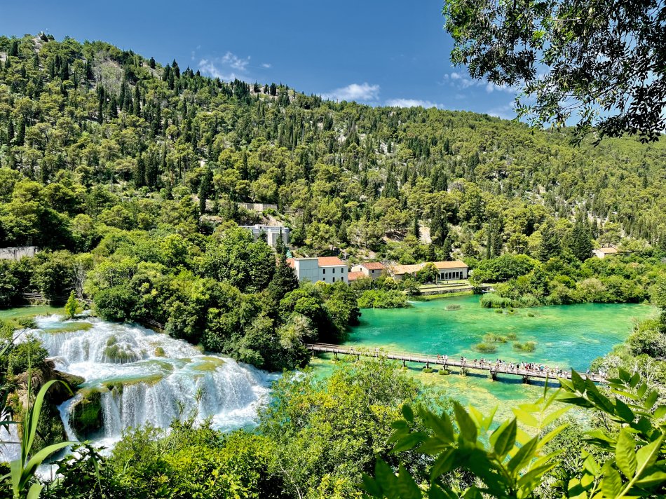 Bereits um 06:00 Uhr haben wir gestern früh Primosten verlassen und Kurs auf Skradin genommen. Pünktlich zum Frühstück passierten wir die imposante Seefestung Sveti Nikola, den Kanal von Sibenik mit der gleichnamigen Stadt und machten um 09:30 Uhr in Skradin fest. Hier wechselten wir von unserer Seagull auf ein Ausflugsboot, dass uns hinein in den Nationalpark Krka brachte. Es ist immer wieder ein Erlebnis, wenn man plötzlich vor dem mächtigen Skradinski Buk steht und zusieht, wie das Wasser über die Fallstufen hinabstürzt! Nach einem Gruppenfoto (gar nicht so leicht, bei den Besucherströmen) spazierten wir auf dem ca. 2 km langen Rundwanderweg über Holzstege, durch üppig grüne Natur, vorbei an kleinen Seen, in denen sich Fische, Frösche und Enten tummelten - immer begleitet von kleinen Wasserfällen und Bächlein - TRAUMHAFT! Um 13:30 Uhr waren wir zurück an Bord. Mittagessen und Kurs auf eine schöne Bucht für einen Badestopp. Weiter ging es in die Festungsstadt Sibenik, die wir um 17:15 erreichten. Hier erwartete uns Reiseleiterin Marica zu einem kurzweiligen Rundgang, durch idyllische Gässchen, vorbei an kleinen Kirchen, alles überwacht von mächtigen Festungsanlagen. Und da Time to Travel immer darauf bedacht ist, seinen Gästen etwas Mee(h)r zu bieten, haben wir unsere lieben Gäste mit einer Klapa überrascht. Marin und seien 3 Freunde sangen für unsere Gäste in toller Atmosphäre vier traditionelle kroatische Volksliedern, a cappella natürlich! Die Überraschung ist definitiv gelungen, alle waren begeistert von dem vierstimmigen Männerchor! Der Rast des Tages stand zur freien Verfügung. Einige Gäste besuchten die Festung über der Stadt, andere spazierten durch das Gewirr an Gassen, gespickt mit kleinen, idyllischen Konobas und Restaurants. An Bord erklangen zu später Stunde noch die Gläser auf einen erlebnisreichen Tag, der hinter uns lag.