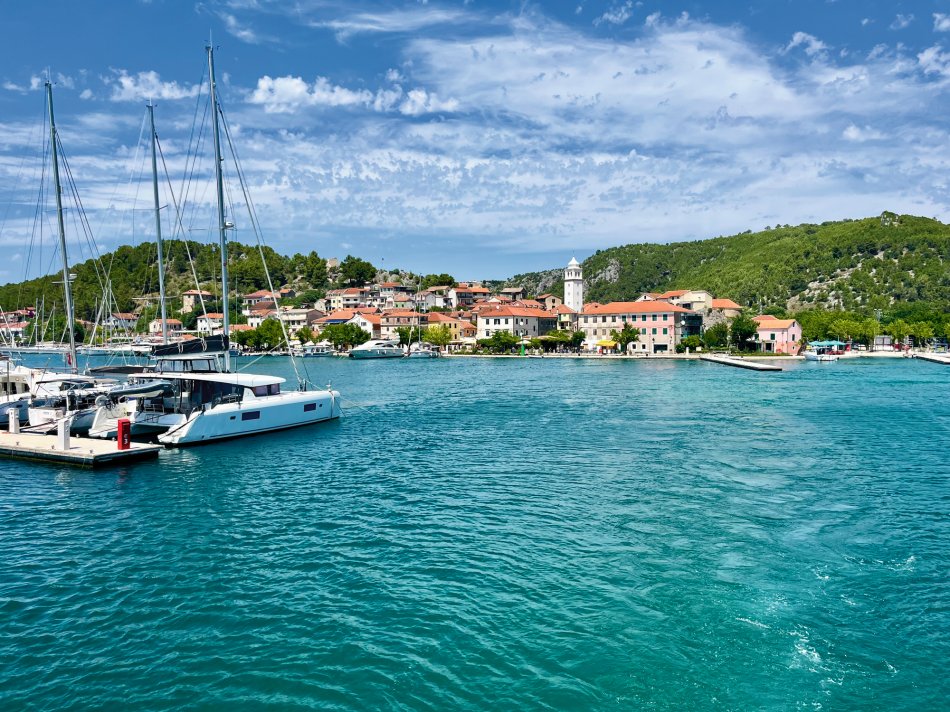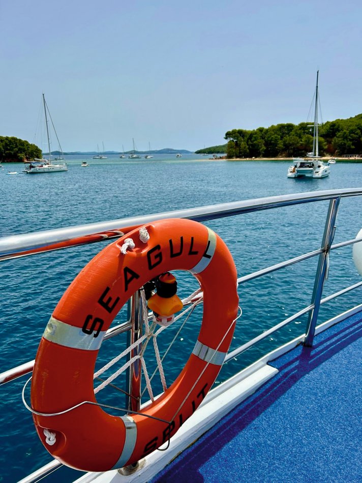 Der frühe Vogel fängt den Wurm…und so hieß es gestern bereits um 02:25 Uhr Busabfahrt ab Halle ZOB mit Ziel Flughafen Berlin-Brandenburg. Pünktlicher Abflug um 07:25 Uhr nach Split, wo wir von strahlendem Sonnenschein und unserem Transferbus mit Busfahrer Jakov erwartet wurden. Kurze Fahrt zu Hafen von Split. Die Zeit bis zum Bording haben wir bei erfrischenden Getränken im Bistro Topolino mit Blick auf den geschäftigen Hafen überbrückt. Um 11:00 Uhr hieß uns Kapitän Tomo und seine Crew herzlich an Bord Willkommen und unsere MS Seagull stach direkt in See und nahm Kurs auf Trogir. Nach 1,5 Stunden Fahrt auf der spiegelglatten See haben wi8r nur kurz in Trogir angedockt, um die restlichen Gäste, die aus Düsseldorf angereist sind, an Bord zu nehmen. Nun waren wir vollzählig! Einem sehr guten Mittagessen an Bord folgt die Fahrt nach Primosten, wo wir gegen 16:30 Uhr ankamen. Ein super Liegeplatz mit Blick auf die Altstadt, direkt neben einem herrlichen Strand – einige Gäste nutzten direkt noch die Möglichkeit zu einer Abkühlung in der türkisfarbenen und glasklaren Adria. Der Rest des Abend stand zur freien Verfügung. Public Viewing war angesagt, schließlich spielte die kroatische Fußballmannschaft gestern schließlich gegen die Spanier. Naja….das Ausgang des Spiels war für die Kroatienfans leider nicht so glücklich. Rings um das kleine Hafenbecken herum warteten zahlreiche Konobas und Restaurants mit Grillspezialitäten und fangfrischem Fisch. Hier konnten man den ersten Urlaubsabend herrlich ausklingen lassen.