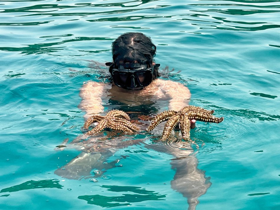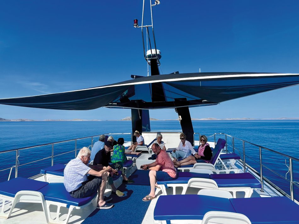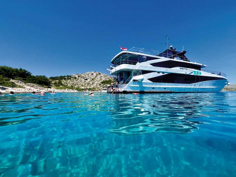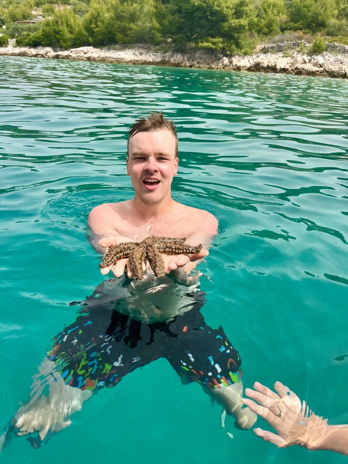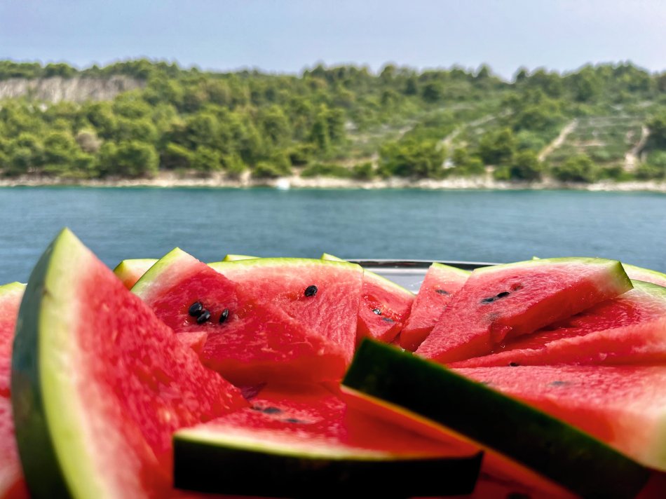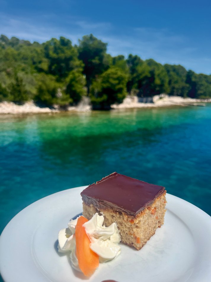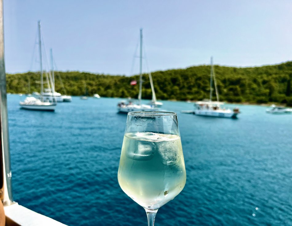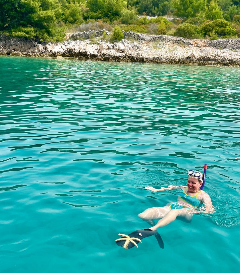 hat wieder eine herrliche Bucht für uns gefunden, wo wir ausgiebig Zeit hatten, um in die glasklare Adria einzutauchen. Bei spiegelglatter See haben wir auch heute noch mal einen Getränkeservice im Wasser angeboten. Schnorcheln, vom Schiff aus ins Wasser springen, sich auf den Schwimmnudeln treiben lassen und die ein oder andere Runde um´s Schiff drehen - ein toller Badestopp! Ein letztes vorzügliches Mittagessen