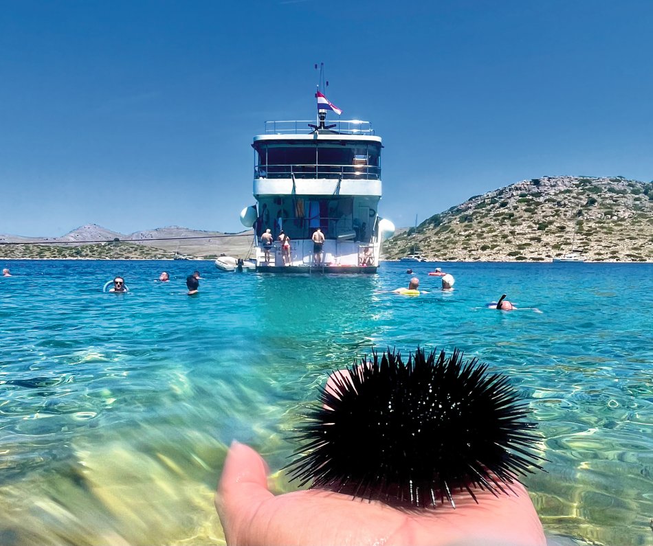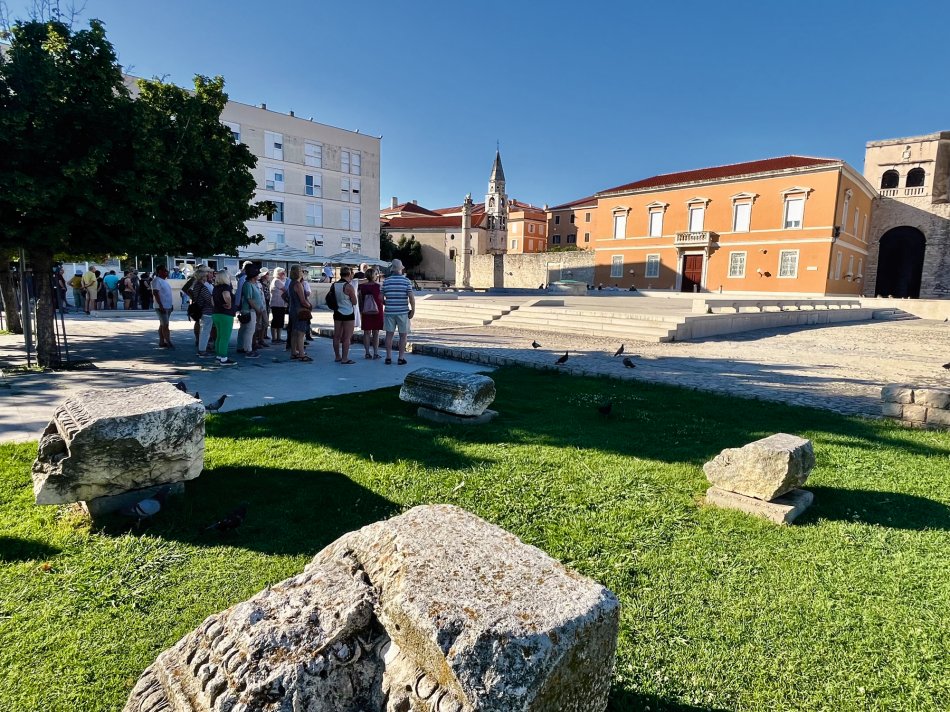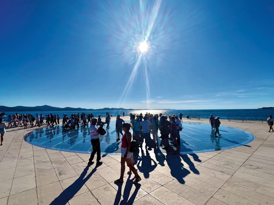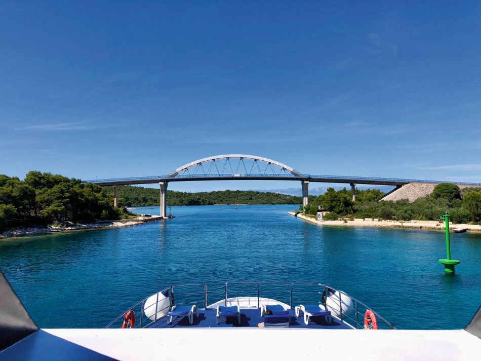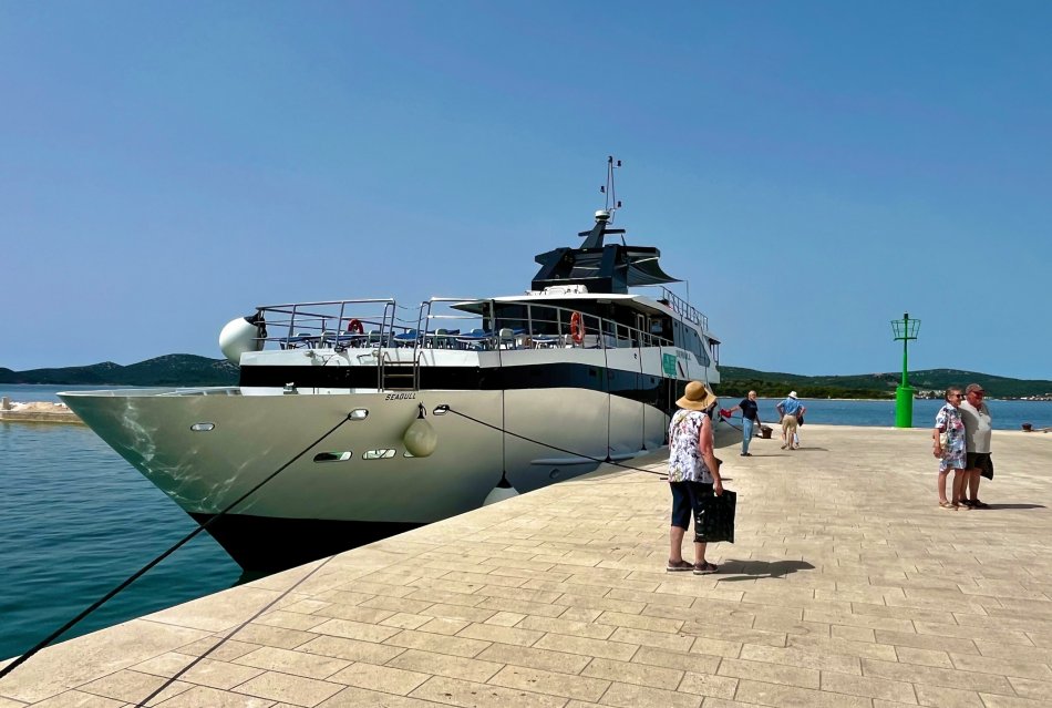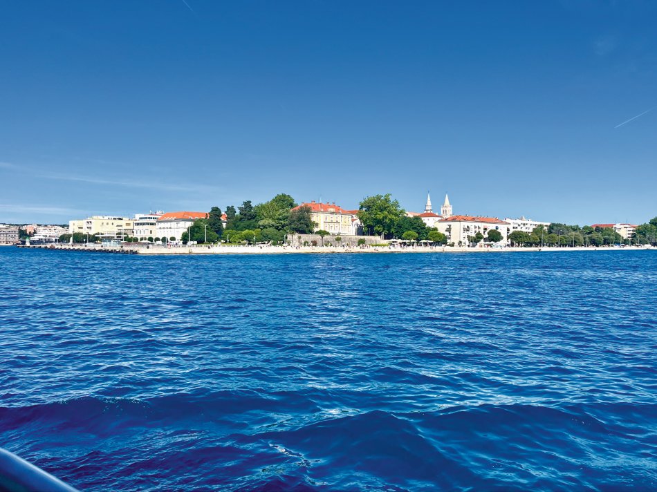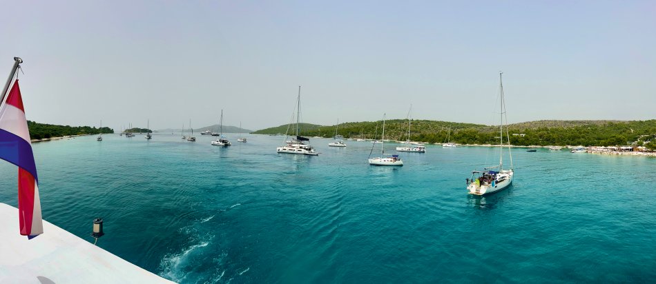 Nach unserer durchtanzten Nacht haben wir es gestern ruhig angehen lassen und sind um 09:00 Uhr gemütlich in Sali gestartet. Relaxen und Entspannen war angesagt, auf unserem Weg in eine tolle Bucht zu einer ausgiebigen Badepause. Wie jeden Tag erwartete uns glasklares Wasser, bei dem man bis auf den Meeresgrund schauen konnte und Seegurken, Fischschwärme und Seesterne betrachten konnte. Nach dem Mittagessen nahmen wir Kurs auf Zadar. Wir passierten die Wasserstraße Zdrilu, die die Inseln Pasman und Uglijan trennt und von der Zdrelac Brücke überspannt wurde. Um 17:15 Uhr erreichten das trubelige Zadar und wurden von Reiseleitern Tea zum unterhaltsamen und informativen Rundgang durch den Altstadtkomplex erwartet. Es ging auf der Stadtmauer entlang bis zum Platz "Gruß an die Sonne" mit der danebenliegenden Meeresorgel. Zahlreiche Touristen lauschten den eigenwilligen Klängen, die das Meer und der Wind spielten. Vorbei am Forum und der "Kuchenkirche" empfahlen wir (wie immer) die beste Eisdiele der Stadt, wo sich alle unsere Gäste die ein oder andere Kugel gönnten. Anschließend blieb Zeit zum Bummel, Shoppen und natürlich zur Einkehr in eines der zahlreichen Restaurants. Unserer Empfehlung für eine urige, von üppigem chilenischem Jasmin überdachten Konoba sind viele unserer Gäste gefolgt. Zu späterer Stunde hat der Abend dann wieder in der Lounge an Deck bei spritzigem Wein, erfrischendem Bier und dem ein oder anderen Pelincovac einen schönen Abschluss gefunden.