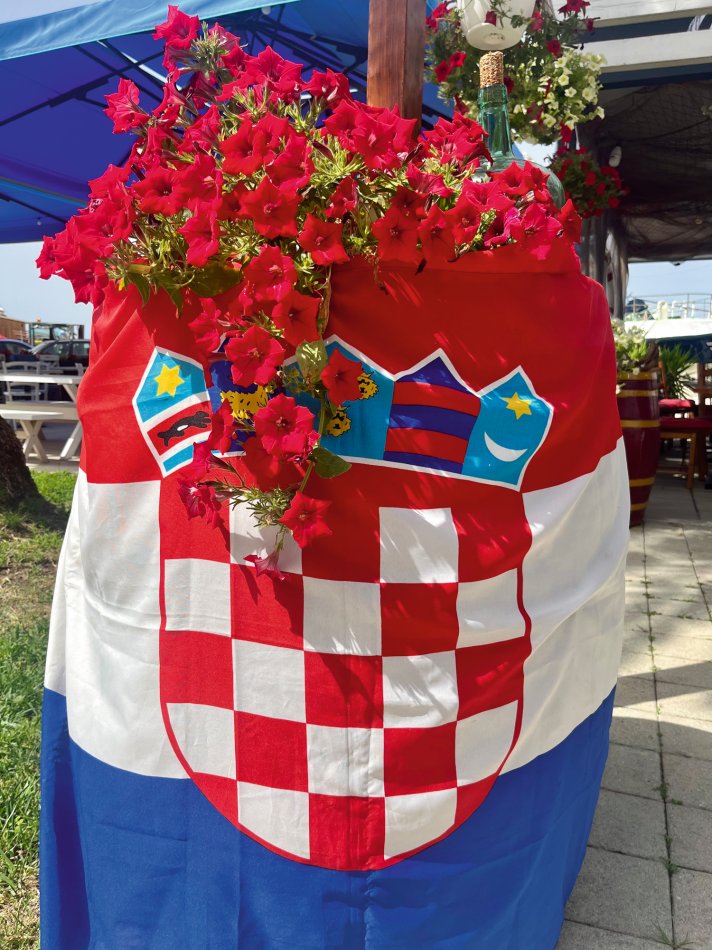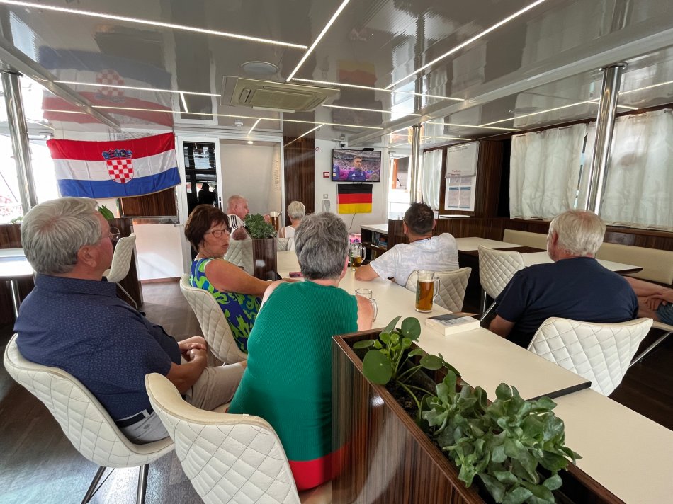 Nach dem Trubel in Zadar haben wir die hübsche Stadt gestern um 08:00 Uhr verlassen und sind entlang der Küste Richtung Zlarin gestartet. Unterwegs haben wir spontan einen kleinen Besucherstopp in Biograd na Moru eingelegt. Unsere Gäste hatten 1,5 Stunden Zeit, um die "Weiße Stadt am Meer" zu erkunden. Ein nettes Städtchen mit großem Yachthafen und toller Promenade, die gespickt ist mit zahlreichen Geschäften, Cafés und Restaurants. Um 11:00 Uhr ging es weiter zu einer hübschen Badestelle, in der zahlreiche kleine Privatbötchen vor Anker lagen. Zum Mittagessen setzten wir unsere Fahrt Richtung Zlarin fort. 15:00 Uhr war Anpfiff des Spiels Kroatien gegen Albanien. Alle fieberten wir vor dem TV im Salon mit der kroatischen Mannschaft mit, die sich wacker geschlagen hat. Leider ein Unentschieden 2:2. Vor Zlarin haben wir noch einmal geankert und sind ins türkisfarbene Nass eingetaucht, bevor wir im Korallenstädtchen festmachten. Public Viewing an Bord - unsere Daumen waren gedrückt für die Deutsche Mannschaft! Und geholfen hat´s 2:0 für Deutschland! Anschließend nutzten alle Gäste die Möglichkeit, das kleine Fischerdorf Zlarin zu erkunden. Eine hübsches Hafenbecken, in dem sich kleine Fischerbötchen aneinanderschmiegten, umgeben von einer Promenade, gespickt mit idyllischen Konobas, die Kirche Velika Gospa aus dem 17. Jahrhundert und das Korallenmuseum warteten auf uns - war doch Zlarin seit dem 14. Jahrhundert auf die Korallenverarbeitung spezialisiert. Auch heute noch kann man in kleinen Läden den geschickten Händen über die Schulter blicken, die die Korallen zu edlen Schmuckstücken verarbeiten. Zurück an Bord ließen wir den Abend bei erfrischenden Getränken aus klingen.