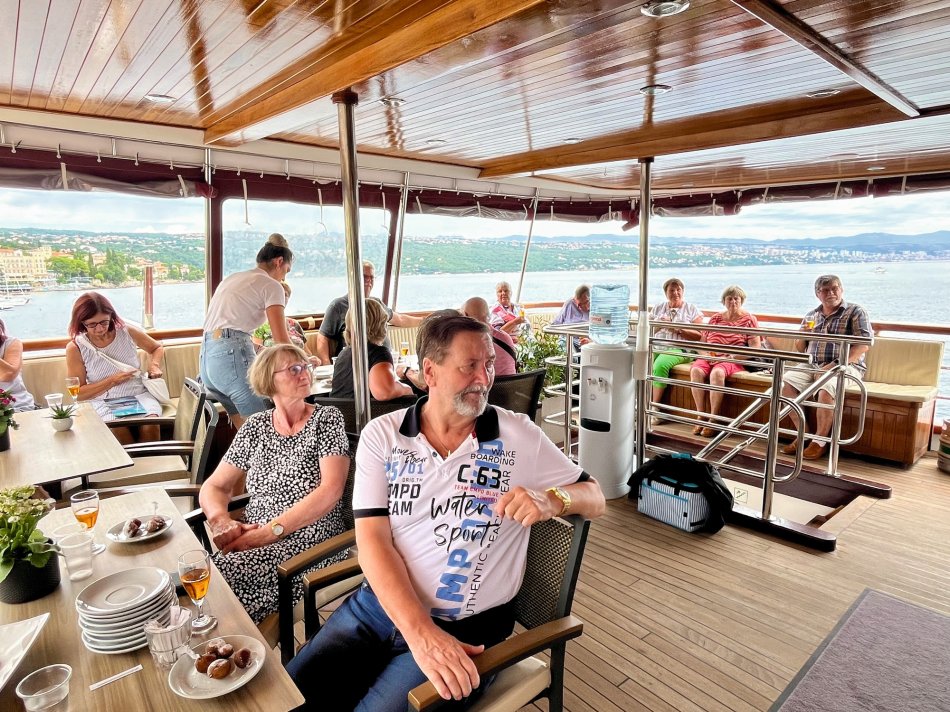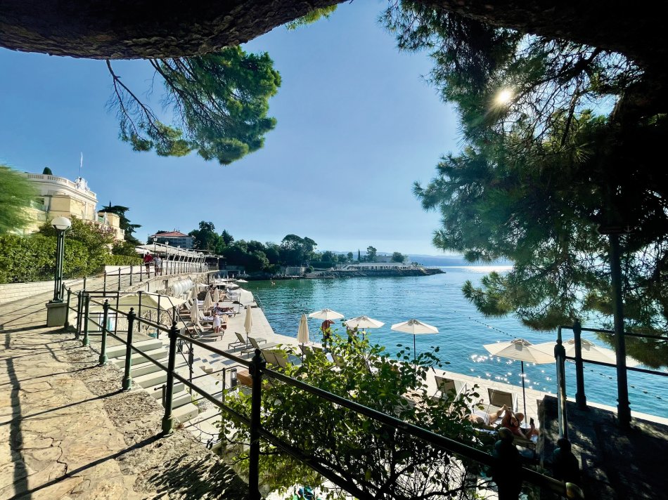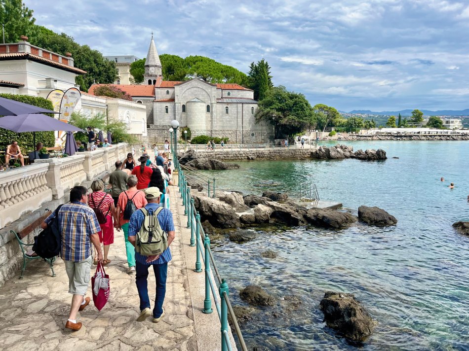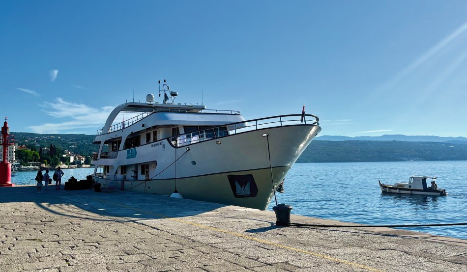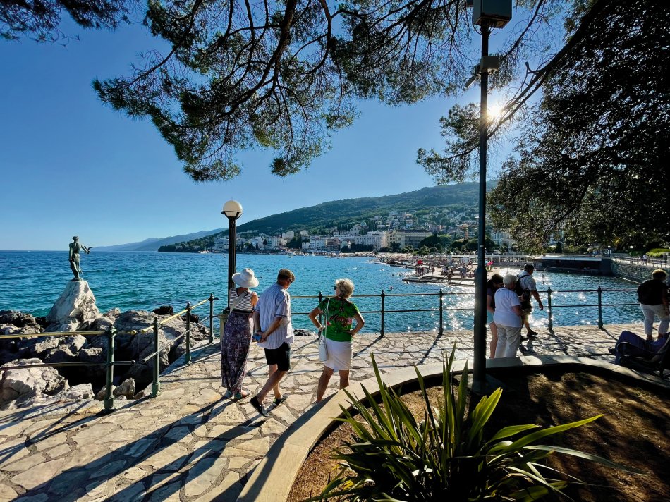 Nach einer lauen Sommernacht haben wir Cres gestern früh um 07:30 Uhr verlassen und sind entlang der Insel gen Norden gefahren. Für den letzten Badestopp hat sich Kapitän Josip wirklich noch einmal selbst übertroffen mit der Bucht Filozici. Hier erwarteten uns ein toller Strand mit weißen Kieselsteinen und kleinen Höhlen, in die man hinein schwimmen konnte. Unsere Gäste waren begeistert und haben die letzte Möglichkeit ausgiebig genutzt, um direkt vom Schiff aus in der kristallklaren Adria zu schwimmen. Während des Mittagessens fuhren wir weiter Richtung Opatija, wo bald schon die Riviera in Sicht kam. Um 17:30 Uhr erwartete Reisleiterin Nancy unsere Gäste zu einem gemütlichen Spaziergang durch den mondänen Urlaubsort. Prachtvolle Villen, traumhafte Parkanlagen, die Kirche Sveti Jakov und das Mädchen mit der Möwe wollten entdeckt werden. Anschließend blieb Zeit für ein Abendessen und einen ausgiebigen Spaziergang entlang des Lungomares. Opatija – ein schönes Fleckchen Erde!