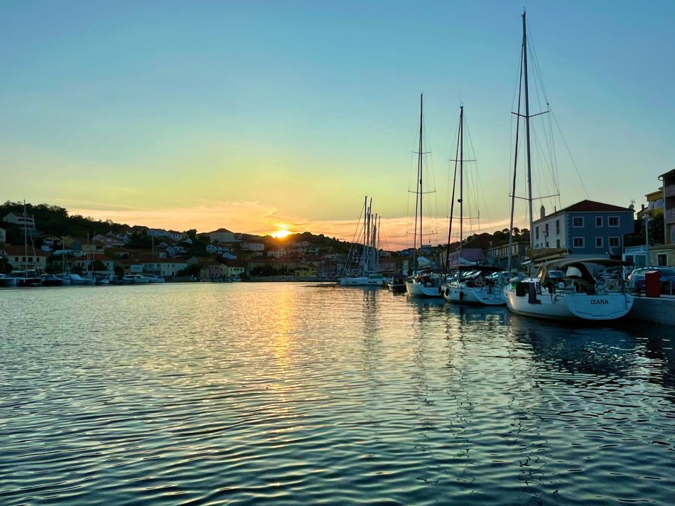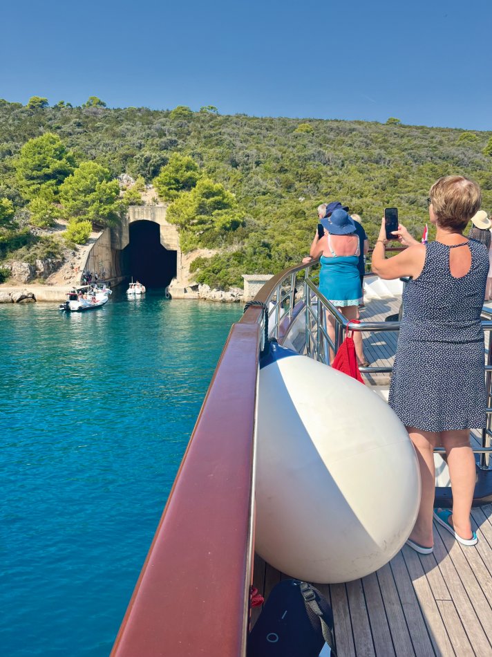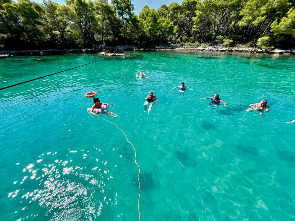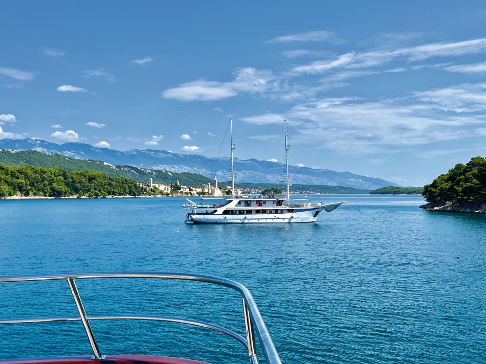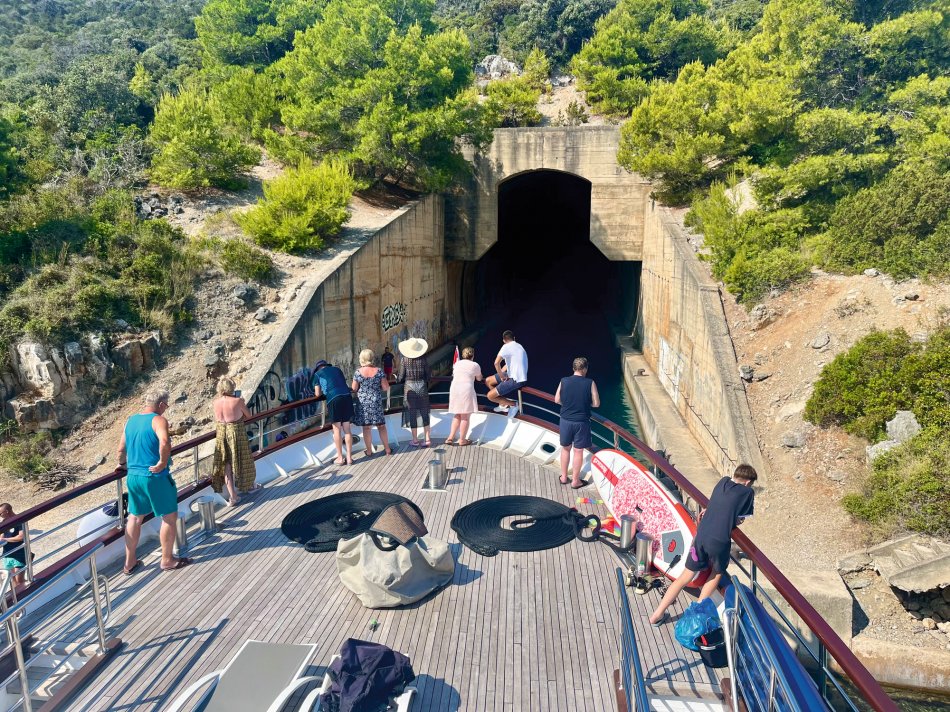 Nach einer stimmungsvollen Nacht haben wir das kleine Örtchen Sali gestern früh um 08:00 Uhr verlassen und Kurs in Richtung Norden genommen. Unser erster Besuch galt einem U-Boot-Bunker aus jugoslawischen Zeiten, der sich im Norden von Dugi Otok befindet. Kapitän Josip hat uns so nah, wie möglich an den Bunkereingang gebracht. Mit nur einem Meter von der Steuerbord- und Backbordseite zur Mauer sorgte das knifflige Manöver für Erstaunen und dem Zücken der Kameras bei den Passanten. 15 Minuten später erreichten wir unsere schöne Bucht an der Insel Zverinac und hatten ausgiebig Zeit zum Schiffen. Den Nachmittag verbrachten wir relaxt an Bord auf unserem Weg zur Insel Losinj. Ein zweiter Badestopp folgte am kleinen Inselchen Koludarc, bevor wir gegen 18:15 Uhr in der Augustusbucht von Mali Losinj festmachten. Zeit zum Erkunden des kleinen Städtchens mit toller Promenade, die gespickt ist mit hübschen Geschäften und einer Vielzahl an Restaurants. Auf der Bühne am Hauptplatz spielte auch gestern wieder eine Liveband ein Repertoir aus internationaler und kroatischer Jazz-Musik. So klang der Abend gemütlich bei dem ein oder anderen Getränk gemütlich aus.