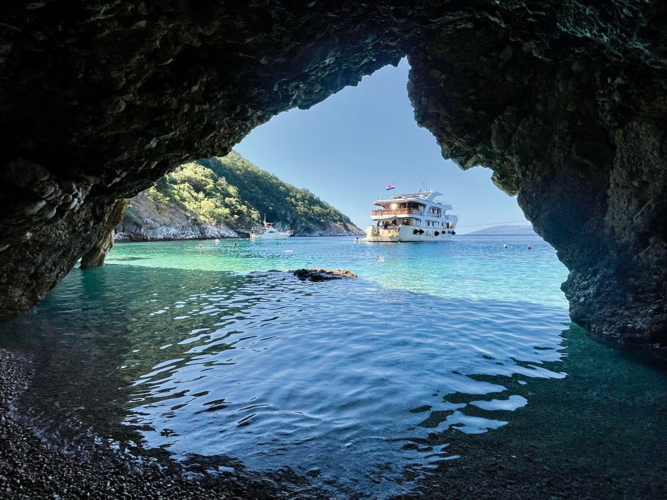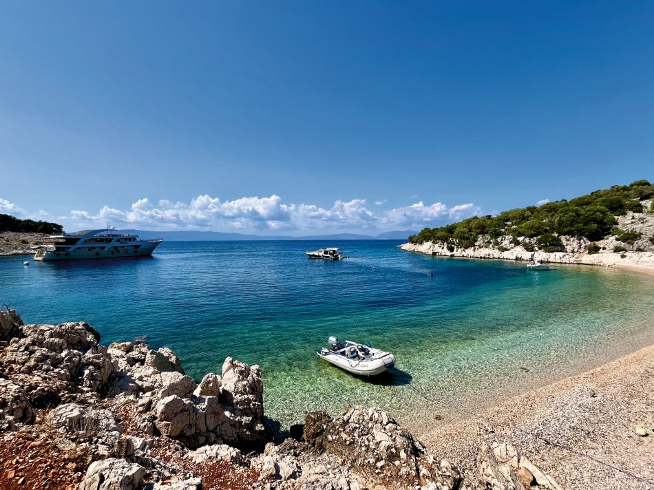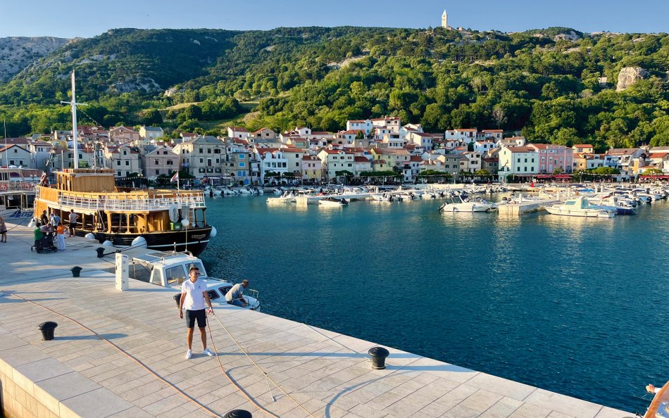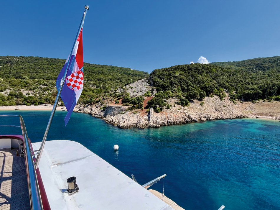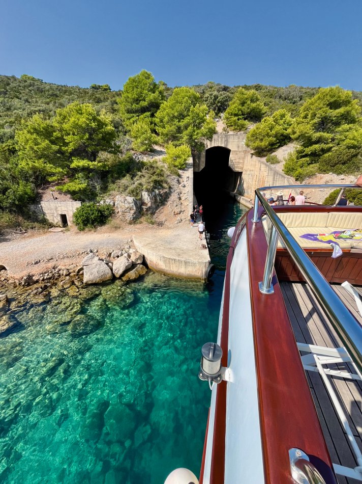 Nach einer stimmungsvollen Nacht haben wir das kleine Örtchen Sali gestern früh um 08:00 Uhr verlassen und Kurs in Richtung Norden genommen. Unser erster Besuch galt einem U-Boot-Bunker aus jugoslawischen Zeiten, der sich im Norden von Dugi Otok befindet. Kapitän Josip hat uns so nah, wie möglich an den Bunkereingang gebracht. Mit nur einem Meter von der Steuerbord- und Backbordseite zur Mauer sorgte das knifflige Manöver für Erstaunen und dem Zücken der Kameras bei den Passanten. 15 Minuten später erreichten wir unsere schöne Bucht an der Insel Zverinac und hatten ausgiebig Zeit zum Schiffen. Den Nachmittag verbrachten wir relaxt an Bord auf unserem Weg zur Insel Losinj. Ein zweiter Badestopp folgte am kleinen Inselchen Koludarc, bevor wir gegen 18:15 Uhr in der Augustusbucht von Mali Losinj festmachten. Zeit zum Erkunden des kleinen Städtchens mit toller Promenade, die gespickt ist mit hübschen Geschäften und einer Vielzahl an Restaurants. Auf der Bühne am Hauptplatz spielte auch gestern wieder eine Liveband ein Repertoir aus internationaler und kroatischer Jazz-Musik. So klang der Abend gemütlich bei dem ein oder anderen Getränk gemütlich aus.