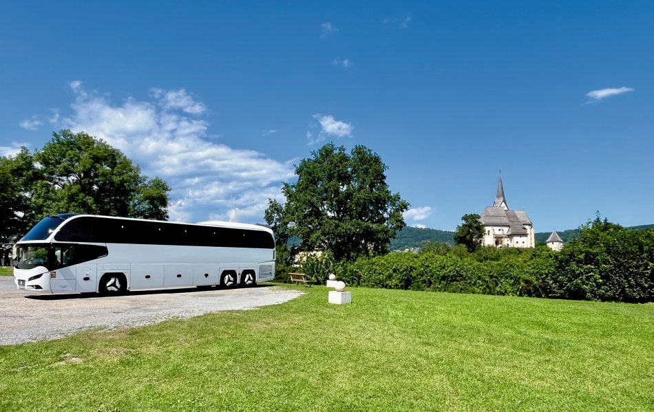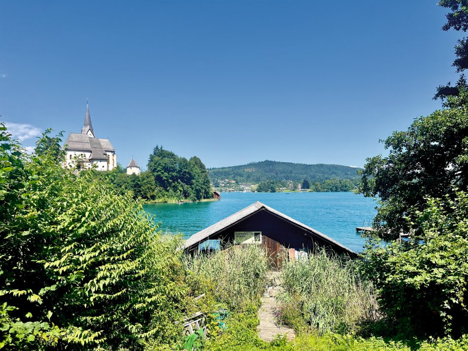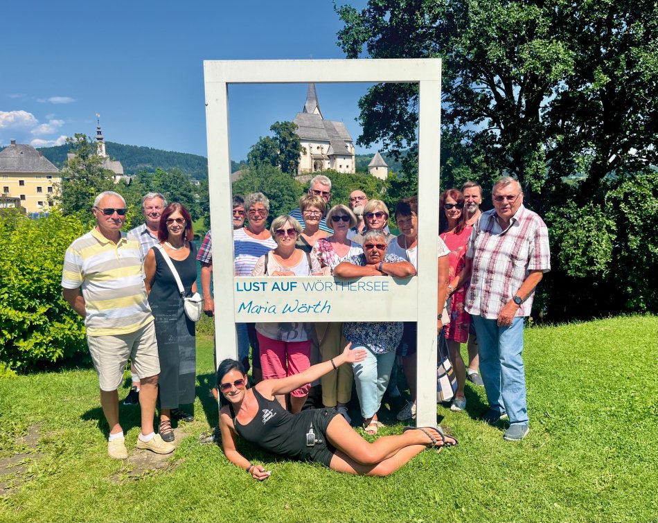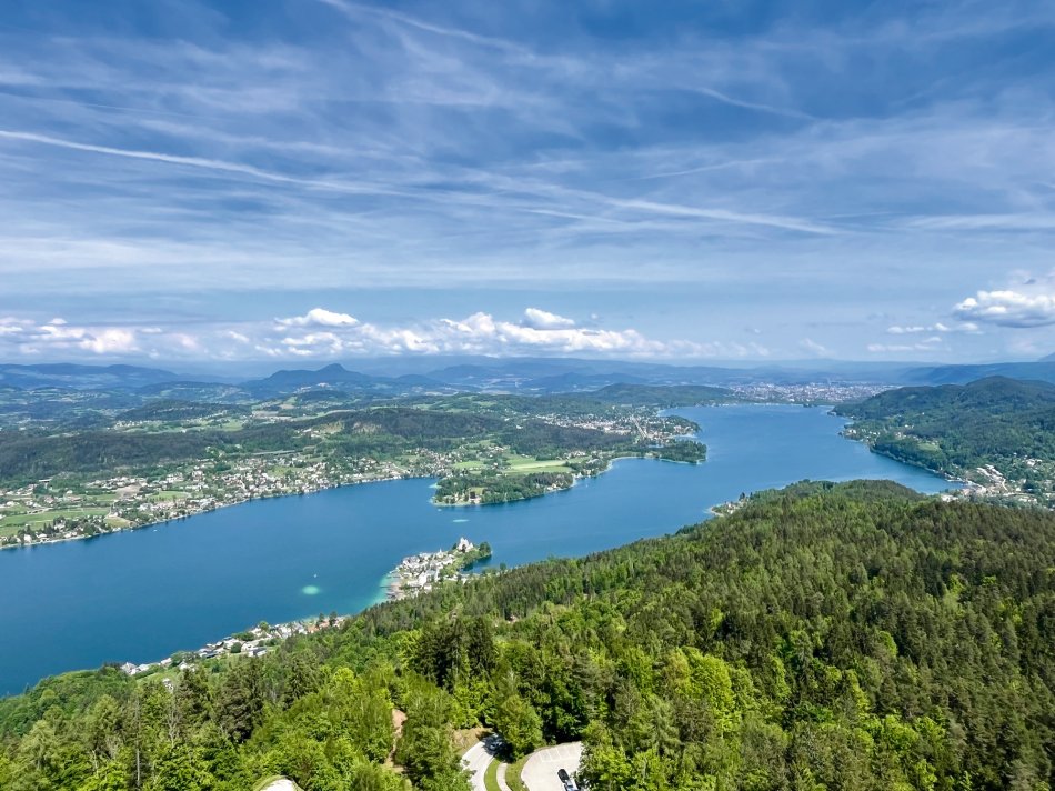 Da am Karawankentunnel Stau voraus gesagt wurde, sind wir über den steilen und kurvenreichen Loiblpass gefahren und haben so die Möglichkeit genutzt um gleich noch dem Wörthersee einen Besuch abzusatten. Mittagspause auf der kleinen Halbinsel Maria Wörth bei heißen Wienern, Wein und Bier, gefolgt von einem Spahziergang zum berühmten Kirchlein. Anschließend ging es noch 9 km weiter hinauf zum Pyramidenkogel. Bei herrlichem Sonnenschein und guter Sicht war der Ausblick auf das Kärntener Begrlang und den zu Füßen liegenden Wörthersee wahrlich atemberaubend. Kurze Einkehr zum Eiskaffee, bevor wir weiter in unser Hotel nach Altenmarkt fuhren. Herzliche Begrüßung durch den Wirt Franz, der uns zum Abendessen erwartete. Der Tag klang auf der gemütliche Terrasse des Hauses entspannt aus.