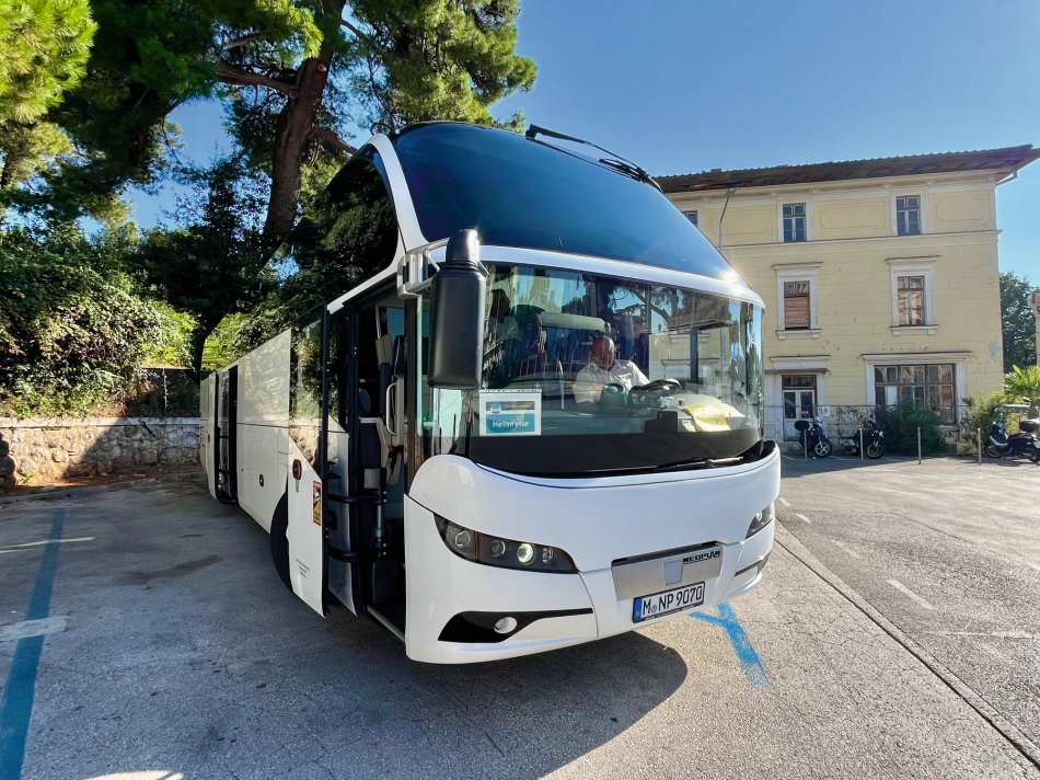 Nach dem Frühstück im Hotel ging es gestern um 09:00 Uhr weiter Richtung Kroatien. 11:45 haben wir Opatija erreicht und wurden herzlich an Bord von MS Olmissum begrüßt. Pünktlich zum Mittagessen ging es dann los – Kurs auf die Insel Krk. Kurz vor Stara Baska haben wir am wunderschönen Strand von Nagorka eine erste tolle Badepause eingelegt. Herrlich erfrischt sind wir gegen 19:00 Uhr in Baska angekommen. In dem beliebten Urlaubsort war ganz schön was los – Fischerfest von Freitag bis Sonntag. Wir sind hinauf spaziert zur Kirche Sveti Ivan, hoch über der Stadt gelegen. Von hier bot sich eine traumhafter Panoramablick über Baska und die vorgelagerten Inseln. Zurück im Örtchen klang der Abend in einem der zahlreichen Restaurants, begleitet von Livemusik, aus. Das Feuerwerk anlässlich des Fischerfestes war nochmal ein krönender Abschluss eines schönen Tages!