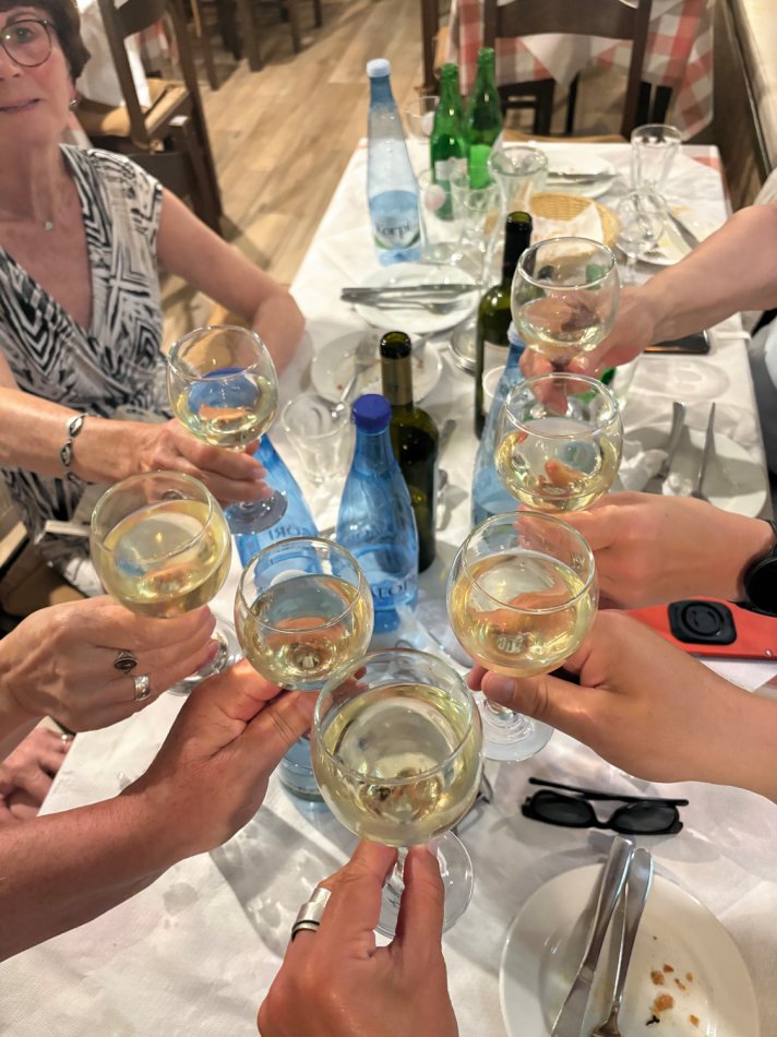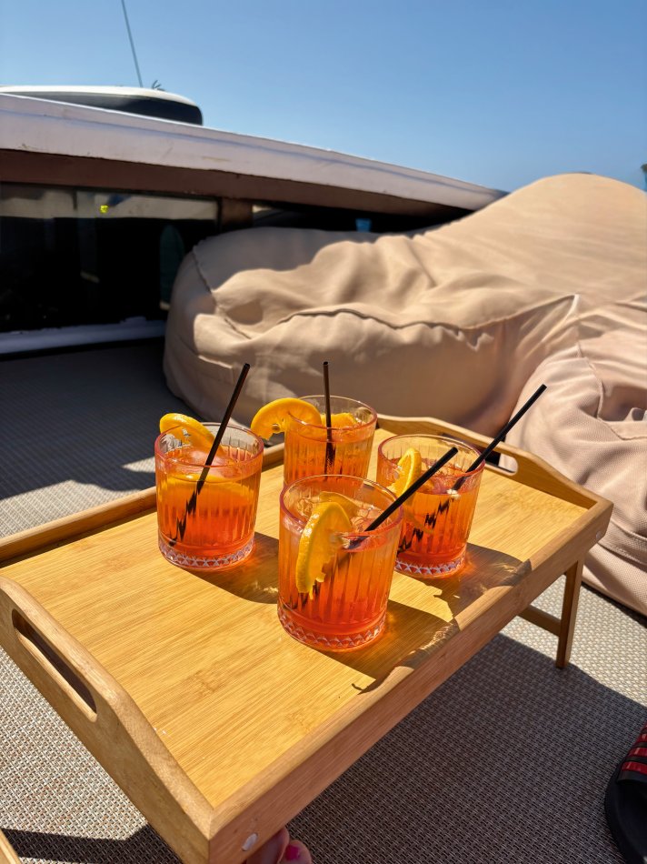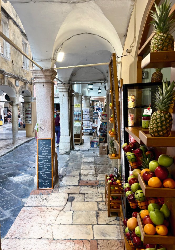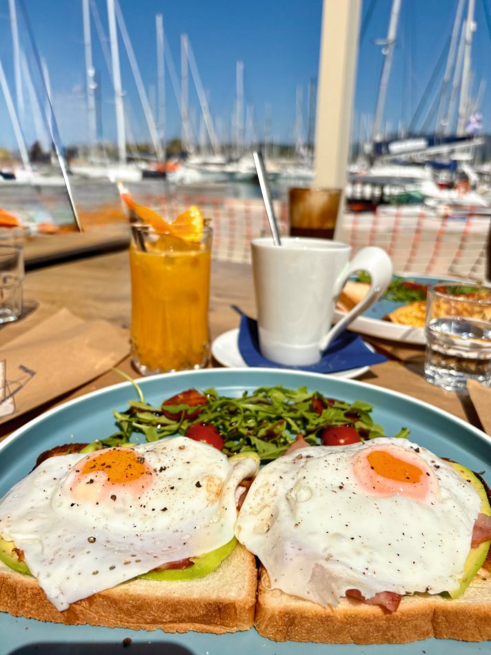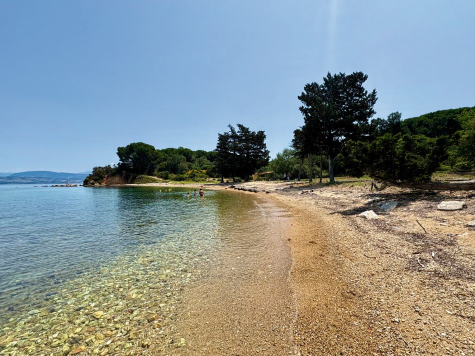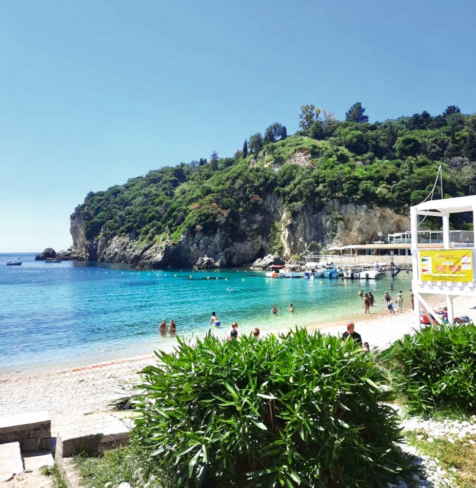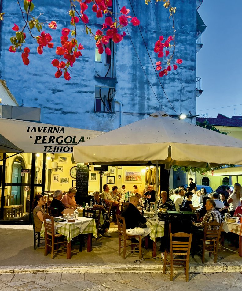 Letzter Kreuzfahrttag ☹ Während des Frühstücks haben wir die Sonne und den Blick auf das erwachende Syvota genossen. Dann nahmen wir Kurs zurück nach Korfu. Herrlich entspannt war die Überfahrt. Wir dösten in der Sonne, plauderten bei einem Aperol Spritz und erreichten das, der Insel Korfu vorgelagerte Inselchen Vido, wo der Anker ausgelegt wurde. Hinein ging es ein letztes (aber ausgiebiges) Mal ins kühle Nass. Mit dem SUP und dem Kajak erkundeten wir den Strand, der auch anderen kleinen Segelbooten und Katamaranen als Badestelle diente. Glasklares Wasser, bei dem man bis auf den Grund schauen konnte, erwartete uns. Ein letztes Mittagessen, bevor es langsam ans Kofferpacken ging. Wir genossen die Überfahrt zum Altstadthafen von Korfu, wo uns Reiseleitung Carola und Stephanus erwarteten, um mit uns durch die Stadt zu ziehen. Der entspannte Rundgang führte durch die zahlreichen Gässchen, die gespickt sind mit einer Vielzahl an Läden und kleinen Cafés, vorbei an der Festung und hübschen, trubeligen Plätzen. In der urigen Taverne Pergola erwartete uns dann griechischer Wein zur Verkostung. Außerdem wurden zahlreiche kleine Tellerchen mit leckeren regionalen Spezialitäten, Olivenöl und frischem Brot gereicht. Umrahmt wurde der Abend dann noch durch Live-Musik. Ein herrlicher Abschluss einer wirklich schönen Reise.