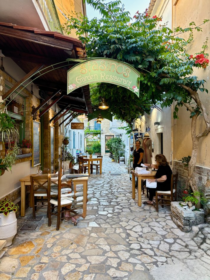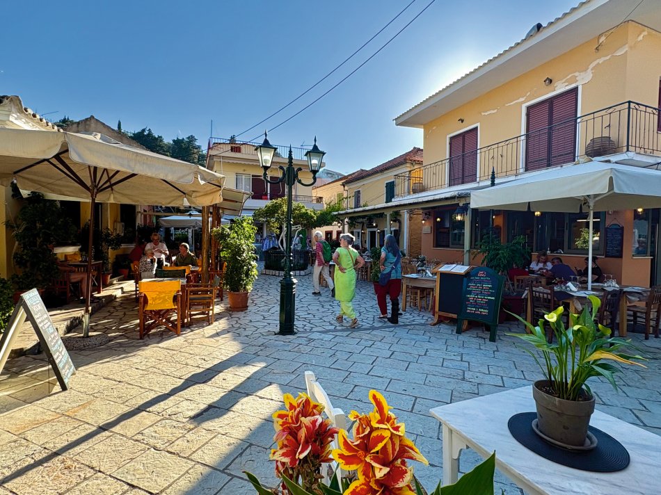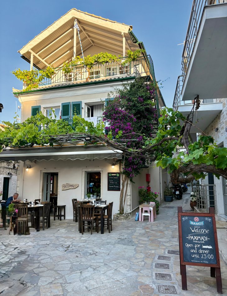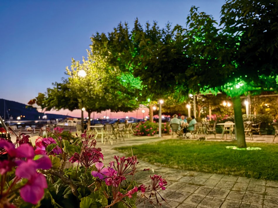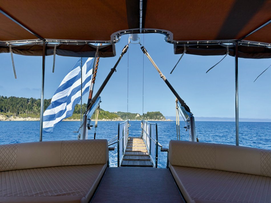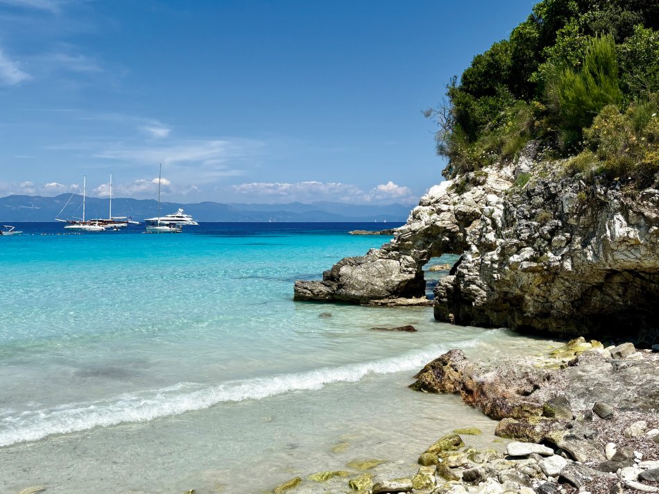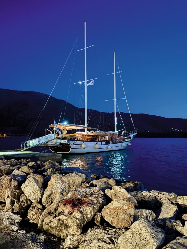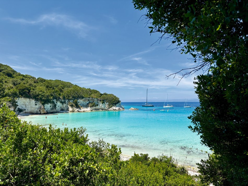 Nach einer ruhigen Nacht im Fischerdörfchen Plataria und einem Frühstück an Bord im Sonnenschein haben wir gegen 09:15 Uhr Kurs auf die Insel Antipaxos genommen. Die kleinste der Ionischen Inseln ist nur 5 km² groß und völlig unberührt. Es gibt ein Netz aus schmalen Wegen, die ins Inselinnere führen, vorbei an einzelnen Häusern, wilden Kräutern und Weinbergen. Wir haben die paradiesische Bucht des Voutomi Beach angesteuert. Paradiesisch trifft es wirklich – der weiße Kieselstrand hebt sich perfekt ab vom helltürkisfarbenen Wasser. Mit dem Dingi haben wir uns zum Strand übersetzen lassen und hatten Zeit zum Schwimmen, Spazieren und natürlich auch zur Einkehr in die einzige geöffnete kleine Taverne. Bei einem Aperol Spritz haben wir das fantastische Flair genossen. Erst um 16:00 Uhr haben wir Kurs auf die Nachbarinsel Paxos genommen und sind um 16:30 Uhr im hübschen Hafen von Gaios angekommen – dem Hauptort der Insel. Die lange Promenade war gespickt mit Segelboten, Katamaranen und kleinen Fischkuttern und lud zu einem Spaziergang ins Ortszentrum ein. Kleine Boutiquen, Souvenirläden und eine Vielzahl an Tavernen und Cafés warteten hier auf unsere Gäste. Der trubelige Stadtplatz mit malerischen Häusern und ein Labyrinth aus kleinen, engen Gassen luden zum Bummeln und Verweilen ein. Unsere Gäste sind unserer Restaurantempfehlung gefolgt und zum Abendessen ins Taka Taka Seafood Restaurant eingekehrt. Unter den Ästen einer mächtigen Olive haben wir hier griechischen Wein und leckere Köstlichkeiten genossen. Noch ein Absacker in einer der kleinen Bars entlang der Uferpromenade, bevor man sich auch auf dem Schiff noch zu einem „flüssigen Betthupferl“ zusammenfand. Ein toller Tag ging in gemütlicher Atmosphäre zu Ende.