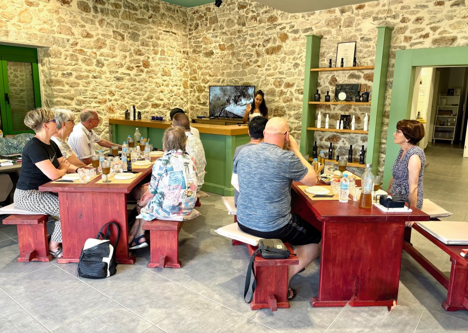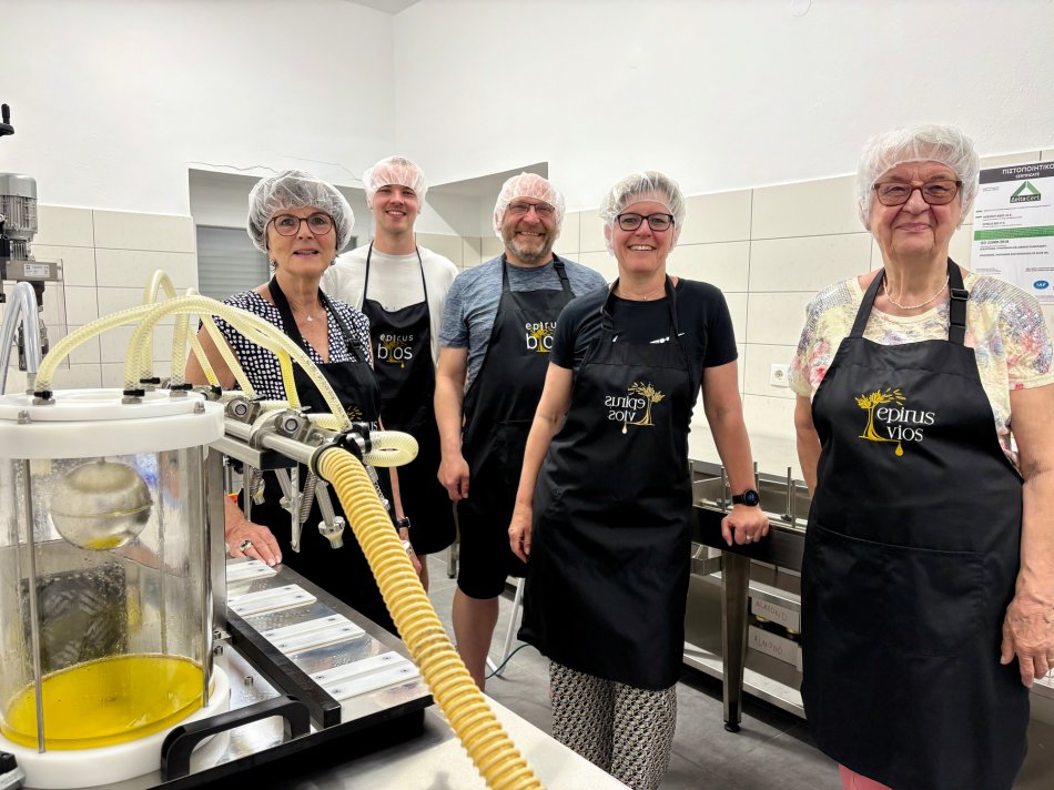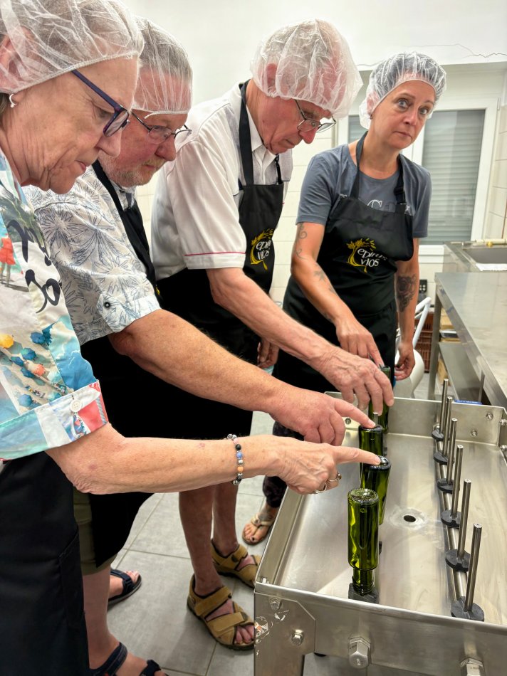 Nach einer erholsamen Nacht starteten wir bei einem hervorragendem Frühstück und strahlendem Sonnenschein gemütlich in den Tag. Um 09:30 Uhr wurden die Leinen gelöst und der Anker gehoben und wir genossen die Ausfahrt aus dem Hafen von Korfu, vorbei an pittoresken Gebäuden und der mächtigen Befestigungsanlage. Schnell hat jeder sein Lieblingsplätzchen an Bord gefunden und wir haben die Fahrt in Richtung Plataria genossen. Gegen 11:45 Uhr erreichten wir unsere Badebucht und hinein ging es ins kühle Nass. Einige drehten ein paar Runden um´s Schiff, andere relaxten in den Wasserhängematten – herrlich. Um 13:30 Uhr erklang die Schiffsglocke zum Mittagessen: Knackige Salate, gegrillte Fleischspieße, Pommes Frites, gegrillte Auberginen, frisches Obst und Baklava. Den ganzen Nachmittag hatten wir Zeit zum Relaxen, Sonnenbaden und Schwimmen, bevor es um 16:30 Uhr weiter ging ins nur wenige Seemeilen entfernte Fischerdörfchen Plataria. Um 18:00 Uhr besuchten wir die Olivenölmanufaktur Epirou Vios und erhielten einen tollen Einblick in die Olivenernte und die Produktion des fruchtigen Öls. Es wurde verkostet, probiert und jeder durfte sich sogar sein eigenes Fläschen als Mitbringsel für zu Hause abfüllen. Anschließend spazierten wir entlang der schön angelegten Promenade und kehrten direkt am Strand in ein tolles Fischlokal ein. Bei einem atemberaubenden Sonnenuntergang ließen wir uns griechische Spezialitäten schmecken. Anschließend klang der Abend bei dem ein oder anderen Ouzo an Bord gemütlich aus.