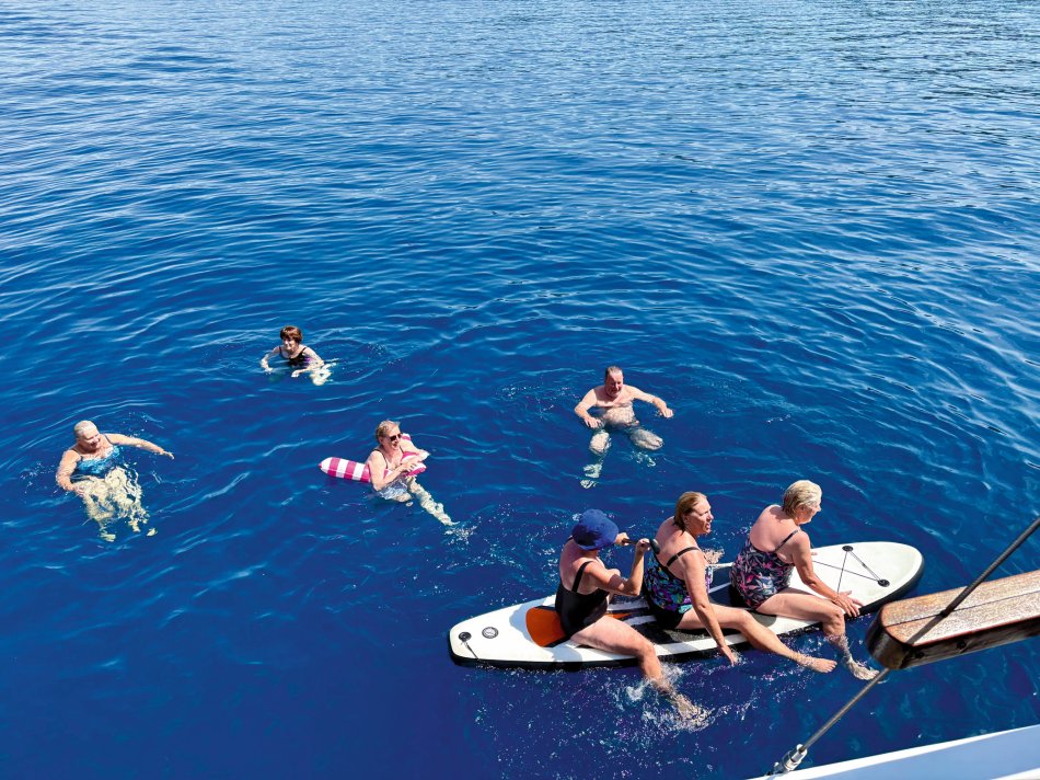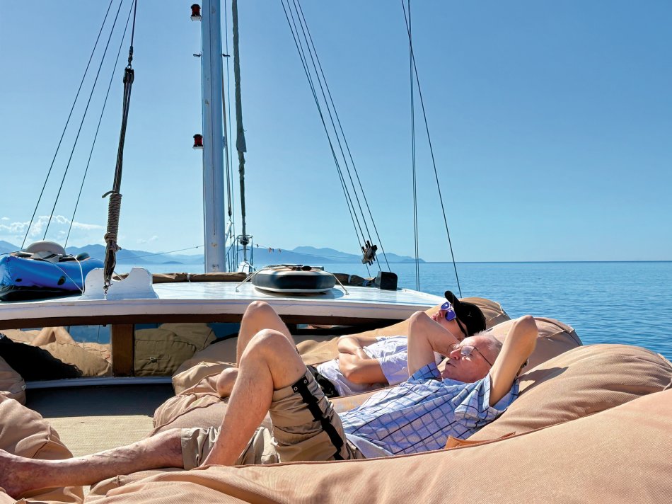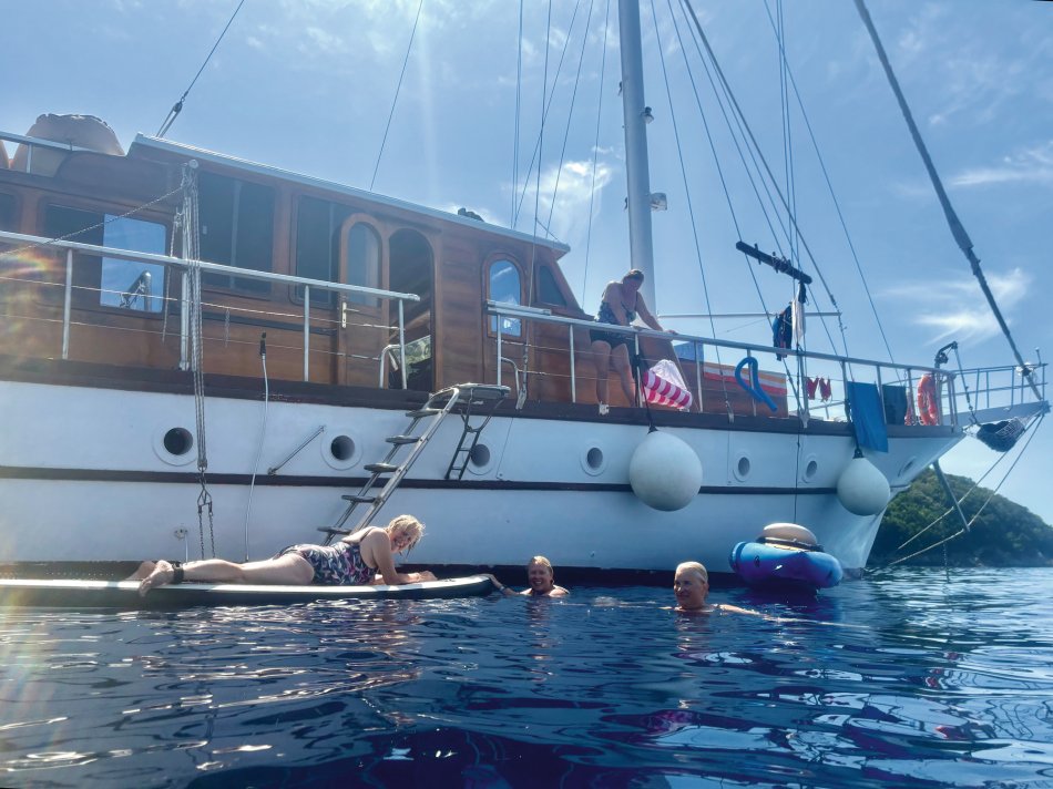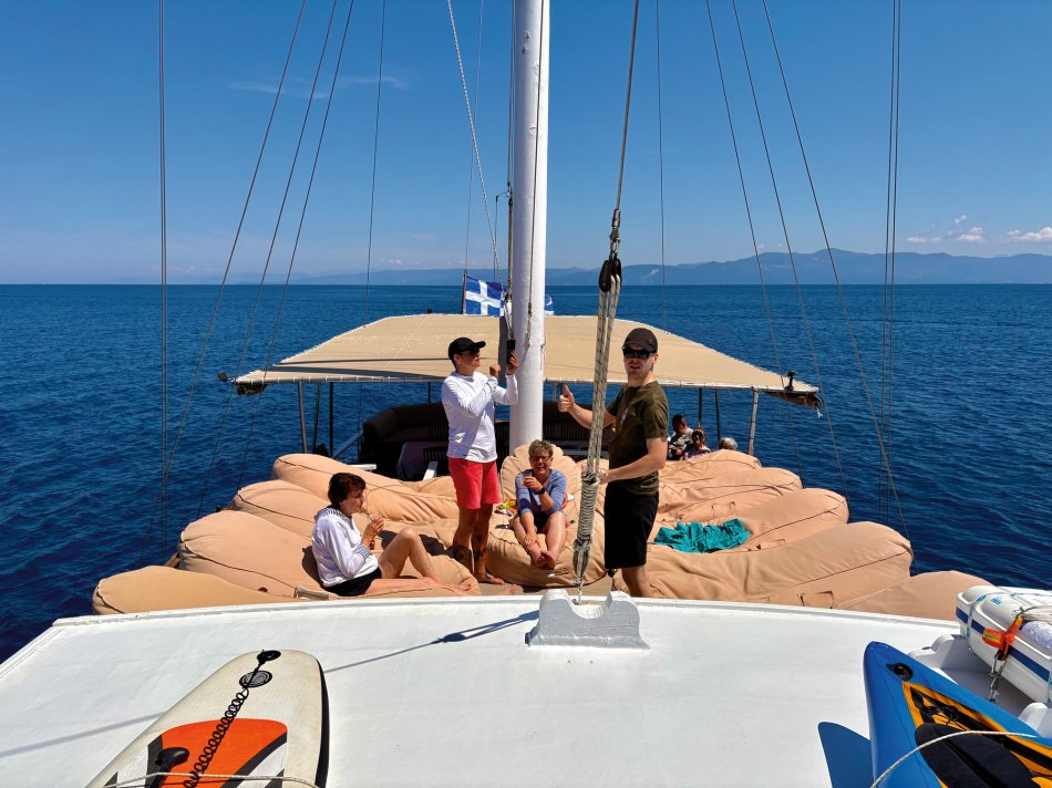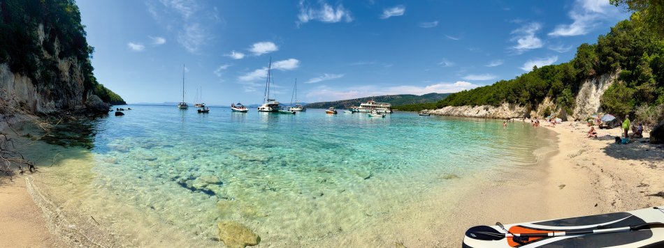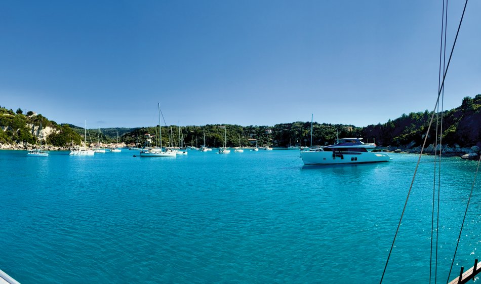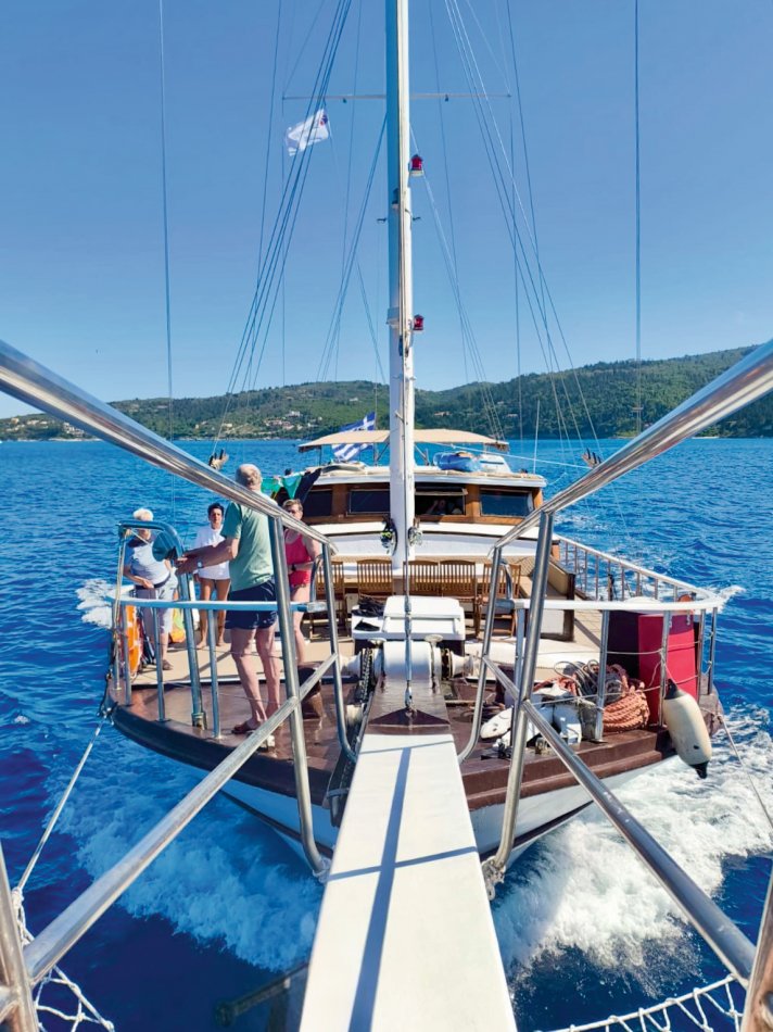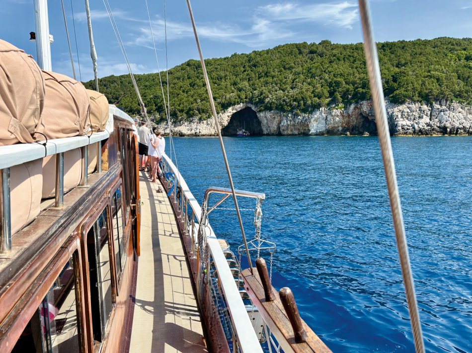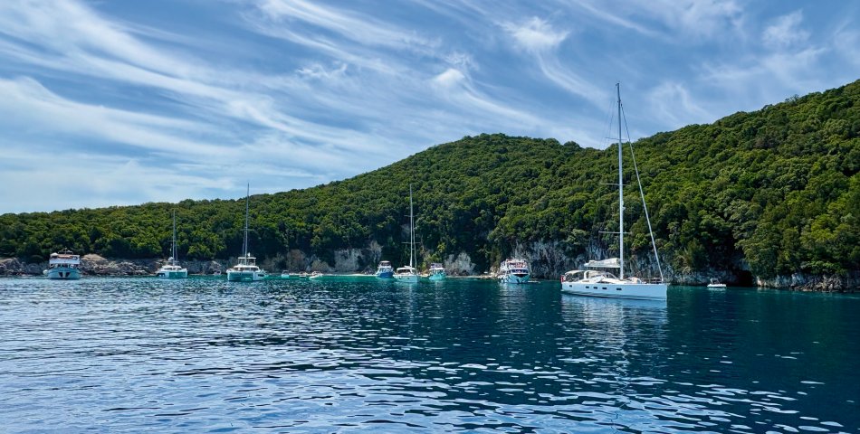 Der gestrige Morgen begann wieder mit einem gemütlichen Frühstück an Deck, bei herrlichem Sonnenschein, spiegelglatter See und bester Laune. Gegen 09:30 Uhr haben wir den geschützten Hafen von Gaios verlassen und sind entlang der Küste Richtung Lakka gefahren. Nach kurzer Zeit kam unsere Badebucht am Kipiadi Beach in Sicht und der Anker wurde ausgelegt. Ein herrlich entspannter Tag lag vor uns. Wir stürzten uns ins kühle Nass und der ein oder andere Gast schnappte sich das Stand-up-Paddle und das Kajak und macht sich auf zum herrlich weißen Kieselstrand. Hier lockten kleine Wege durch üppig grüne Natur zum Spazieren und Erkunden. Auch nach dem Mittagessen an Bord blieb nochmals Zeit zum Entspannen und Schwimmen. Erst gegen 16:15 Uhr haben wir Kurs auf das beschauliche Örtchen Lakka, an der Westküste der Insel Paxos gelegen, genommen. Da der Hafen von Lakka sehr klein ist, lagen wir mit einer Vielzahl an kleinen Segelbooten und Katamaranen geschützt in der vorgelagerten Bucht. Mit dem Dingi ließen wir uns an Land fahren und konnten den Abend in vollen Zügen genießen. Urige Plätze, eine bunte Blumenpracht, kleine Gässchen, hübsche Geschäfte und gemütliche Restaurants luden zum Bummeln und Verweilen ein. Zurück ging es natürlich auch wieder mit dem Dingi und auch gestern erklangen an Bord noch die Gläser auf einen tollen Tag.