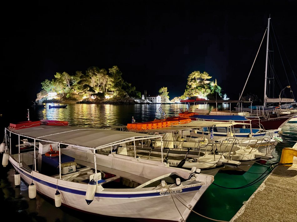 Herrlich begann der gestrige Tag, ankernd in unserer tollen Bucht vor Lakka. Bereits vor dem Frühstück tauchte der ein oder andere hinein ins kühle und glasklare Wasser. Mit Blick auf die vielen Segelboote und Katamarane um uns herum, ließen wir uns bei Sonnenschein und einer kleinen Briese das Frühstück schmecken. Langsam wurde der Anker gelichtet und Kurs genommen auf das griechische Festland. Gegen 11:45 Uhr erreichten wir die hübsche Bucht des Lichnos Beach und hatten ausgiebig Zeit zum Relaxen, Sonnenbaden und Schwimmen. Erst gegen 16:30 Uhr ging es weiter nach Parga. Wir ankerten mit zahlreichen kleinen Bötchen in der benachbarten Bucht, da der Hafen von Parga viel zu klein ist, um dort fest zu machen. Für 18:00 Uhr hatten wir das Taxiboot bestellt, was uns in die traumhafte kleine Stadt brachte. Durch enge Gassen, die gespickt waren mit zahlreichen Geschäften und Souvenirshops sind wir bis hinauf zur venezianischen Festung spaziert, die sich auf einer felsigen Halbinsel befindet. Natürlich haben wir das riesige Areal mit den alten Gemäuern, Höhlen und Bunkern erkundet. Zahlreiche Kanonenrohre zeugten von der ehemaligen Verteidigungskraft. Direkt unterhalb der Festung befindet sich die Bar Kastro 1380, wo wir bei traumhaften Ausblicken auf den uns zu Füßen liegenden Hafen ein erfrischendes Getränk genossen haben. Dem folgte eine kleine Shoppingtour, die beim Restaurant Castello endete. Knusprig gebackener Saganaki und fruchtiger Wein wurden serviert und das rege Treiben ringsherum verfolgt. Anschließend ging es zurück zum Anlegesteg, wo das letzte Taxiboot um 23:30 Uhr wartete, um alle Gäste auf die Schiffe und Bötchen zurück brachte, die in der benachbarten Bucht vor Anker lagen. Umgeben von den unzähligen Positionslichtern der Boote neigte sich ein traumhafter Tag dem Ende entgegen.