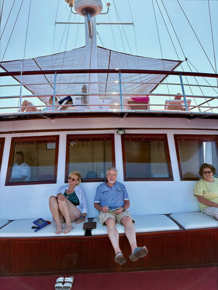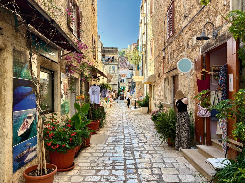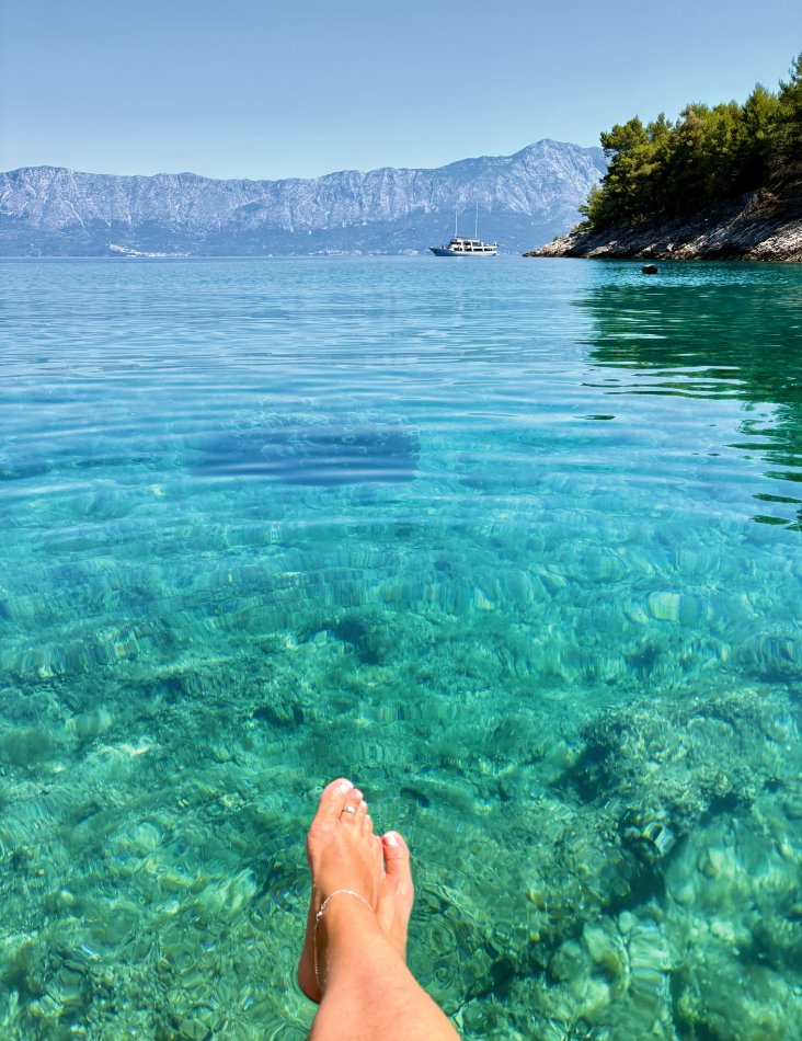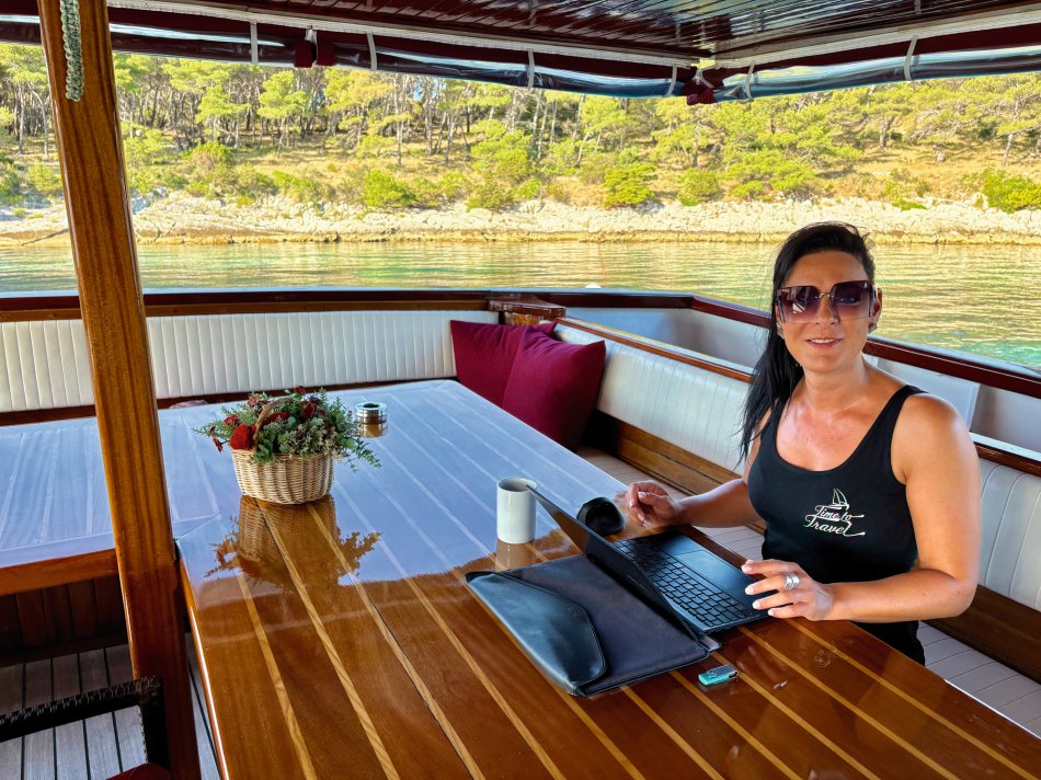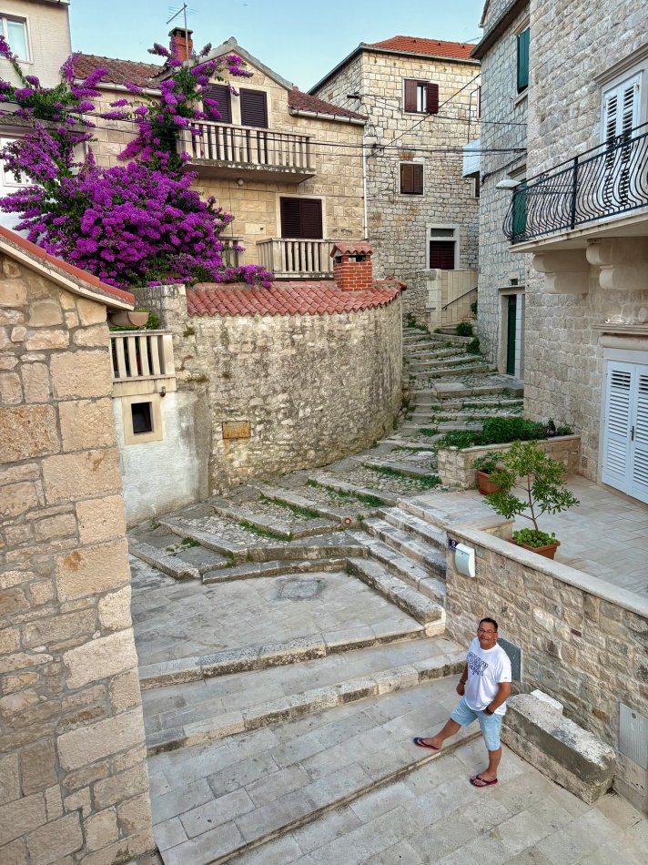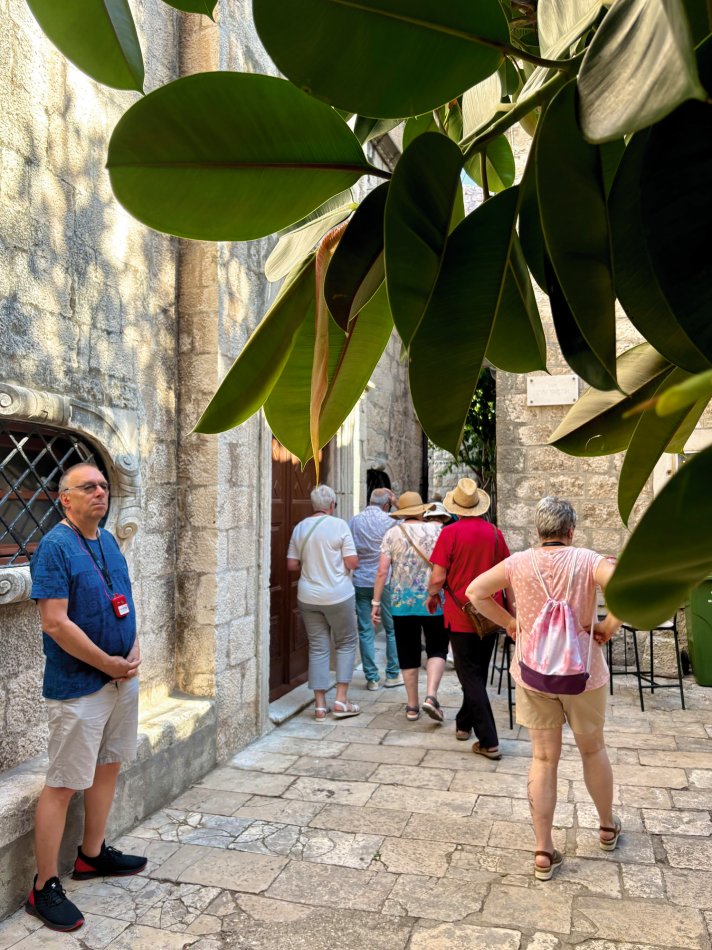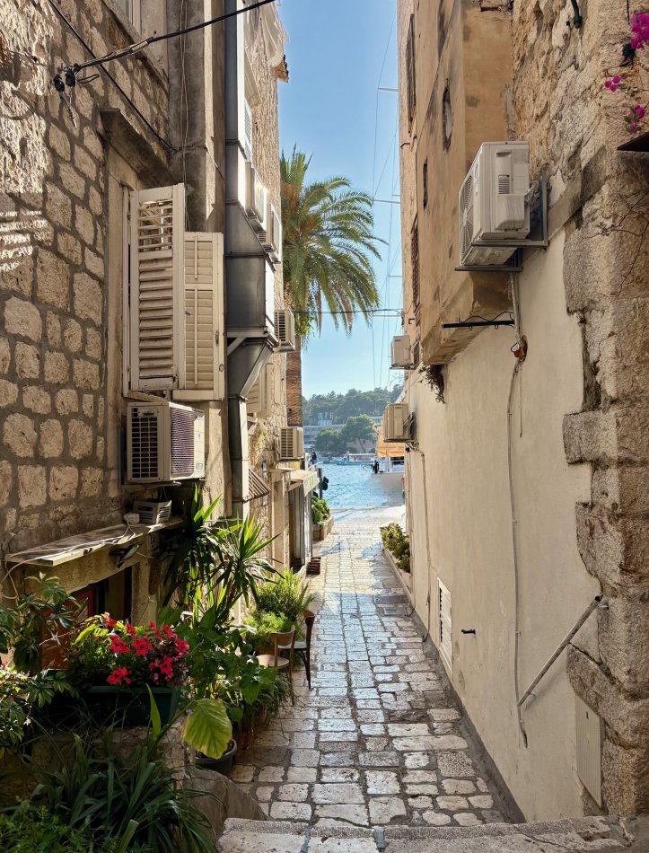 Abflug ab Berlin war 07:25 Uhr. Einige Gäste trafen sich bereits um 02:30 Uhr in Halle am Transferbus zum Flughafen. Mit 20 Gästen haben wir das Flugzeug bestiegen und hatten einen ruhigen und super schnellen Flug (sind 30 Minuten früher gelandet) nach Split, wo wir bereits von Ante erwartet wurden, der uns in 35 Minuten zum Hafen von Split brachten. Die Koffer wurden am Schiff abgegeben und wir zogen noch mal los, um eine erste kleine Erfrischung mit Blick auf das Gewusel im Hafen zu genießen. Gegen 11:30 Uhr bezogen wir dann die Kabinen und richteten uns häuslich ein. Um 13:30 Uhr hatten wir dann alle Gäste an Bord und wurden offiziell von Der Crew begrüßt. Während des Mittagessens nahmen wir Kurs auf die Insel Brac, wo wir in der Nähe von Milna einen ersten kurzen Badestopp genossen haben. Hinein ins erfrischende und glasklare Wasser…. Weiter ging es nach Hvar, wo wir um 17:30 Uhr vor Anker lagen. Um 18:00 Uhr kam unser Taxiboot in Sicht, was uns direkt an die Plamengesäumte Uferpromenade brachte. Dort wurden wir von Reiseleiterin Nikol zum gemütlichen Stadtspaziergang durch das „St. Tropez Kroatiens“ erwartet. Luxuriöse Yachten, bunt gemischtes Publikum aus aller Welt, weitläufige Plätze und enge Gässchen erwarteten uns. Anschließend stand der Rest des Abends zur freien Verfügung. Nach einem individuellen Abendessen in toller Atmosphäre bekamen wir sogar noch ein klassisches Konzert geboten. Geschafft aber glücklich endete für Reiseleitung Nicole der Abend um kurz vor Mitternacht mit der Vorfreude auf den kommenden Tag….