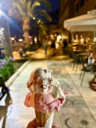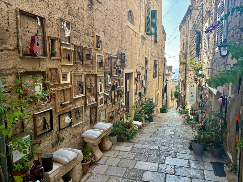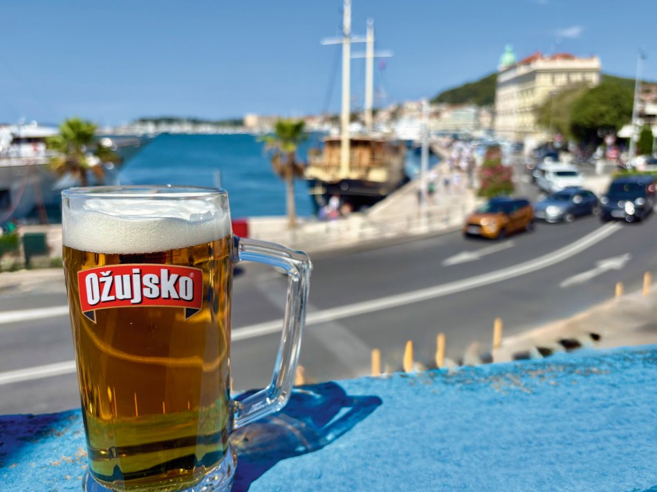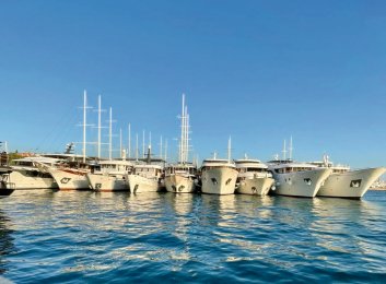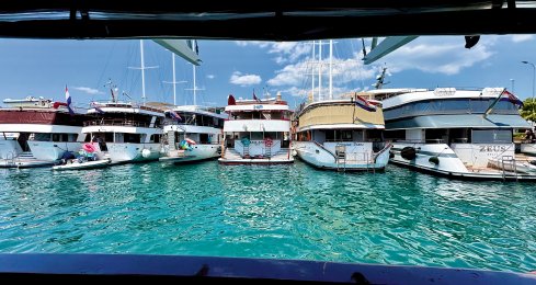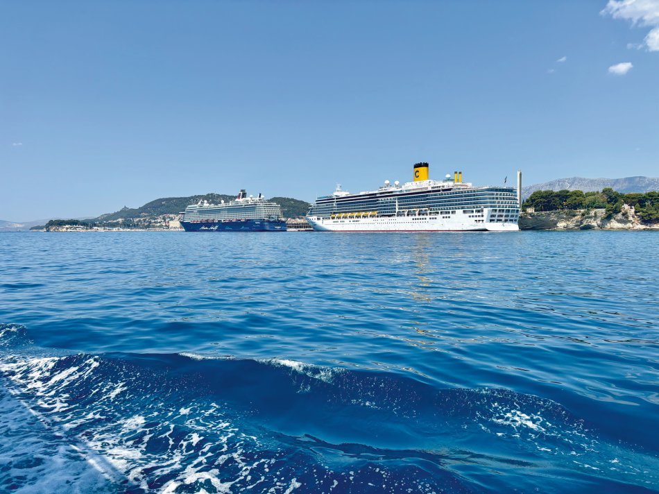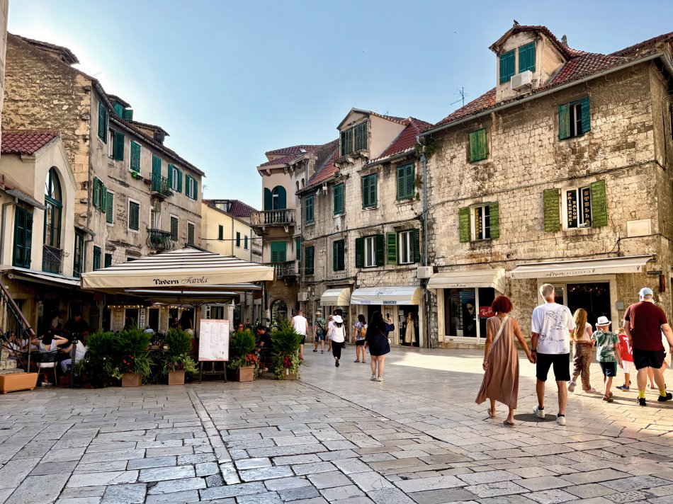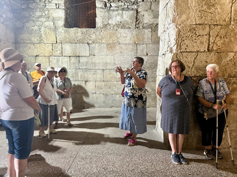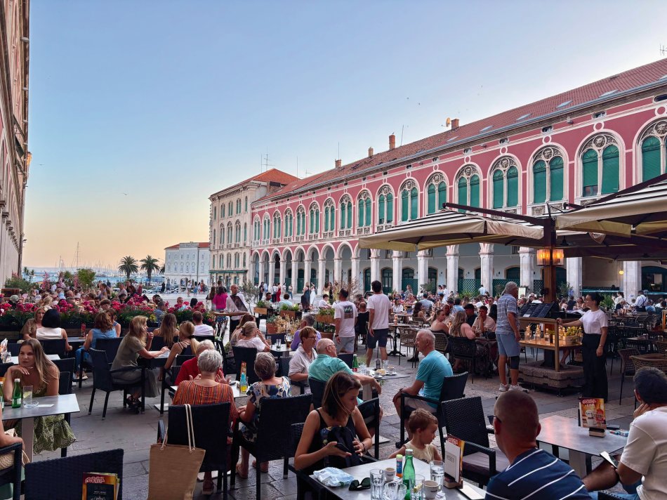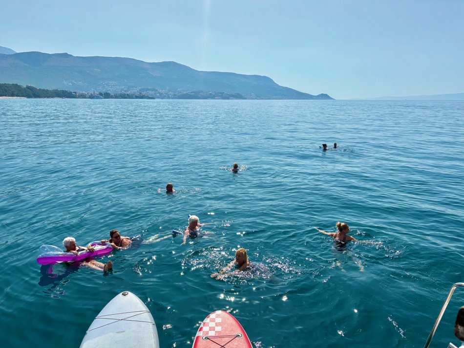 Herrlicher Sonnenschein empfing uns auch gestern früh wieder, als wir von unseren Kabinen in den Salon gingen, um in der Bucht von Pučišća, umgeben von den strahlend weißen Kalksteinhäusern, zu frühstücken. Dann ging es auch schon wieder weiter, abermals vorbei an den mächtigen Steinbrüchen, mit Kurs auf Split. Vor der trubeligen Hafenstadt haben wir ein letztes Mal geankert und unseren letzten Badestopp genossen. Das wird und allen wohl am Meisten fehlen. Gegen 12:00 Uhr ging es weiter, vorbei an zwei Kreuzfahrtriesen, die an der Pier lagen. Einstimmig haben wir beschlossen, dass wir unsere Vapor keinesfalls gegen so einen Passagierdampfer eintauschen wollen. Dann kam der Hafen von Split in Sicht, wo nach und nach die kleinen Minicruiser an der Pier festmachten. Es blieb Zeit zum Relaxen und Koffer packen, bevor wir uns um 17:30 Uhr zum Stadtrundgang trafen. Reiseleiterin Suzi zeigte uns den imposanten Palast des Diokletian und führte uns durch das Gewirr aus engen Gässchen zu den schönsten Sehenswürdigkeiten der Stadt. Der Spaziergang endete an der belebten Uferpromenade Riva, die mit zahlreichen Restaurants, Cafés und Bars aufwartete. Erstmal eine kleine Verschnaufpause bei einem spritzigen Aperol, bevor jeder seiner Wege zog. Einem kleinen Einkaufsbummel folgte die Einkehr in ein tolles Restaurant am Platz der Republik. Entlang der Riva ging es zurück zum Schiff, wo noch einmal die Gläser erklangen auf eine ganz fantastische Reise, die hinter uns liegt. Noch eine letzte Nacht an Bord, dann heißt es schon wieder Abschied nehmen von der tollen Crew, unserem Schiff und dem wundervollen Kroatien…
