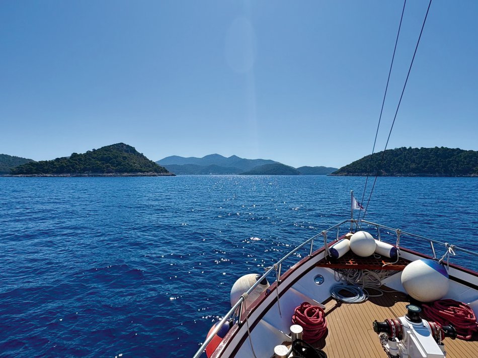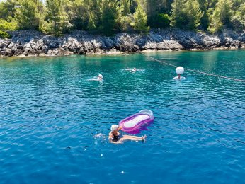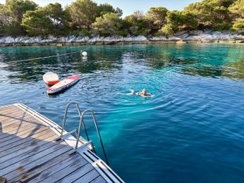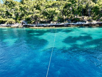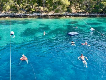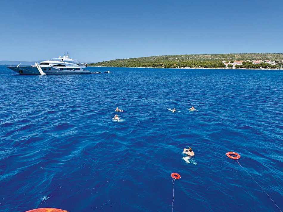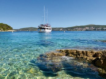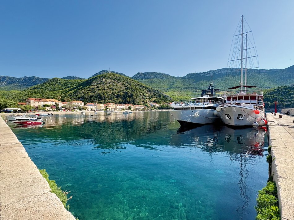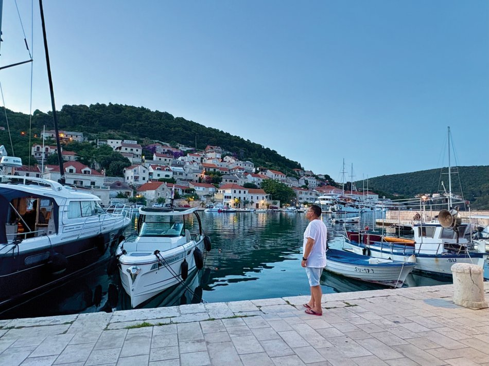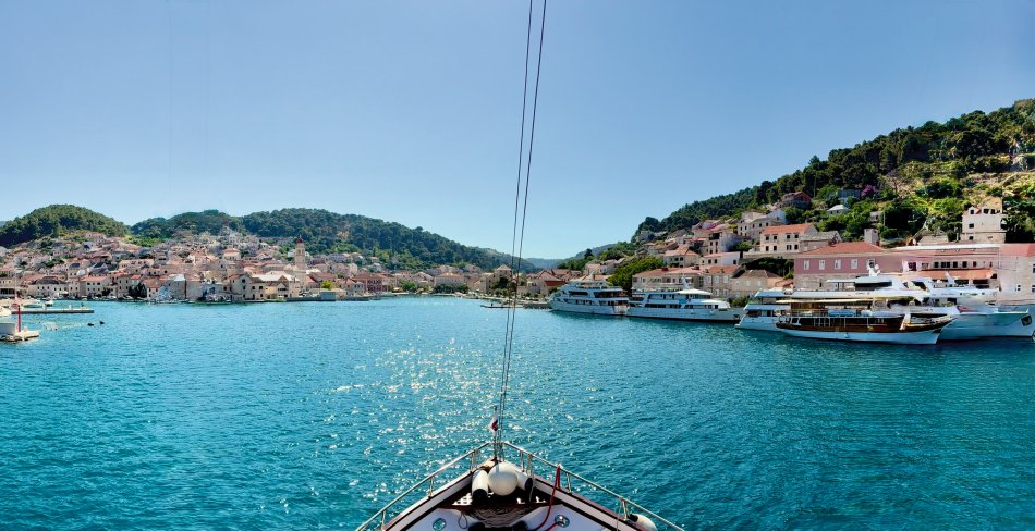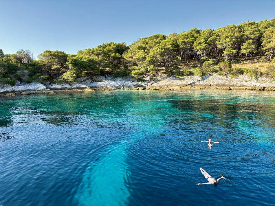Bereits um 06:45 Uhr wurden gestern früh die Motoren gestartet. In Hvar herrscht immer viel Trubel und wir mussten mit unserem Schiff Platz machen, für die Fähren, die um 07:00 Uhr ankommen. Der Stadt Hvar vorgelagert befinden sich die Paklinski Inseln, die traumhaft schöne Buchten ausbilden – ideal für unseren ersten Badestopp! Bereits um 07:00 Uhr ankerten wir in einer herrlichen Bucht, die wir komplett für uns allein hatten. Einige Gäste nutzen bereits die Zeit vor dem Frühstück für einen Sprung in kühle Nass. Nach dem gemeinsamen Frühstück blieb genügend Zeit zum Schnorcheln, Schwimmen und Relaxen. Auch die zwei Stand-up-Paddle kamen zum Einsatz und sorgten für Spaß in der glasklaren und türkis glitzernden Adria. Um 11:15 Uhr verließen wir die Bucht und passierten die Stadt Hvar nochmals auf unserem Weg zur Insel Korčula . Bereits während des Mittagessens erreichten wir die Westseite der Insel, wo wir unseren zweiten Badestopp einlegten. Hier blieb Zeit bis 16:30 Uhr, um in der Sonne zu dösen, ein Buch zu lesen und zu schwimmen. Weiter ging es ins nur wenige Seemeilen entfernte Vela Luka, unseren Übernachtungshafen. Eine herrliche Promenade, die gespickt war mit zahlreichen Restaurants, Cafés und Bars lud zum Verweilen ein. Da gestern Nationalfeiertag war, waren zwar alle Geschäfte geschlossen, aber wir nutzten die Zeit für einen Spaziergang zur Kirche und dem herrlich angelegten Friedhof von Vela Luka. Anlässlich des Feiertages zog sogar noch ein kleiner Umzug durch die Straßen, der auf dem Platz vorm Glockenturm in einem Spektakel aus Musik und Tanz endete. Ein letztes Eis auf die Hand, bevor wir gemütlich zurück zum Schiff spazierten, wo der Abend noch feucht fröhlich bei dem ein oder anderen Getränk ausklang.