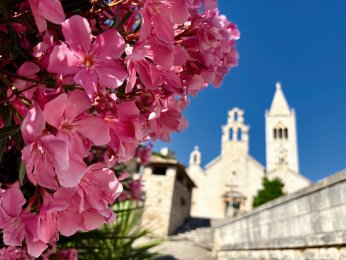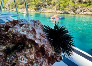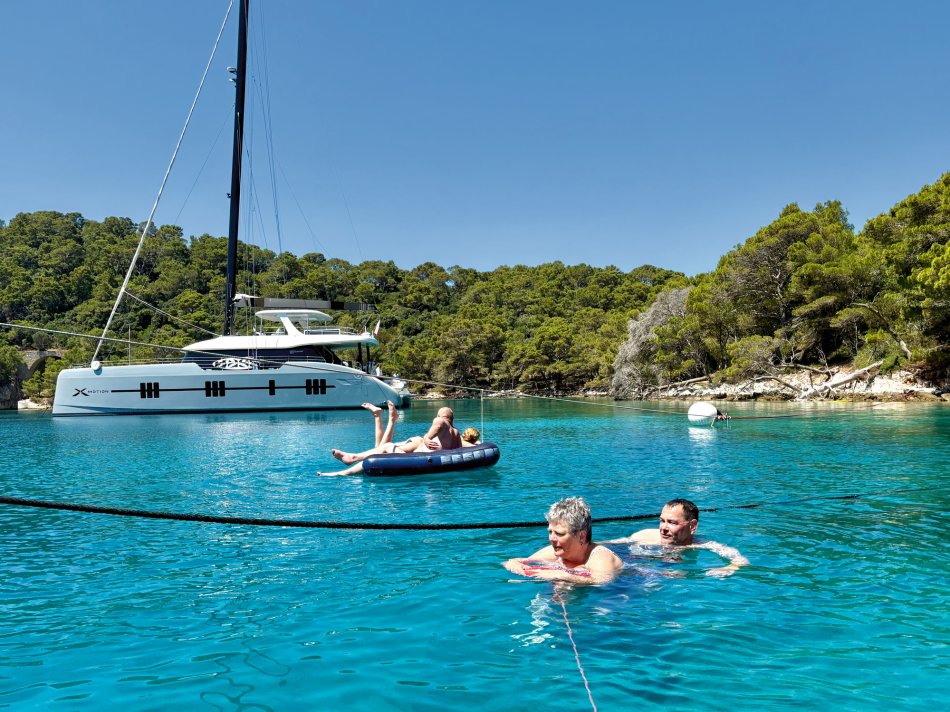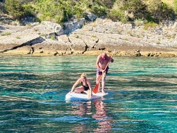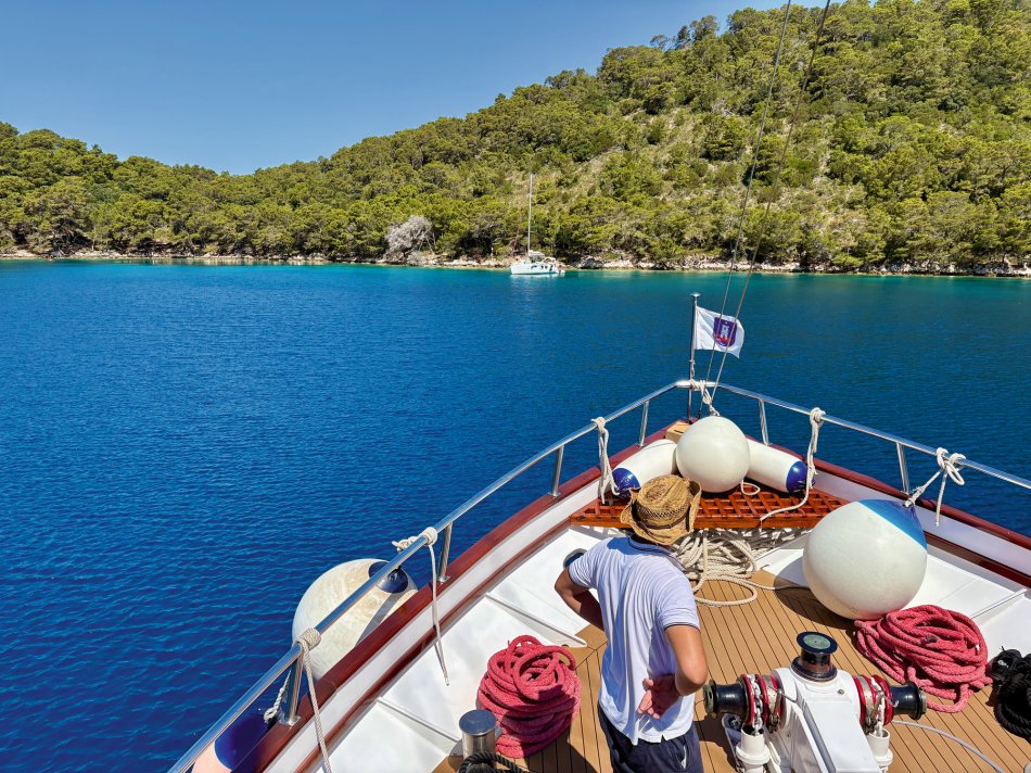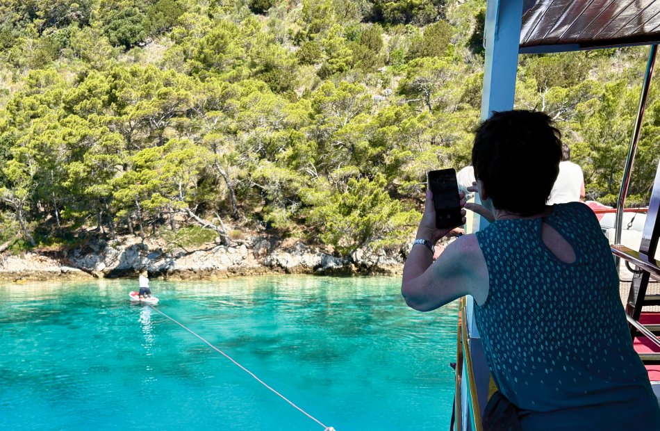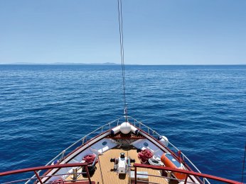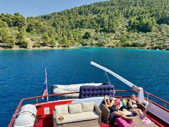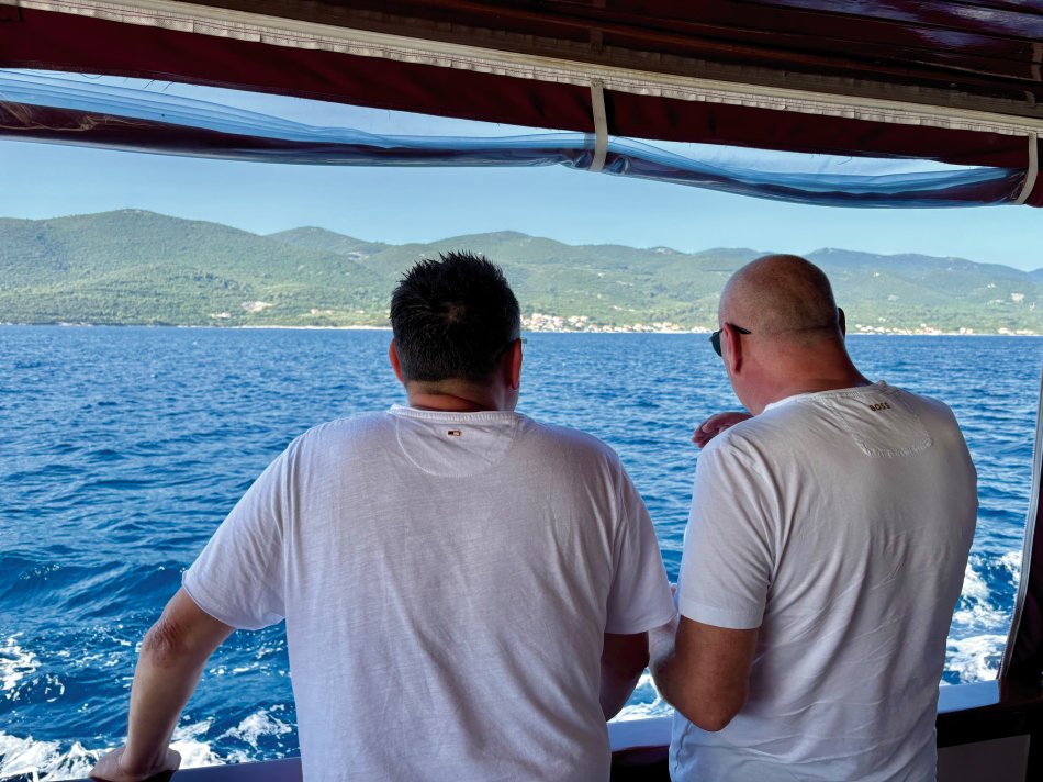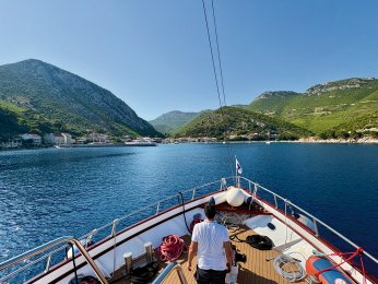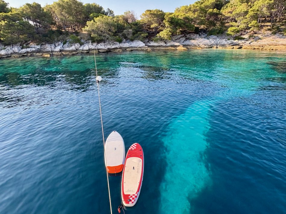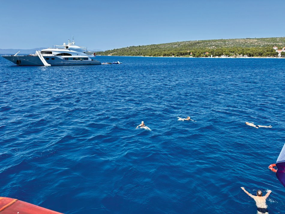 Bereits um 06:45 Uhr wurden gestern früh die Motoren gestartet. In Hvar herrscht immer viel Trubel und wir mussten mit unserem Schiff Platz machen, für die Fähren, die um 07:00 Uhr ankommen. Der Stadt Hvar vorgelagert befinden sich die Paklinski Inseln, die traumhaft schöne Buchten ausbilden – ideal für unseren ersten Badestopp! Bereits um 07:00 Uhr ankerten wir in einer herrlichen Bucht, die wir komplett für uns allein hatten. Einige Gäste nutzen bereits die Zeit vor dem Frühstück für einen Sprung in kühle Nass. Nach dem gemeinsamen Frühstück blieb genügend Zeit zum Schnorcheln, Schwimmen und Relaxen. Auch die zwei Stand-up-Paddle kamen zum Einsatz und sorgten für Spaß in der glasklaren und türkis glitzernden Adria. Um 11:15 Uhr verließen wir die Bucht und passierten die Stadt Hvar nochmals auf unserem Weg zur Insel Korčula . Bereits während des Mittagessens erreichten wir die Westseite der Insel, wo wir unseren zweiten Badestopp einlegten. Hier blieb Zeit bis 16:30 Uhr, um in der Sonne zu dösen, ein Buch zu lesen und zu schwimmen. Weiter ging es ins nur wenige Seemeilen entfernte Vela Luka, unseren Übernachtungshafen. Eine herrliche Promenade, die gespickt war mit zahlreichen Restaurants, Cafés und Bars lud zum Verweilen ein. Da gestern Nationalfeiertag war, waren zwar alle Geschäfte geschlossen, aber wir nutzten die Zeit für einen Spaziergang zur Kirche und dem herrlich angelegten Friedhof von Vela Luka. Anlässlich des Feiertages zog sogar noch ein kleiner Umzug durch die Straßen, der auf dem Platz vorm Glockenturm in einem Spektakel aus Musik und Tanz endete. Ein letztes Eis auf die Hand, bevor wir gemütlich zurück zum Schiff spazierten, wo der Abend noch feucht fröhlich bei dem ein oder anderen Getränk ausklang.