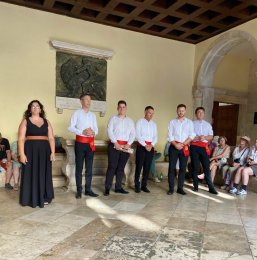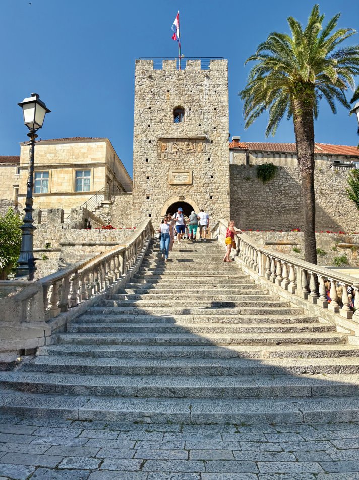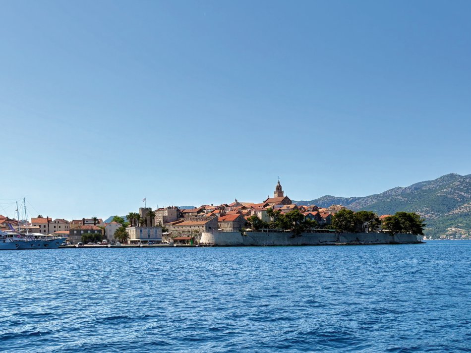 Verschlafen nestelte das kleine Trstenik am Fuße der Pelješac-Hügel, während wir bei strahlendem Sonnenschein unser Frühstück genossen. Um 08:30 Uhr stachen wir wieder in See, dieses Mal mit Kurs auf die Insel Korčula. In der Bucht von Lumbarda haben wir wieder ein wirklich hübsches Plätzchen zum Ankern gefunden. Es blieb auch gestern wieder viel Zeit zum ausgiebigen Sonnenbaden, Schwimmen und Relaxen. Erst um 15:30 Uhr haben wir die Stadt Korčula angesteuert und in der Marina festgemacht. Um 16:30 Uhr empfing uns unsere Edit zum gemütlichen Spaziergang durch die Stadt. Durch schattige Gässchen ging es bis zum Hauptplatz mit der St. Mark´s Kathedrale und dem Geburtshaus von Marco Polo. An der Loggia, wo der Rundgang endete, wurden unsere Gäste bereits von Nicole empfangen, die eine kleine Überraschung bereit hielt – eine traditionelle Klapa gab 8 Musikstücke zum Besten. Glasklare und kräftige Stimmen sorgten in der geschützten Loggia für wahre Gänsehautmomente. Unsere Gäste waren begeistert – Überraschung gelungen! Anschließend stand der Rest des Abends zur freien Verfügung. Kleine Geschäfte luden zum Bummeln ein und die rund um die Stadt führende Promenade bot zahlreiche gute Restaurants mit Blick auf die Adria. Herrlich klang der Tag in Korčula aus!