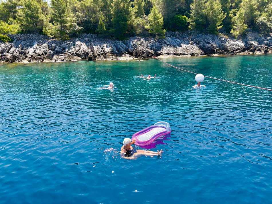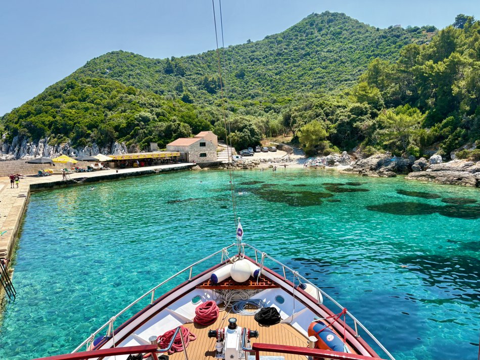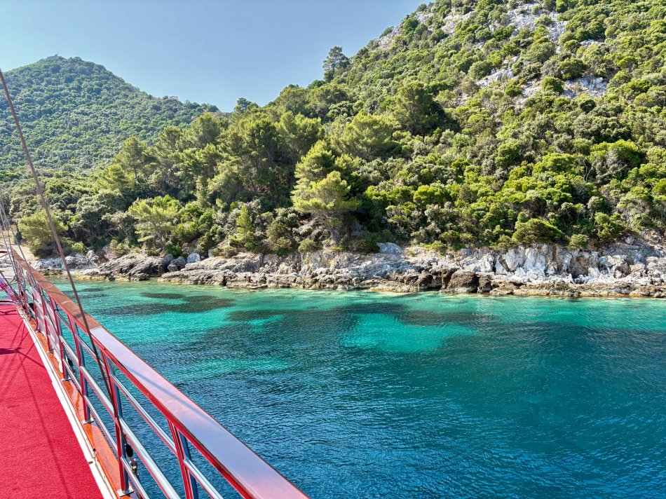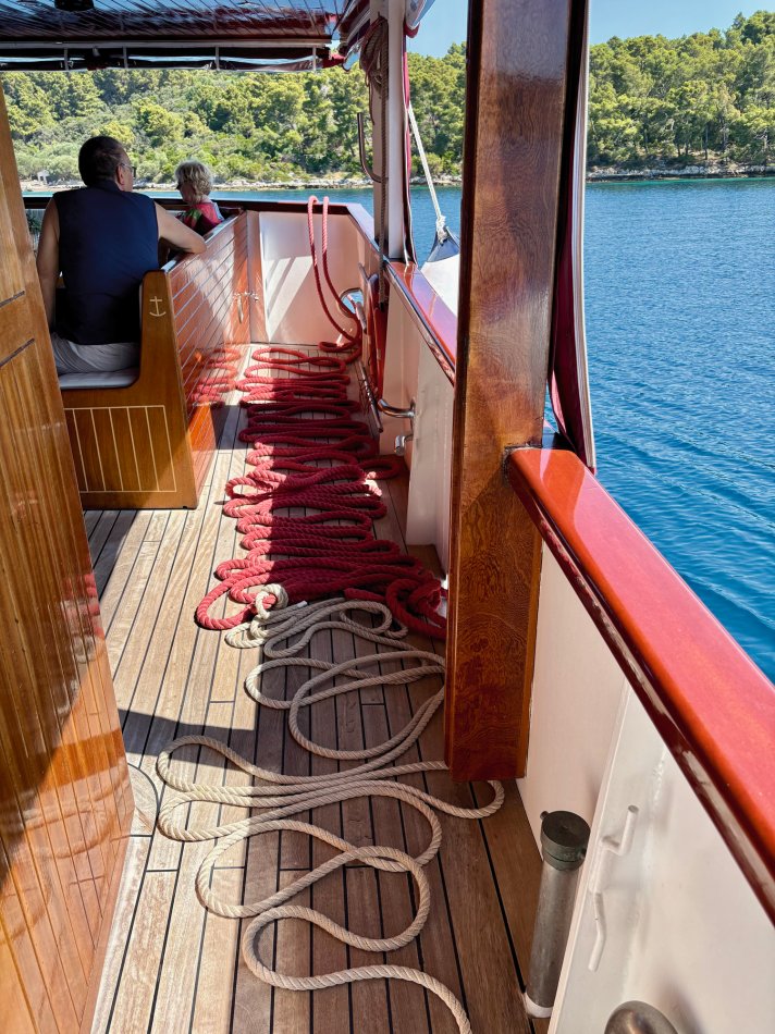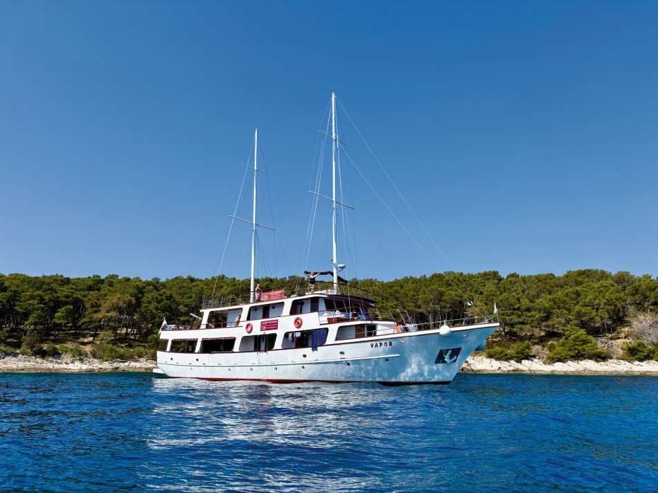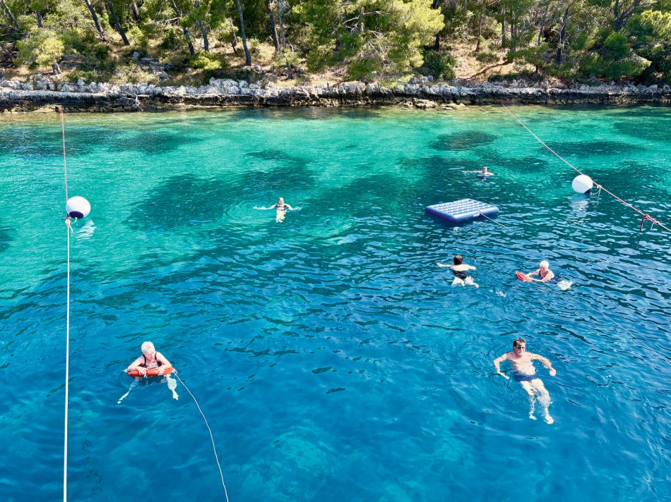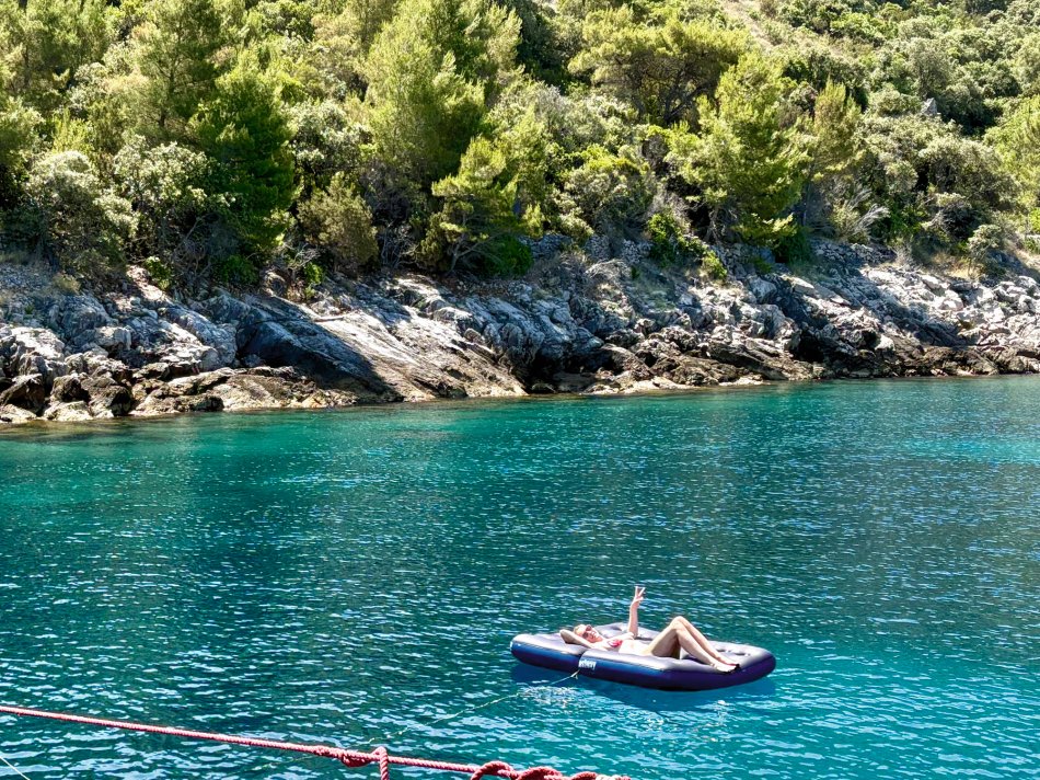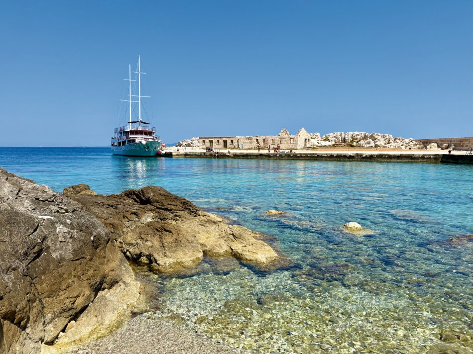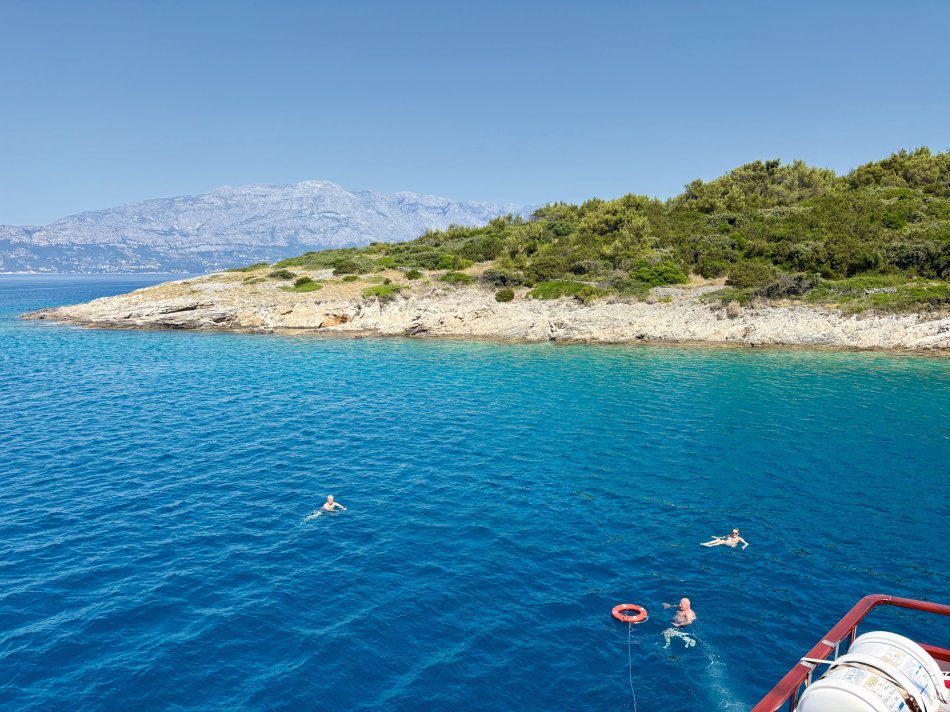 Bei spiegelglatter See haben wir den Hafen von Vela Luka gestern um 08:00 Uhr verlassen und während des Frühstücks die Fahrt durch die fjordähnliche Bucht genossen. Unser Ziel: die Insel Lastovo, die bereits gegen 10:00 vor unserem Bug auftauchte. Hinein ging es in den Naturpark mit seinen 46 Inseln und Riffen, die wahre Traumbuchten ausbilden. So war unsere Bucht für den Badestopp schnell gefunden. Wir alle waren schockverliebt – glasklares Wasser, das am Ufer in ganz hellem türkis schimmerte, üppig grüne Pinienhaine, ein U-Boot Tunnel, den man erkunden konnte – einfach traumhaft. Die Leinen wurden festgemacht und hinein ging es ins kühle Nass. Da uns die Adria wie ein Spiegel umgab, nutzten wir die Chance und servierten fruchtige Cocktails und kühles Bier direkt im Wasser, was großen Anklang bei unseren Gästen fand. Nach dem Mittagessen fuhren wir weiter nach Ubli. Hier erwartete uns Marin und 2 seiner Kollegen, um die Insel Lastovo zu zeigen. In kleinen Bussen ging es zunächst ins Dorf Lastovo, was sich im Inselinneren befindet. Wir spazierten durch die engen Gässchen, vorbei an urigen Häusern, dem Rektorenpalast zur Kirche und bestaunten unterwegs die prächtigen Schornsteine, die eines der Markenzeichen von Lastovo sind. Die Bewohner haben im 18. und 19. Jahrhundert eine kleine Challenge daraus gemacht, wer denn den schönsten Schornstein hat. Tolle Ausblicke auf die Stadt und die Adria waren auch immer gegeben. Weiter ging zur Insel Pasadur, die durch eine kleine Brücke mit der Insel Lastovo verbunden ist. Hier kehrten wir ein in Marin´s Caffe Bar Kokolo, wo wir bei Wein und Livemusik eine Pause einlegten. Anschließend spazierten wir zu unserem Schiff, was inzwischen in Jurjeva Luka festgemacht hatte. Es blieb noch eine gute Stunde Zeit, um nochmals in die Adria zu springen, bevor wir um 19:30 Uhr zum Captain´s Dinner erwartet wurden. Bei hervorragende, Essen und guter Stimmung saßen wir bis in die späte Nacht hinein und verbrachten einen tollen Abend.