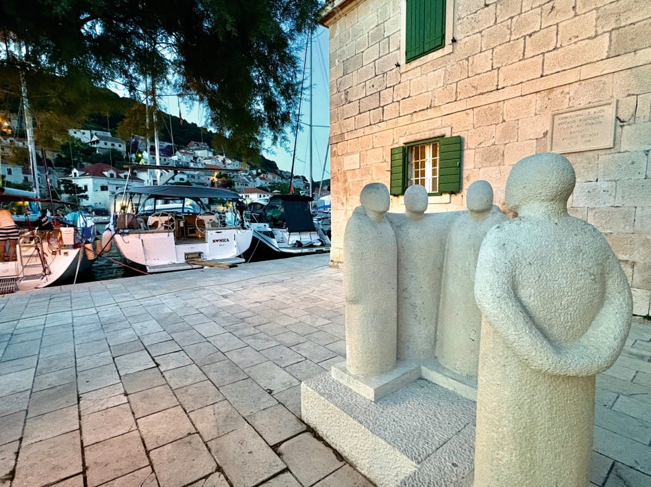 Nach einem schönen Abend in Korcula und einer ruhigen Nacht in der Marina haben wir gestern um 08:00 Uhr die Insel verlassen und abermals Kurs auf die Insel Hvar genommen. Bei spiegelglatter See ließen wir uns das Frühstück schmecken und genossen die Überfahrt zur Insel. Schnell war wieder eine herrliche Badebucht gefunden, in der wir auch gestern wieder komplett allein lagen. Schwimmen im türkisblauen Wasser, Relaxen auf der Luftmatratze, eine Runde um´s Schiff mit den Schwimmnudeln, Schnorcheln entlang des felsigen Ufers, eine Runde mit dem Stand-up-Paddle – langweilig wird´s bei unseren Badepausen definitiv nie. Zum Mittagessen wurden die Leinen eingeholt und der Anker gehoben und weiter ging es zur Insel Brač. Die Adria lag wie flüssige Seide spiegelglatt vor uns – ein wahrer Kreuzfahrttraum. Um 14:45 Uhr legten wir spontan noch einen zweiten Badestopp ein, bevor wir gegen 16:30 Uhr die mächtigen Steinbrüche von Brač passierten. Hier wird seit ewigen Zeiten der berühmte weiße Kalkstein abgebaut, der unter anderem zum Bau des Diokletianpalastes in Split, des Weißen Hauses in Washington und zum Teil sogar beim Bau des Berliner Reichstages verwendet wurde. Kurz darauf sind wir in die Bucht von Pučišća eingefahren und haben in der Stadt des Marmors festgemacht. Seit 1909 gibt es hier die Steinmetzschule, wo Menschen aus aller Welt die Kunst erlernen den weißen Marmor mit Hammer und Meißel zu bearbeiten. Entlang der Promenade warteten zahlreiche Verkaufsstände mit verschiedenen Souvenirs aus Stein auf kauflustige Gäste. Außerdem lockten verschiedene kleine Restaurants und Bars zur Einkehr. Von unserer Crew wurden wir zum Abschiedsabendessen an Bord eingeladen und haben gleich die Möglichkeit genutzt, uns für die Gastfreundschaft und den hervorragenden Service während der vergangenen Tage zu bedanken. Der Abend klang dann wie immer ganz gemütlich uns entspannt an Bord aus.