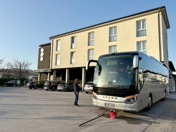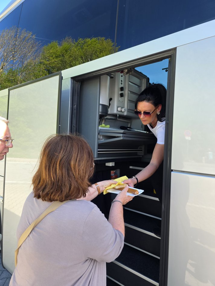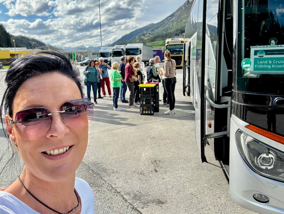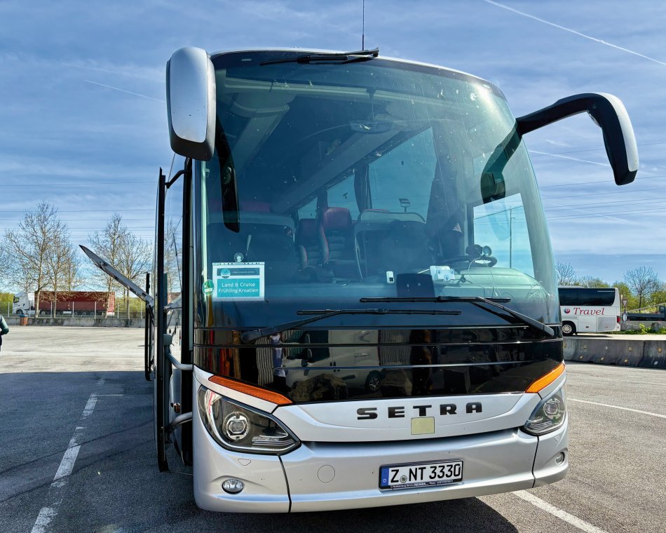 Gestern sind wir endlich wieder gestartet – unsere erste Gruppenreise für die Saison 2025!! Und das Ziel? Natürlich Kroatien 😉! Doch zunächst ging es entspannt zur Zwischenübernachtung nach Slowenien. Pünktlich um 5:00 Uhr haben wir die ersten Gäste im Bus begrüßt und weiter ging es über Merseburg und Zorbau bis nach Zeitz, wo unsere Reisegruppe dann komplett war. Das Wetter meinte es hervorragend mit uns. Bei strahlendem Sonnenschein und blauem Himmel fuhren wir gen Süden. Vorbei an Passau, Graz und Maribor war unser Ziel Slovenska Bistrica in Slowenien. Mittagspause als 3-Gang Menü im Bus (Würstchen, Senf & Brot) mit anschließendem Dessert und Verdauungsschnaps – die Stimmung war ausgelassen und voller Vorfreude auf den Urlaub. Bei frisch gebackenem Kuchen, ein paar witzigen Anekdoten und einem Kroatien-Quizz verging die Zeit unterhaltsam wie im Flug. Um 18:00 Uhr wurden wir herzlich von Vilma im Hotel Leonardo begrüßt und zu einem hervorragendem 4-Gang-Manü erwartet. Bei einem Gläschen Wein klang der erste Abend gemütlich aus.