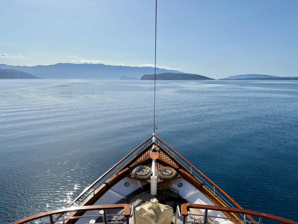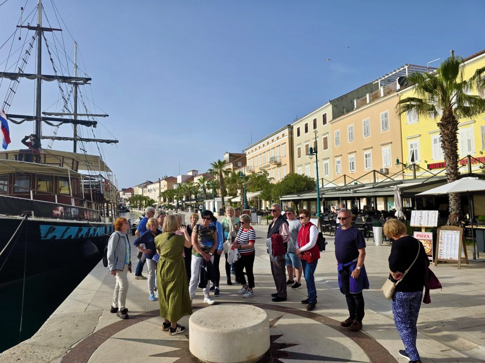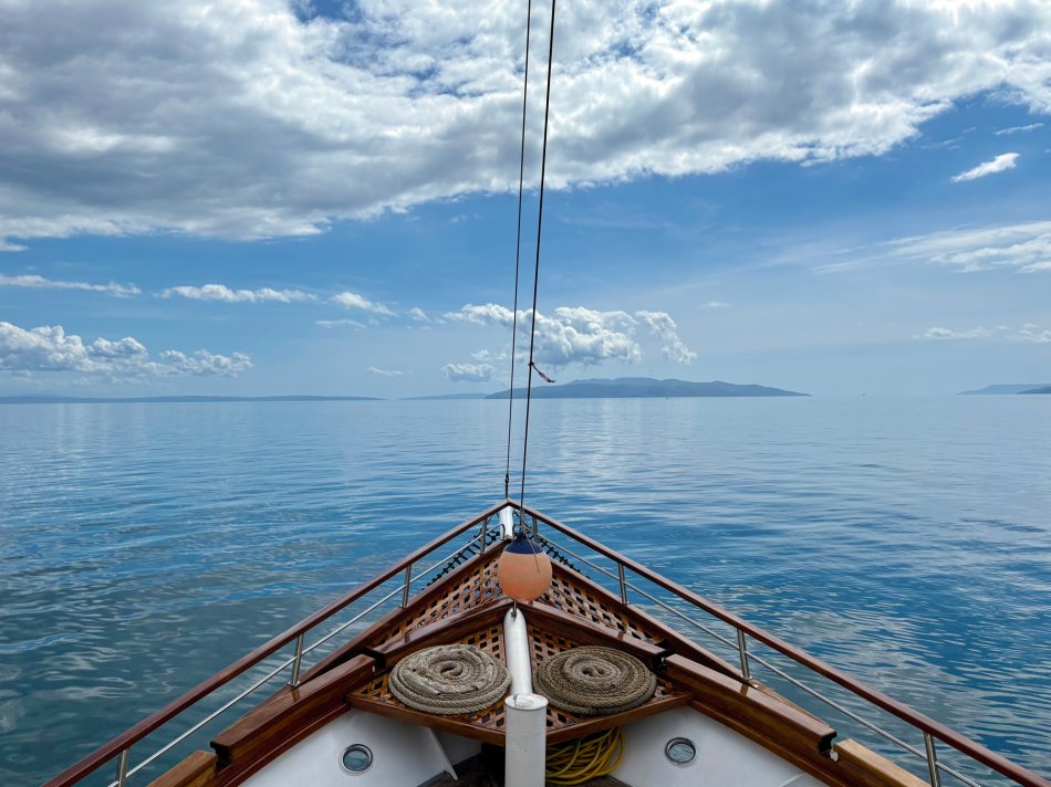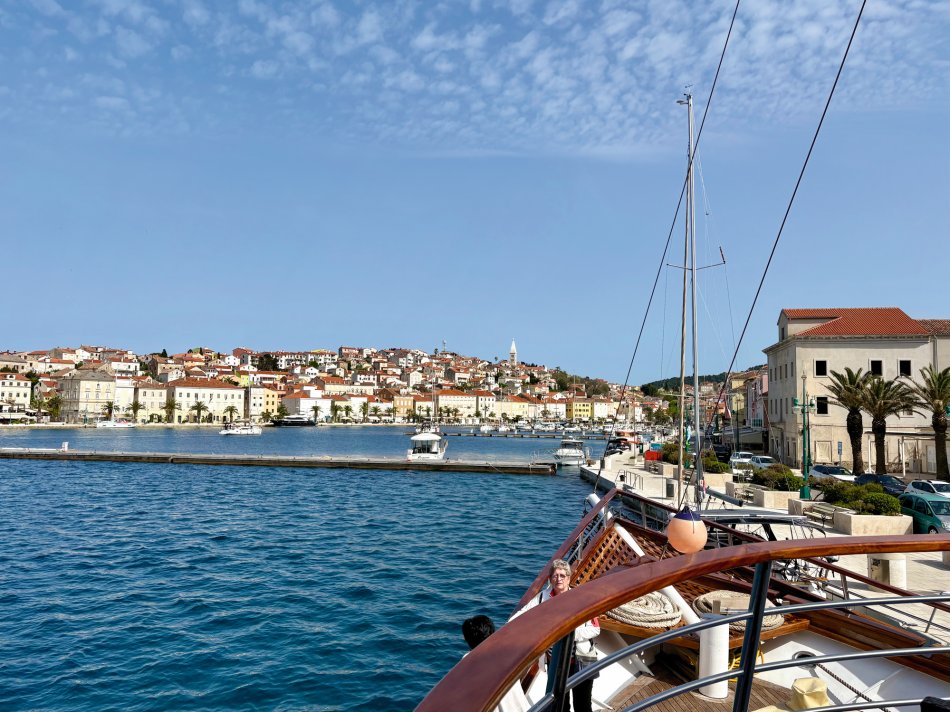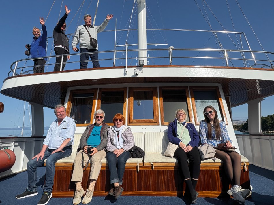 Nach einem gemütlichen Abend und einer ruhigen Nacht haben wir die hübsche Altstadt von Rab gegen 08:00 Uhr verlassen. Herrlicher Sonnenschein begleitete uns zum Frühstück und während unserer Fahrt zur Insel Ilovik. Alle genossen die wärmenden Sonnenstrahlen auf der Haut und hatten schnell ihren Lieblingsplatz an Deck gefunden. Gegen 11:00 Uhr haben wir den Ilovik-Kanal erreicht und im gleichnamigen Örtchen fest gemacht. Mit nur 6 km² Größe und rund 100 Einwohnern ist die autofreie Insel ein verstecktes Juwel für Naturbegeisterte. Nicht selten wird das Eiland auch als „Insel der Blumen“ bezeichnet, wovon wir uns eindrucksvoll bei einem Spaziergang überzeugen konnten – eine herrliche Blütenpracht, wohin aus Auge schaute…Nach der individuellen Erkundung trafen sich alle Gäste auf ein Erfrischungsgetränk in der Konoba Oliva. Bei Bier, Aperol Spritz und Kaffee genossen wir die Sonne und den Blick auf die Adria. Nach dem Mittagessen ging es weiter. Während jeder ein bisschen ausruhte und die vorbeiziehende Landschaft genoss, haben wir Kurs auf die Insel Losinj genommen. Wir passierten die Halbinsel Cikat und machten gegen 16:00 Uhr im geschützten Hafen der Augustusbucht fest. Anschließend erwartete Reiseleiterin Sandra unsere Gruppe zum kleinen Stadtspaziergang durch Mali Losinj. Beeindruckend ist die Kirche, die über dem Städtchen thront und die herrliche Promenade, die gespickt ist mit zahlreichen Restaurants und Cafés. Nach dem Rundgang stand der Rest des Tages zur freien Verfügung. Mit Blick auf die vielen kleinen Boote, die im Hafenbecken lagen, ließ sich jeder sein Abendessen schmecken, bevor wir uns alle noch mal an Bord auf einen Absacker eingefunden haben.