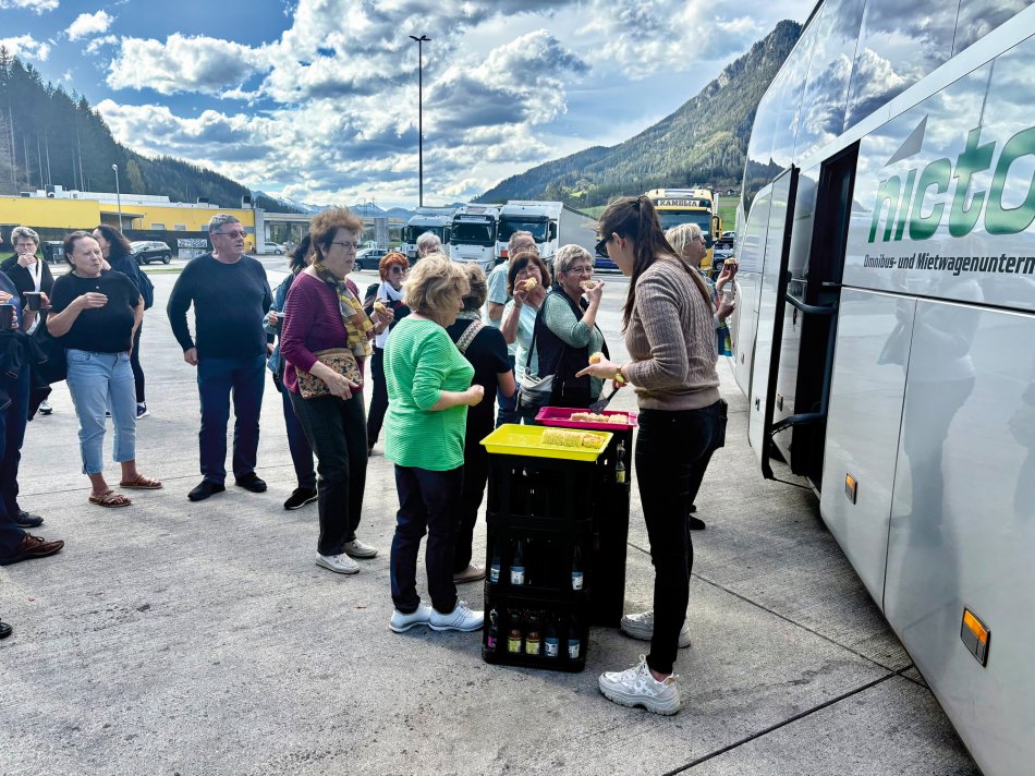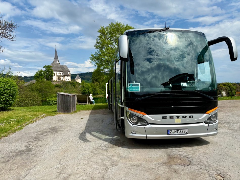 Nach einem letzten Frühstück an Bord hieß es gegen 08:30 Uhr Abschied nehmen von unserer MS Antonela und der Crew. Das Gepäck wurde verladen und zum Busbahnhof transportiert, wo unser Bus auf unser wartete. Wir spazierten noch einmal durch den Park Angiolina und am Hotel Kvarner vorbei, entlang des Lungomares und genossen die Aussicht auf das spiegelglatte Meer. Zurück am Bus trafen wir nun auch wieder auf den Rest unserer lieben Reisegruppe, die die letzten Tage mit Busfahrer Marco im Hotel Paris verbracht und Ausflüge nach Rovinj und ins Istrische Hinterland unternommen haben. Nach einem großen hallo haben wir Opatija verlassen, kurz darauf die kroatisch-slowenische Grenze passiert und sind über den Wurzenpass gefahren. Eindrucksvoll war die Fahrt über die Karawanken mit der engen, kurvenreichen Passstraße, bis zu 18% Steigung und einer Passhöhe von 1.071 m. Weiter ging es vorbei an Villach und Klagenfurt bis zum Südufer des Wörthersees. Das kleine Örtchen Maria Wörth mit dem berühmten Hochzeitskirchlein war unser Ziel für die Mittagspause. Bei 5-Minuten Terrine und kroatischen Würstchen haben wir die Ausblick genossen und anschließend den beiden Kirchen einen Besuch abgestattet. Da niemand auf den Pyramidenkogel hinauf wollte, ging es um 14:15 Uhr weiter nach Altenmarkt. Zwei Stunden später wurden wir herzlich von Wirt Franz begrüßt! Zeit für einen Ortsspaziergang mit Ladenbummel oder eine Erfrischung auf der Hotelterrasse, bevor wir um 18:30 Uhr kulinarisch verwöhnt wurden. Bei einem Zirbenlikör und einem Bierchen klang der Abend gemütlich in der Gaststube aus.