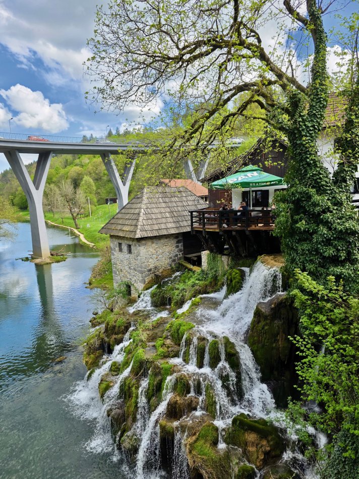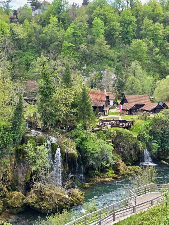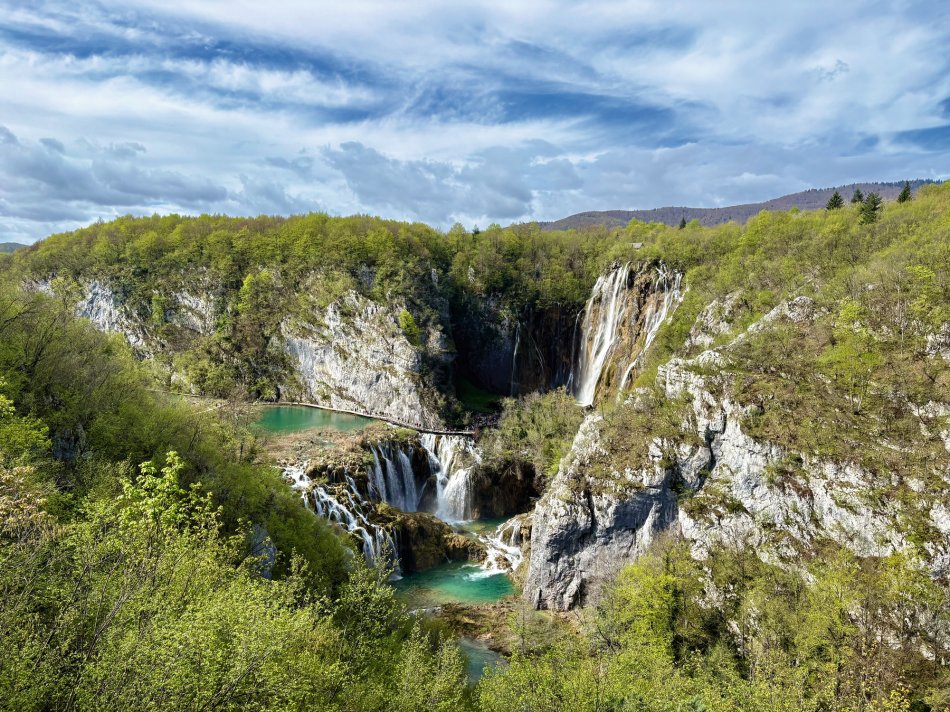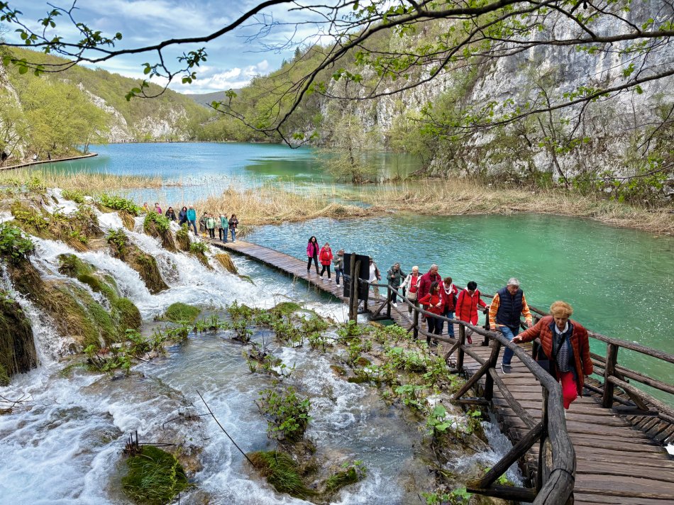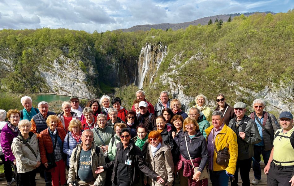 Das Frühstück im Hotel Mirjana & Rastoke ist wirklich eine Wucht. Gute gestärkt haben wir uns um 09:00 Uhr auf den Weg zum Nationalpark Plitvicer Seen gemacht. Um 10:00 Uhr waren wir am Haupteingang und haben gleich vom ersten Aussichtspunkt den grandiosen Blick auf das glasklare Wasser der Unteren Seen und auf den großen Wasserfall genossen. 78 Meter stürzt das Wasser hier in die Tiefe. Damit ist der „Veliki Slap“ nicht nur der höchste Wasserfall des Nationalparks, sondern auch von ganz Kroatien. Auf gut ausgebauten Wegen sind wir hinunter zu den Seen spaziert und auf Holzpfaden weiter durch die traumhaft schöne Wasserlandschaft gelaufen. Vorbei an der Höhle Supljara – der Schatzhöhle von Winnetou – erwarteten uns hinter jeder Biegung kleine Stromschnellen, Kaskaden und herrlich erblühende Natur. Am Ufer des großen Sees haben wir eine Mittagspause eingelegt. Bei erfrischenden Getränken und kleinen Snacks haben wir den Sonnenschein und die Aussicht genossen, bevor es mit dem Elektroboot weiter ging über den Großen See. Nach erfolgreicher Überfahrt wechselten wir vom Boot ins Panoramafahrzeug – eine überdimensionale TschuTschu Bahn, die uns wieder Richtung Eingang brachte. Die letzten paar hundert Meter legten wir dann noch mal zu Fuß zurück und haben abermals die Aussicht auf die tief unter uns liegenden Seen und Wasserfälle genossen. Gegen 15:00 Uhr waren wir zurück am Bus. Auf dem Rückweg zum Hotel haben wir noch einen Stopp im traumhaften Dörfchen Rastoke eingelegt. Alte Mühlen, die heute zu Restaurants und Pensionen umgebaut sind, Stromschnellen, Kaskaden, glasklares Wasser und zahlreiche kleinere und größere Wasserfälle zeichnen das Örtchen, was liebevoll auch „Klein Plitvice“ genannt wird, aus. Natürlich blieb auch Zeit für einen Kaffee oder eine Kugel Eis, bevor wir um 18:00 Uhr zurück ins nur 5 km entfernte Hotel fuhren. Beim Abendessen haben wir den fantastischen Tag noch mal Revue passieren lassen.